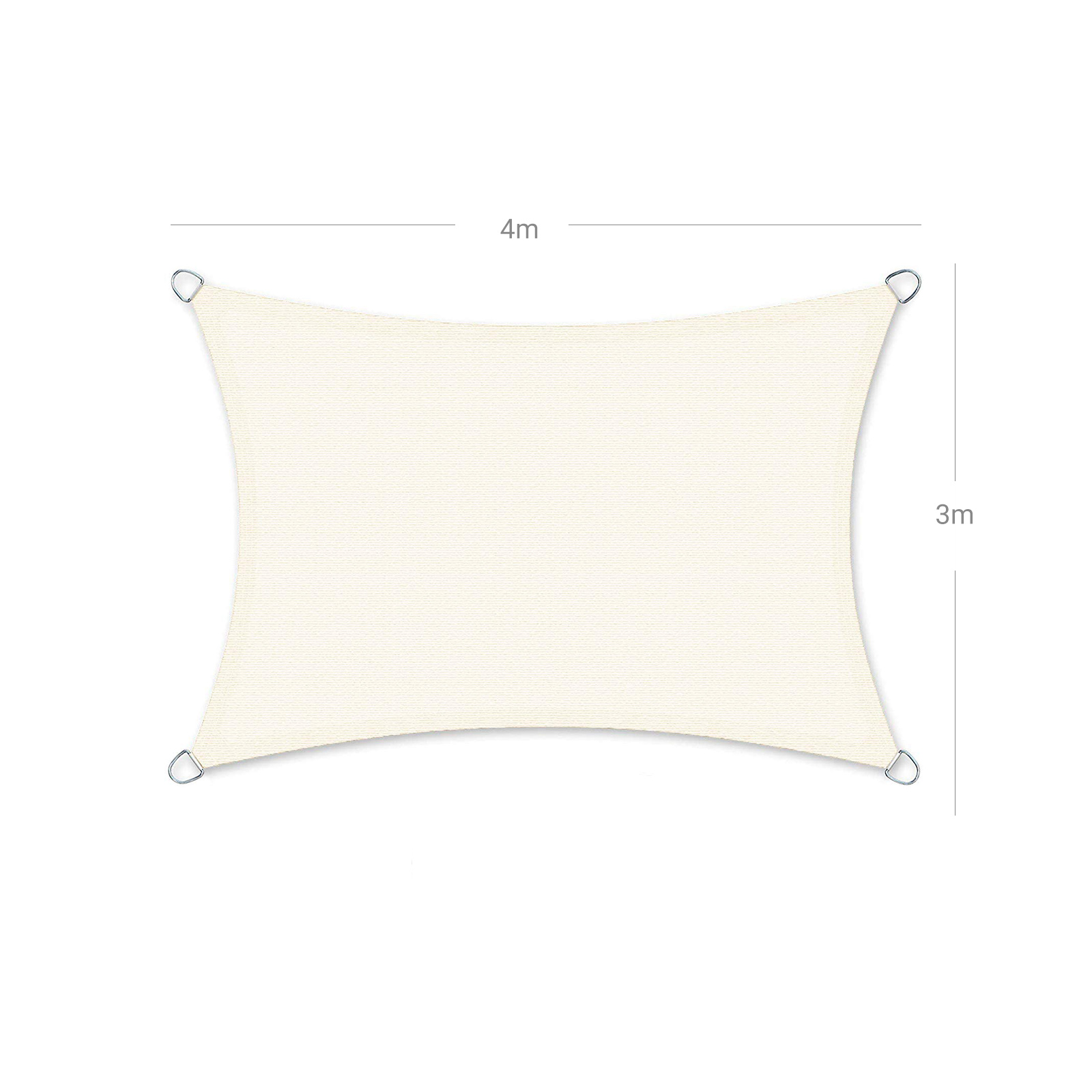 Den perfekte solbeskyttelse og skygge til haven, terrassen, altanen og verandaen Brug den i haven til bryllupper, fester, grillaftener eller p? camping Brug t?ppets egenskaber til din pool, gr?spl?ne, have, terrasse, carport Du kan ogs? bruge vores solbeskyttelse i indk?bscentre, b?rnehaver, forsamlingshuse, byggepladser, forlystelsesparker, sportspladser eller legepladser. Solsejlens skyggefaktor er 80-85 % og er en holdbar og robust skygge. Det giver UV-beskyttelse og er luftgennemtr?ngeligt, s? der ikke kan ophobes varme under stoffet. Der sker en naturlig regulering af temperaturen p? grund af det luftgennemtr?ngelige og vandgennemtr?ngelige materiale. S? selv n?r det regner, dannes der ikke vandpytter. Den konkave form p? vores solsejl g?r det meget stabilt og rivfast, da sp?ndingen fordeles j?vnt og der ikke kan opst? stofudh?ng. Kanterne er forst?rket med et specielt h?jtydende b?nd, hvilket g?r det endnu mere stabilt i kanterne. Produktdetaljer: Materiale: HDPE (h?jdensitetspolyethylen) Materialev?gt: 180 g/m? M?l: 3 x 4 m Bruttov?gt: 2,4 kg Leveringsomfang: 1 x solsejl 4 x fastg?relsesreb For at du kan have gl?de af din solafsk?rmning i lang tid, skal du v?re opm?rksom p? f?lgende: – Optimal fastg?relse opn?s med en h?ldning p? 20?, s? der er en let skr?nende overflade.- Fjern solafsk?rmningen ved kraftig vind, storm, uvejr, tordenvejr og om vinteren. – Reng?r dukken med et mildt reng?ringsmiddel eller med vand. Dukken m? ikke vaskes i vaskemaskinen og m? ikke b?rstes med en h?rd b?rste. – S?rg for at montere oversiden og undersiden korrekt, n?r du ops?tter dukken.