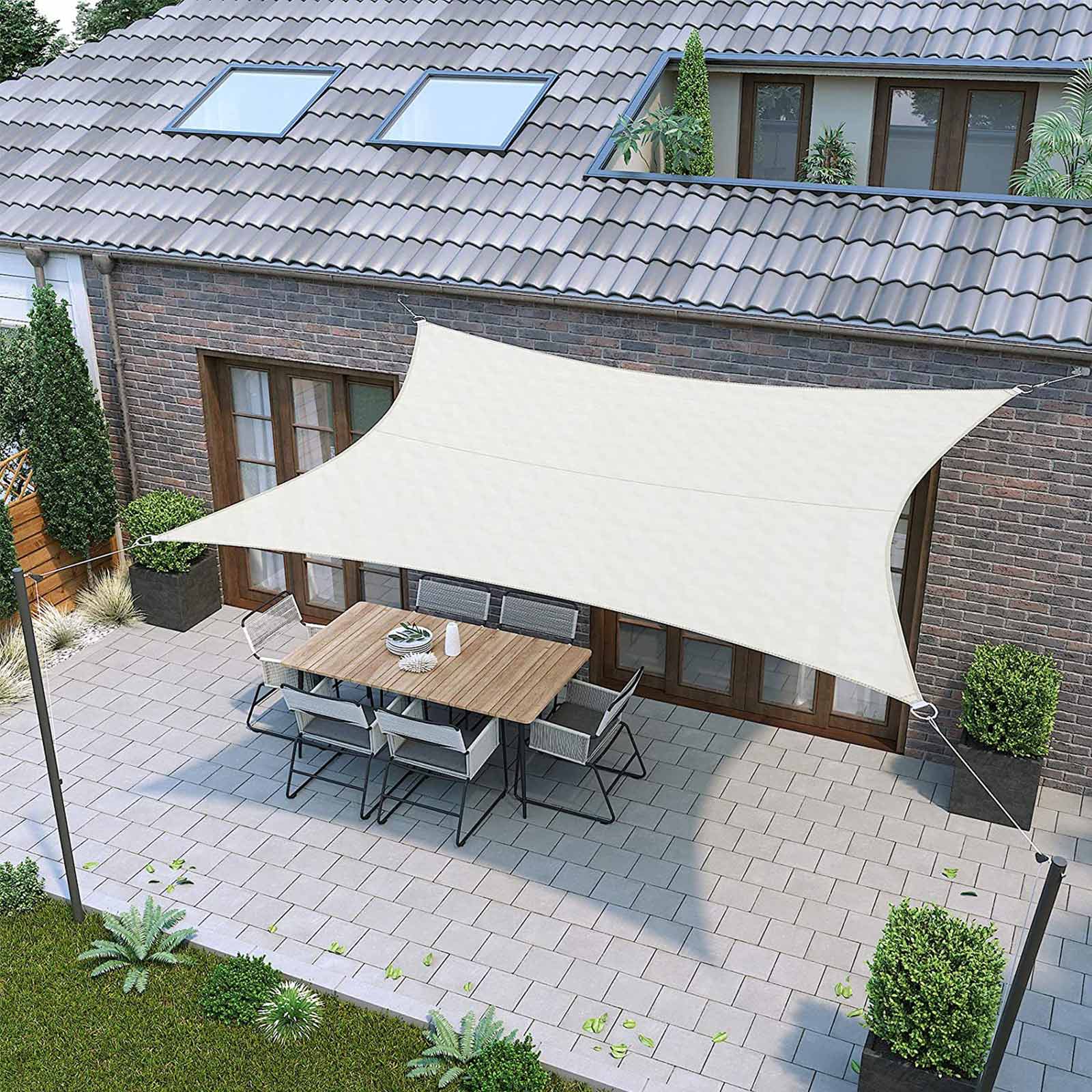 Ideel beskyttelse mod solen i haven Solsejl har den fordel, at de i mods?tning til markiser kan ops?ttes mere fleksibelt og hurtigt tages ned og s?ttes op igen. Sammenlignet med en parasol er det areal, som et solsejl d?kker, mange gange st?rre, og det uden forstyrrende stativer. Med vores solsejl har du perfekt beskyttelse mod solens str?ler i haven. Uanset om det er p? terrassen, altanen, over poolen, som carport eller for at beskytte legende b?rn ? vores solsejl kan fastg?res fleksibelt. Farve?gte I henhold til standard ISO 105-B02 fra T?V Rheinland er det farve?gte, farvestabilt og falmer ikke.Enkel fastg?relse Vores solsejl fastg?res til stolper, st?nger eller tr?er med de medf?lgende fastg?relsesreb. Rebene er lavet af PE. S?rg for, at rebene sidder sikkert og fast. Der medf?lger 4 reb pr. sejl og 3 reb pr. trekantet sejl. Mere sikkerhed takket v?re h?j kvalitet Vores udvalgte materiale er en h?jkvalitets, rivfast polyester. Sejlet er forst?rket langs hele kanten med en speciel h?jtydende b?nd, der er syet ind for at give ekstra stabilitet. Hj?rnerne er ogs? forst?rket flere gange. Produktdetaljer: Materiale: PES (polyesterstof) Materialev?gt: 160 g/m? M?l: 3 x 4 m Leveringsomfang: 1 x solsejl 4 x fastg?relsesreb Bem?rk for lang levetid Monter solsejlet med en h?ldning p? 20 grader, s? der ikke kan dannes vandlommer, n?r det regner.Fjern solsejlet ved d?rligt vejr og uvejr som storm, torden, hagl, kraftig vind og i vinterm?nederne. Solsejlet m? ikke vaskes med vand. S?rg for at montere over- og undersiden korrekt under ops?tningen.