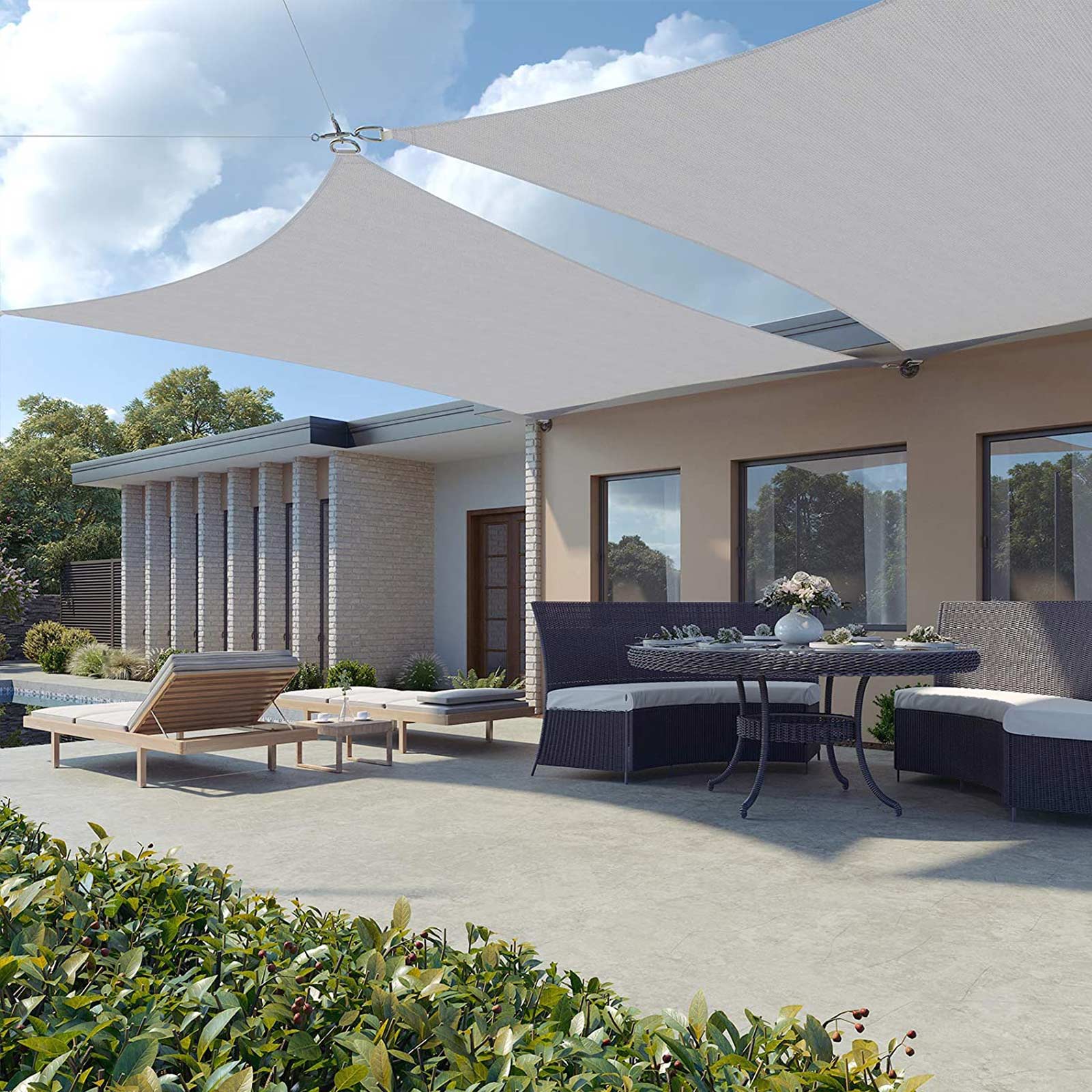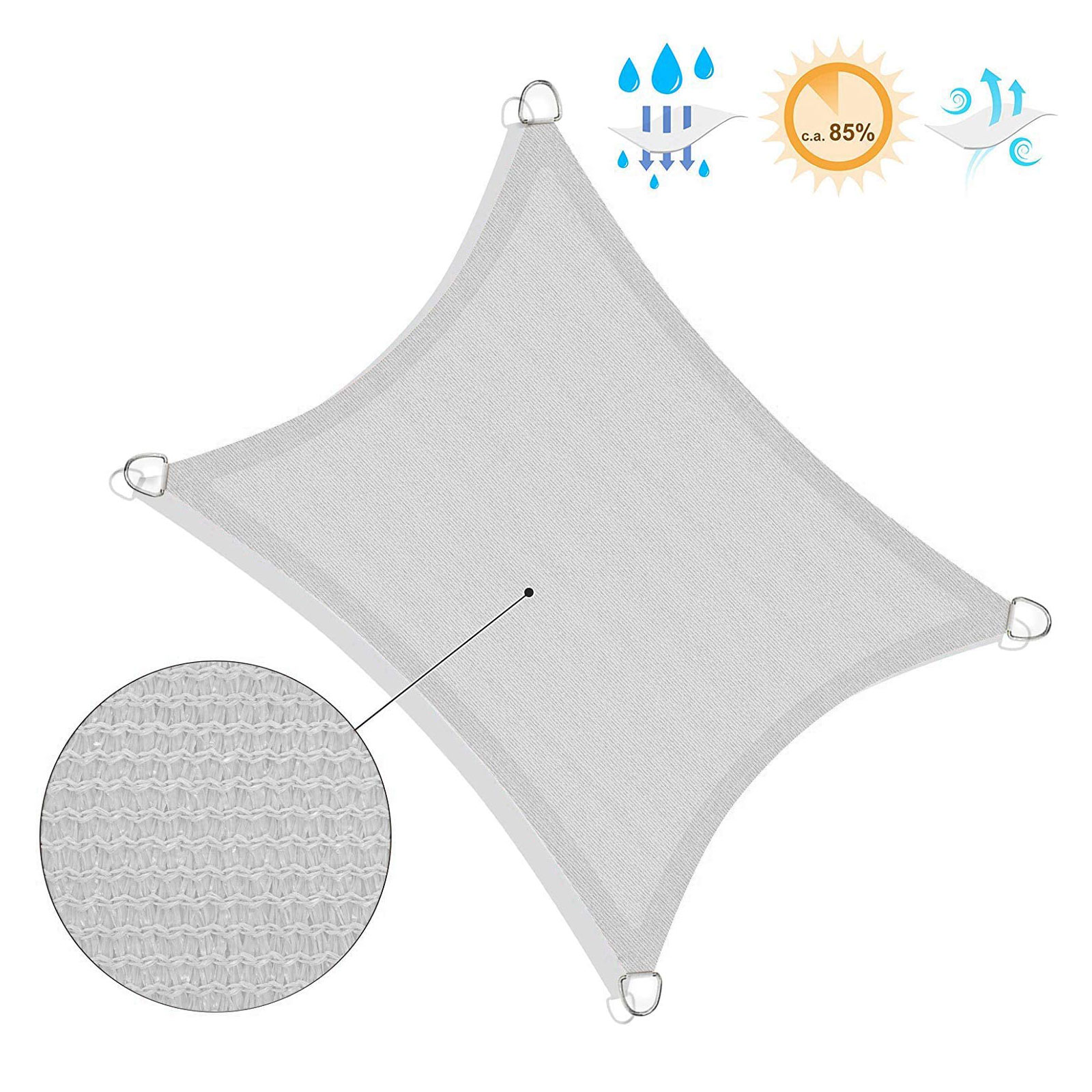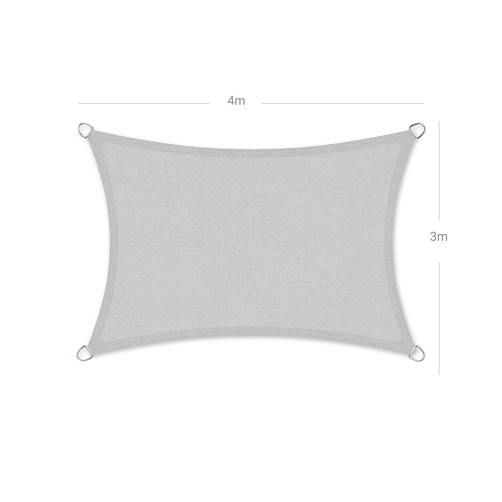SONGMICS solsejl ? tid til fornuftig solbeskyttelse. Overalt. N?r du slapper af p? din havestol p? en smuk sommerdag og kigger p? dit nye solsejl, lige f?r du lukker ?jnene, vil du helt sikkert dr?mme om en sp?ndende sejltur til eksotiske lande. Bare rolig, hvis din lille lur udend?rs varer lidt l?ngere. Den store solbeskyttelse over dig afviser UV-str?ler p? fremragende vis. Det er soleklart, at dette sejl passer perfekt i din have, over din terrasse eller din altan. Brug det for eksempel ogs? til at beskytte dine b?rns private legeplads eller deres soppebassin mod solen, for netop b?rns hud er f?lsom over for UV-str?ler. Solsejlet er ogs? en trofast ledsager p? campingpladsen. Sp?nd det for eksempel ud foran indgangsd?ren til din campingvogn og omdan det til en slags fortelt. Men ogs? hvis du vil beskytte din familie og venner, der sidder sultne ved grillen, mod for meget sollys, er dette solsejl perfekt. T?nk ogs? p? et solsejl, hvis du vil udstyre dit forretningsomr?de, f.eks. det udend?rs omr?de ved din caf? eller restaurant, med tilstr?kkelig solbeskyttelse. S? kan dine kunder nyde dine specialiteter i skyggen. Dette solsejl kan alts? bruges fleksibelt mange forskellige steder. Hvor vil du h?nge det op? S?dan monteres solsejlet: L?g solsejlet udbredt p? det sted, hvor du har brug for solbeskyttelse. Find derefter 4 faste punkter, hvor du vil fastg?re rebene. Disse er 2 m lange, s? find tr?er, p?le eller andre stabile genstande inden for denne radius. Derefter fastg?res rebene til fastg?relsespunkterne samt til solsejlens robuste l?kker og rustfri st?lringe, s? presenningen kan sp?ndes stramt og med en h?ldningsvinkel p? 20 grader. S? l?ber regnvand perfekt af. Hvilke steder er denne solafsk?rmning velegnet til? Er der 4 fastg?relsespunkter og tilstr?kkelig plads til det 3 x 4 m store sejl? S? er dette det perfekte sted for din nye solafsk?rmning, hvad enten det er p? campingpladsen foran din campingvogn, i din have eller over din swimmingpool. Produktdetaljer:Farve: Lysegr? Materiale: High-Density Polyethylen (HDPE/180 g) St?rrelse: 3 x 4 m Nettov?gt: 2,3 kg Leveringsomfang: 1 x solsejl med PVC-taske 4 x fastg?relsesreb SONGICs bem?rkninger: Vip sejlet 20 grader for at sikre, at regnvand kan l?be af uden problemer.Opbevar solsejlet p? et beskyttet sted under uvejr eller om vinteren. Reng?r sejlet med et mildt reng?ringsmiddel eller vand. Brug aldrig en b?rste med h?rde b?rster eller kemiske v?sker. S?rg for ikke at h?nge sejlet p? hovedet.