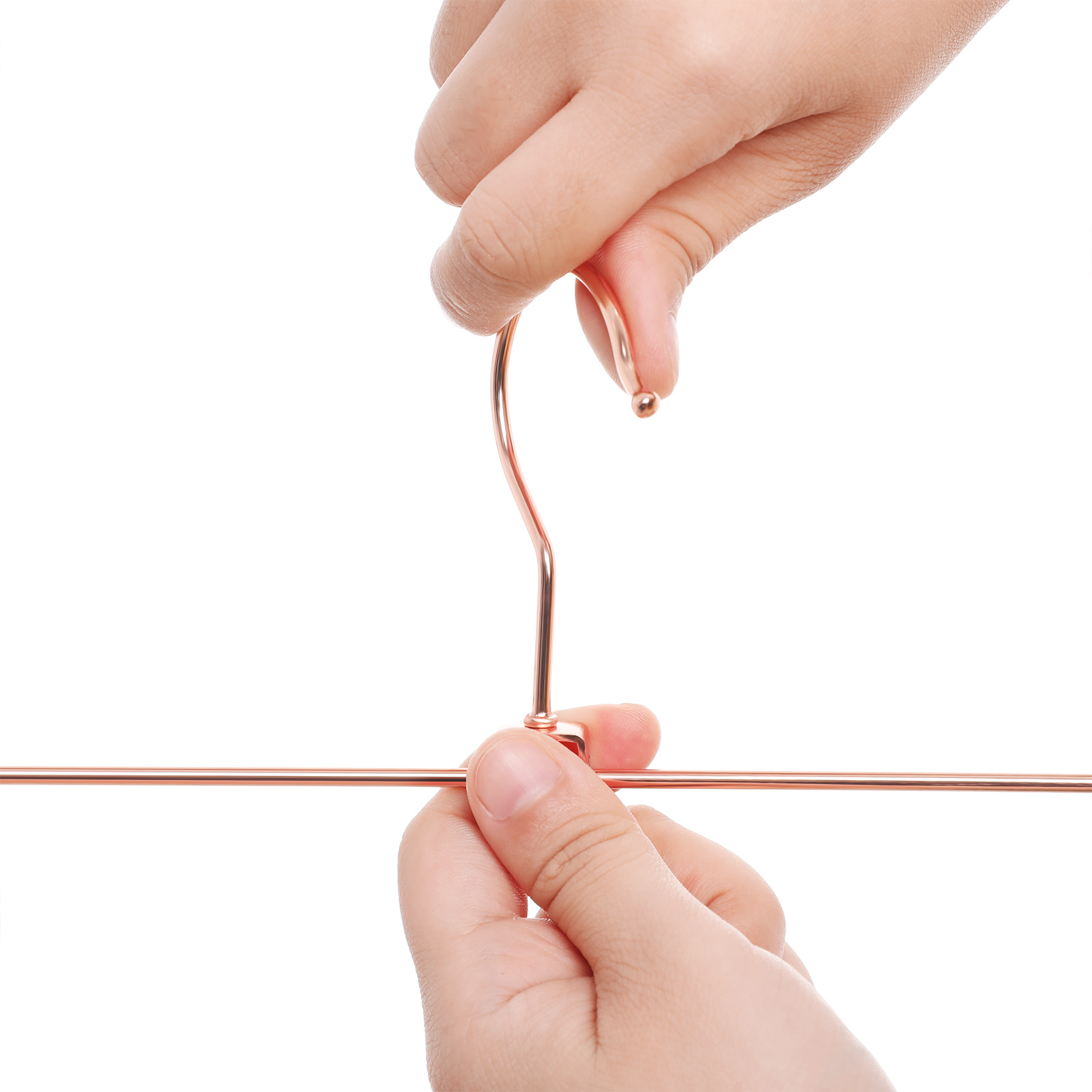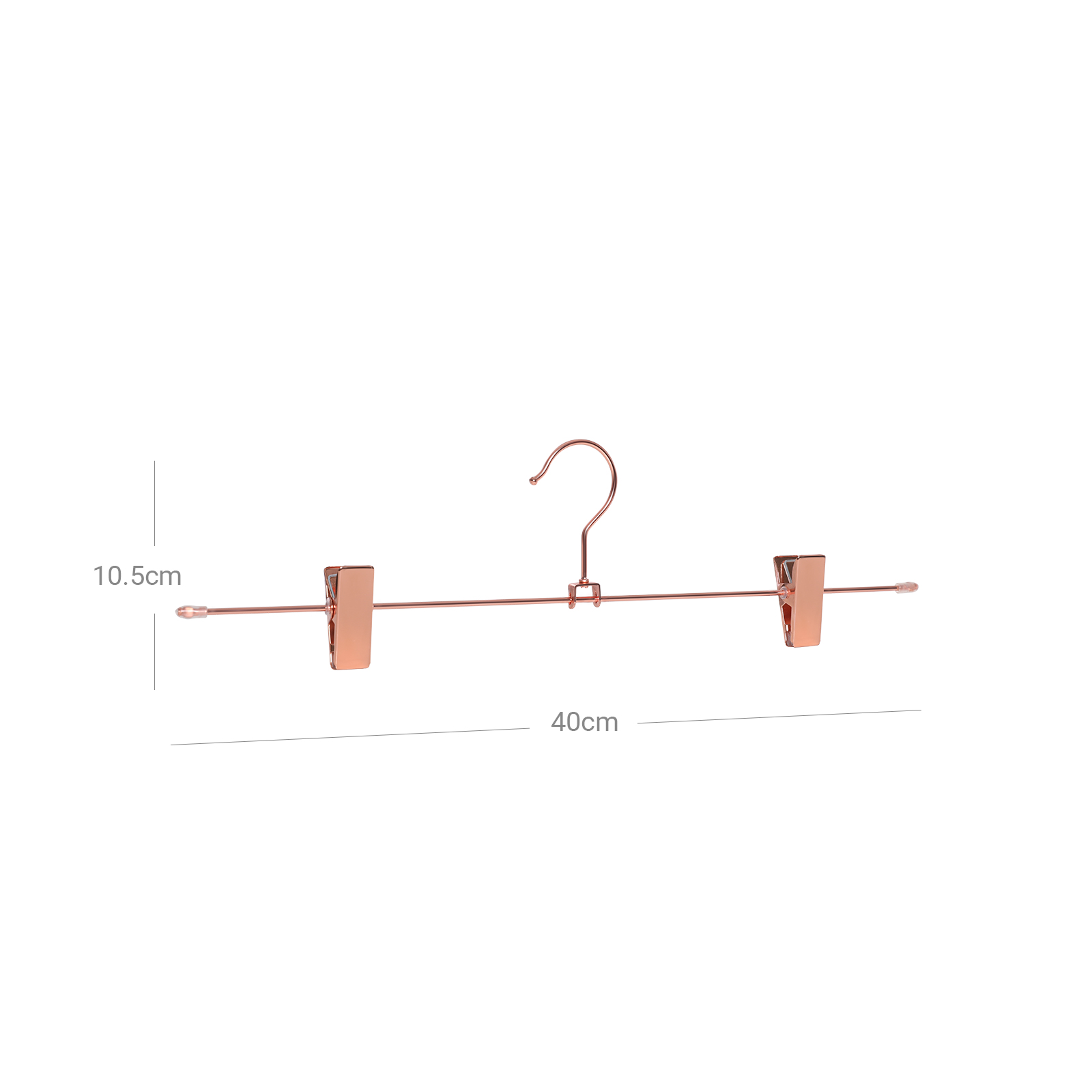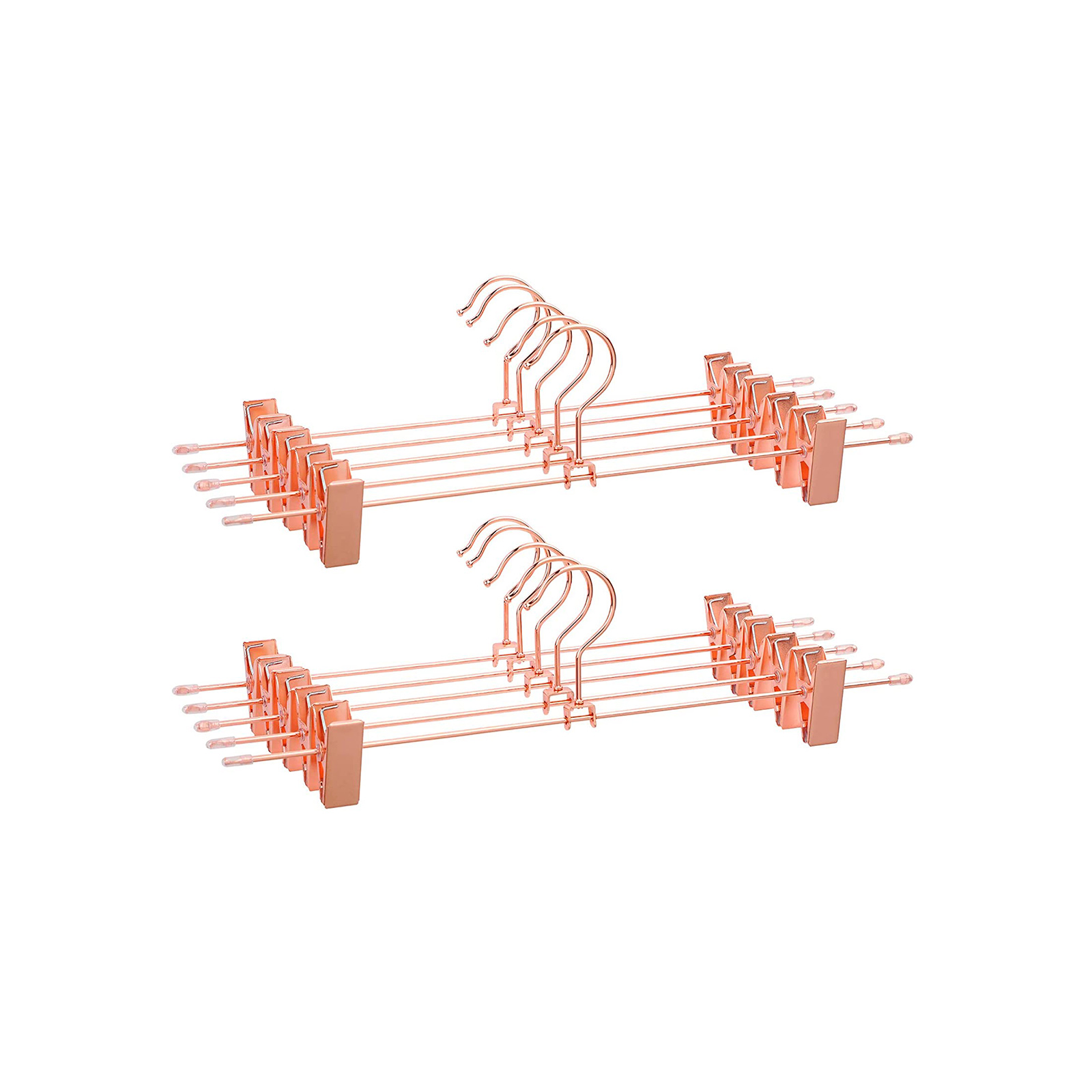 Vil du altid have dine bukser eller nederdele i topform og undg? at stryge dem inden en date eller et m?de? S? er dette s?t best?ende af 10 buksestativ lige noget for dig. Dine t?jstykker kan h?nges op p? disse stativer uden at blive kr?llede og er altid klar til brug. H?jdepunkterne i dette s?t best?ende af 10 nederdeleb?jler: – I sammenligning med andre b?jler er disse modeller ekstra lange (40 cm) og dermed velegnede til mange typer t?j. – Fremstillet af forkromet metaltr?d, er disse b?jler rustbestandige og robuste. – Takket v?re de justerbare klip passer alle t?jstykker i forskellige st?rrelser til din familie p? disse b?jler. – Takket v?re den 360? drejelige krog kan du nemt vende dit t?j, hvis du har h?ngt det forkert. Produktdetaljer:- Farve: Ros?guld – Materiale: Metal – St?rrelse: 40 x 0,5 x 10,5 cm (L x B x H) – V?gt pr. b?jle: 0,7 kg – Maks. statisk belastning pr. b?jle: 3 kg Leveringsomfang: -10 x buksb?jler af metal SONGMICS Bem?rkninger: – Den maksimale belastning pr. b?jle er 3 kg. Denne maksimale v?gt m? ikke overskrides. – Brug ikke disse b?jler i t?rretumbleren eller vaskemaskinen.