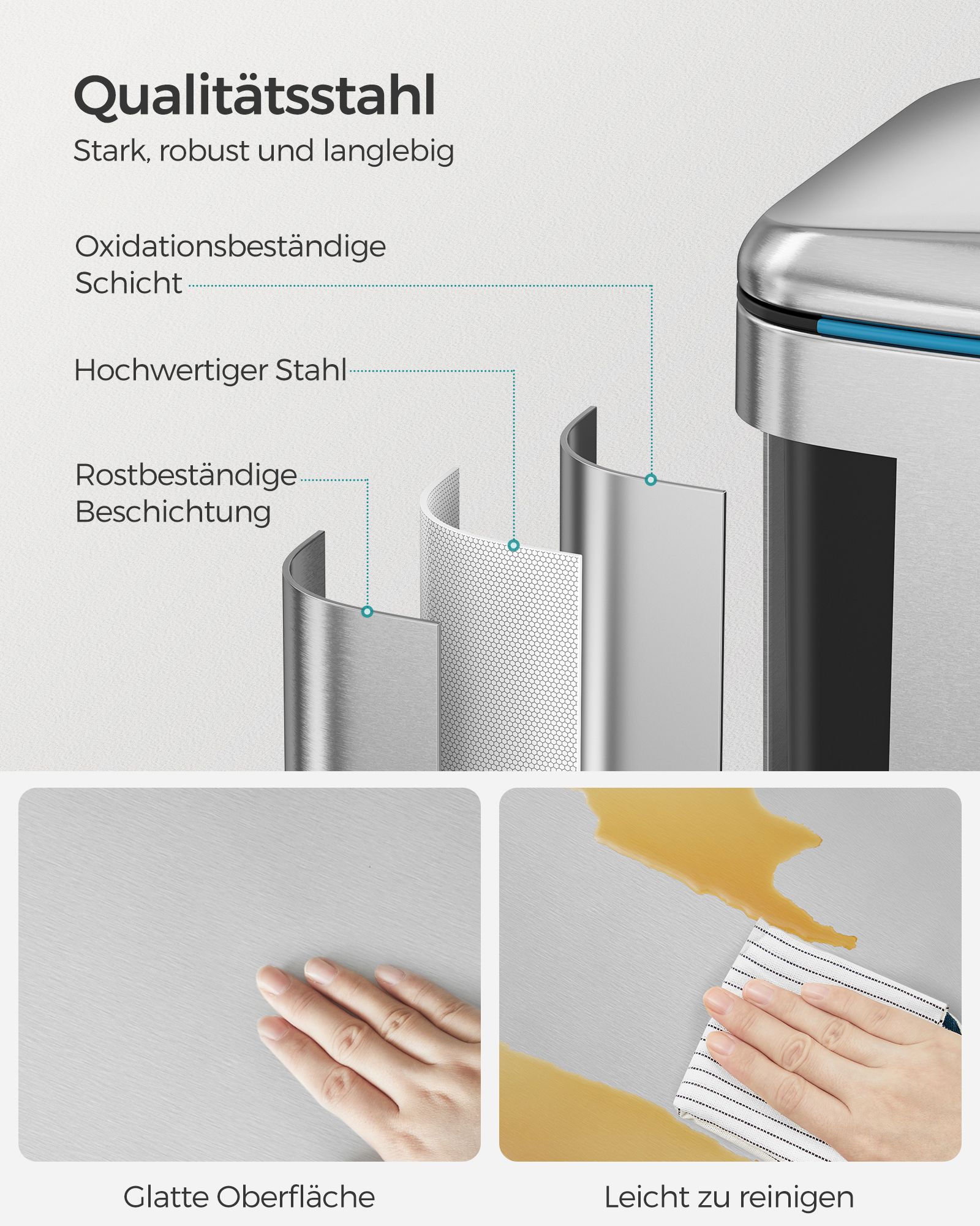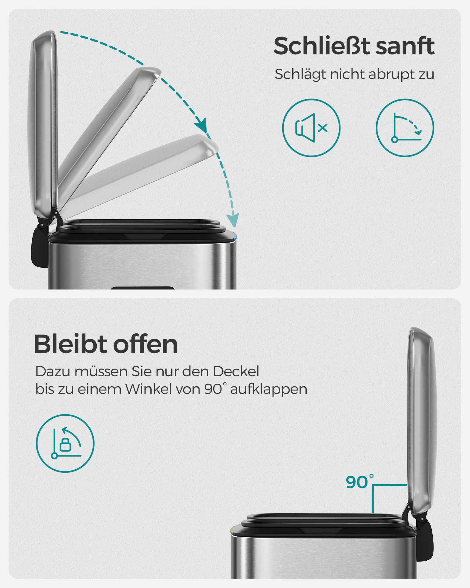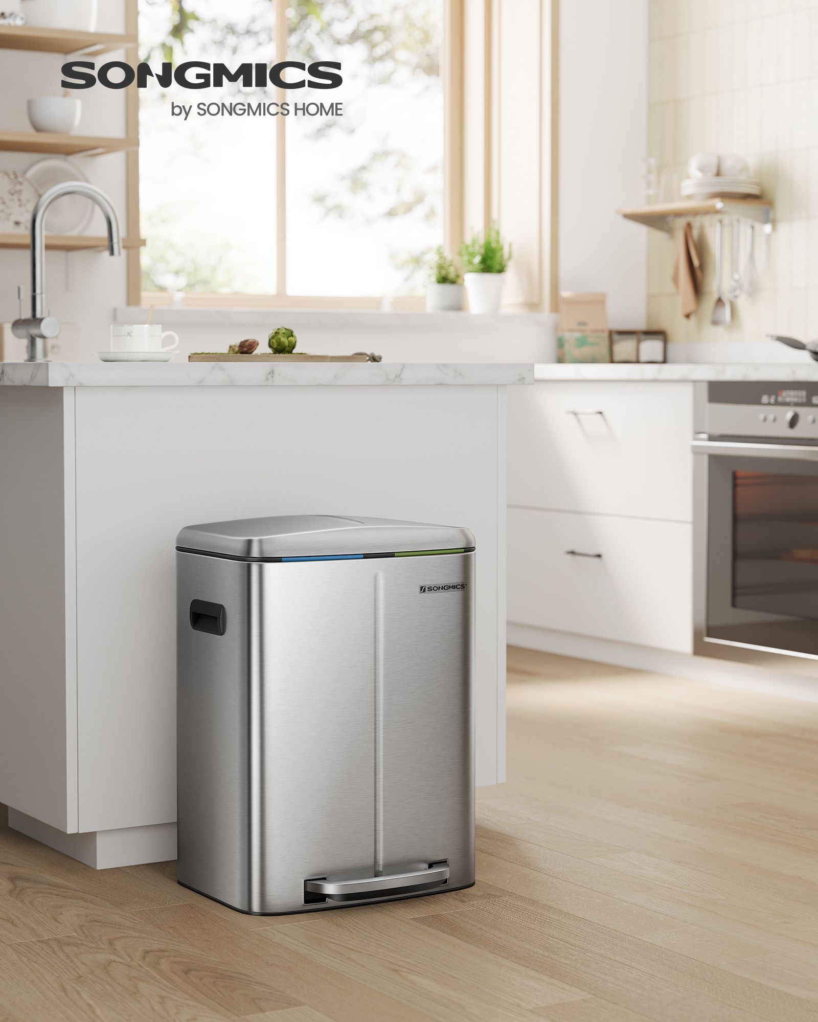 Genbrug kan ogs? v?re nemt: Med denne pedalb?tte med 2 separate rum kan du nemt sortere dit affald, f.eks. restaffald og bioaffald. Alt, du skal g?re, er at tr?de p? pedalen og smide affaldet i den indvendige spand. Du beh?ver ikke engang at r?re skraldespanden med h?nden, hvilket sikrer god hygiejne. En “hvalpe- og b?rnesikker” skraldespand: Roder din hund ofte i skraldespanden? R?kker dine sm? ofte h?nden ned i den ?bne skraldespand? Hvis ja, vil du sikkert gerne s?tte en stopper for det. Her kommer vores pedalsandkasse ind i billedet! F?rst n?r du tr?der p? pedalen, ?bnes l?get. Produktdetaljer: Farve: S?lvfarvet St?rrelse: 44,5 x 36 x 60 cm (L x B x H?St?rrelse p? inderspand: 19 x 28,5 x 50 cm (L x B x H?Samlet h?jde (med ?bent l?g): 92 cmV?gt: 7,1 kgLeveringsomfang:1 x skraldespandSONGMICS Bem?rkninger:T?r produktet af med en bl?d, fugtig klud og brug om n?dvendigt et mildt reng?ringsmiddel.