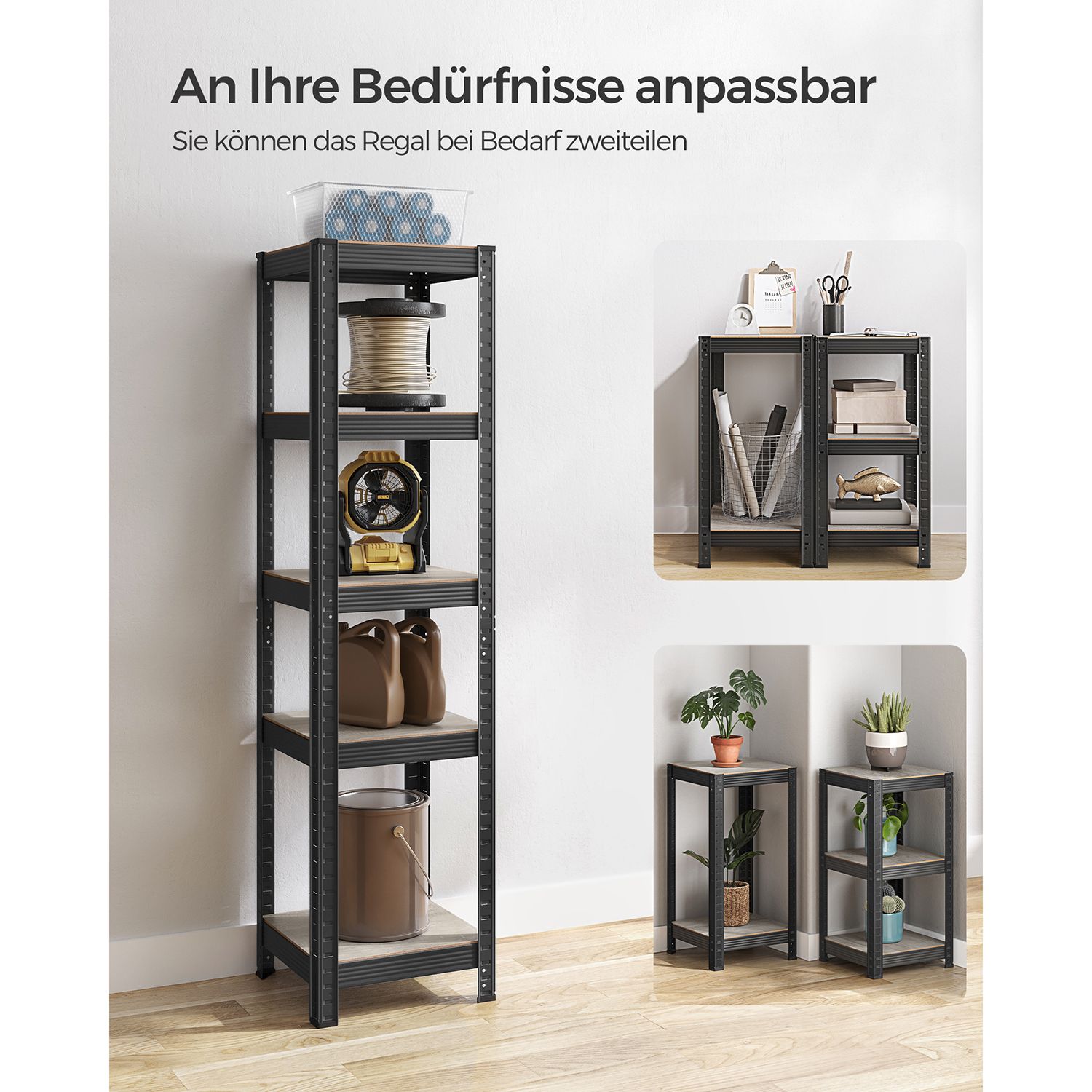 SONGMICS tungt lastreol, k?kkenreol, bogreol, lagerreol, stativreol, 5 hylder, 150 x 37 x 37 cm, belastbar op til 400 kg, justerbare hylder, industrielt design, vintagebrun-sort GLR037B01
