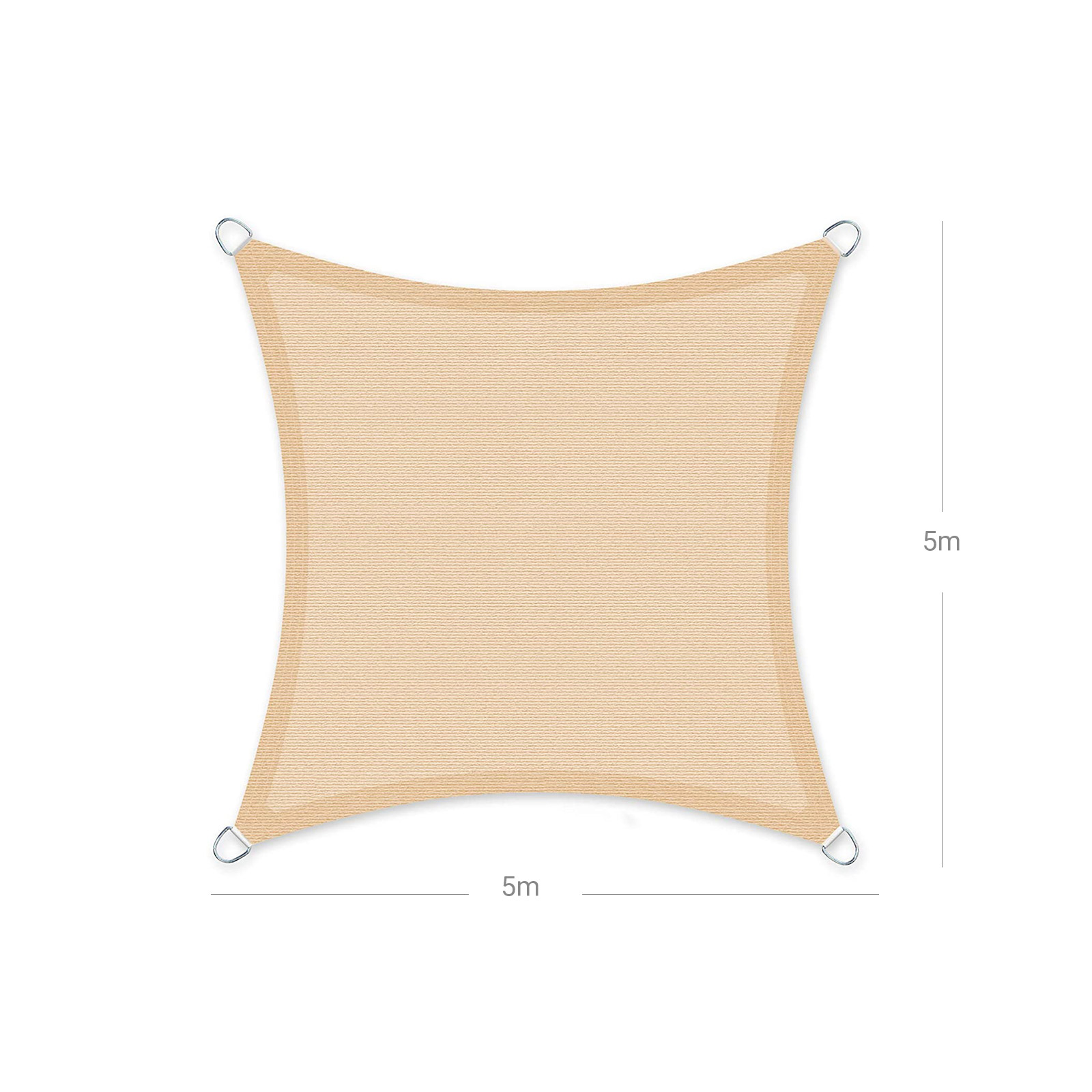 Den perfekte solbeskyttelse og skygge til haven, terrassen, altanen og verandaen Brug den i haven til bryllupper, fester, grillfester eller camping Udnyt t?ppets egenskaber til din pool, gr?spl?ne, have, terrasse, carport Du kan ogs? bruge vores solbeskyttelse i indk?bscentre, b?rnehaver, forsamlingshuse, byggepladser, forlystelsesparker, sportspladser eller legepladser. Solsejlens skyggefaktor er 80-85 % og er en holdbar og robust skygge. Det giver UV-beskyttelse og er luftgennemtr?ngeligt, s? der ikke kan ophobes varme under sejlet. Der sker en naturlig regulering af temperaturen p? grund af det luftgennemtr?ngelige og vandgennemtr?ngelige materiale. S? selv n?r det regner, dannes der ikke vandpytter. Den konkave form p? vores solsejl g?r det meget stabilt og rivfast, da sp?ndingen fordeles j?vnt, og der ikke kan opst? udh?ng i stoffet. Kanterne er forst?rket med et specielt h?jtydende b?nd, hvilket g?r det endnu mere stabilt i kanterne. Produktdetaljer: Materiale: HDPE (h?jdensitetspolyethylen) Materialev?gt: 180 g/m? M?l: 5 x 5 m Bruttov?gt: 4,45 kg Leveringsomfang: 1 x solsejl 8 x fastg?relsesreb For at du kan have gl?de af din solafsk?rmning i lang tid, skal du v?re opm?rksom p? f?lgende: – Optimal fastg?relse opn?s med en h?ldning p? 20?, s? der er en let skr?nende overflade.- Fjern solsejlet ved kraftig vind, storm, uvejr, tordenvejr og om vinteren. – Reng?r sejlet med et mildt reng?ringsmiddel eller med vand. L?g ikke sejlet i vaskemaskinen, og b?rst det ikke med en h?rd b?rste. – S?rg for at montere over- og undersiden korrekt, n?r du ops?tter sejlet.