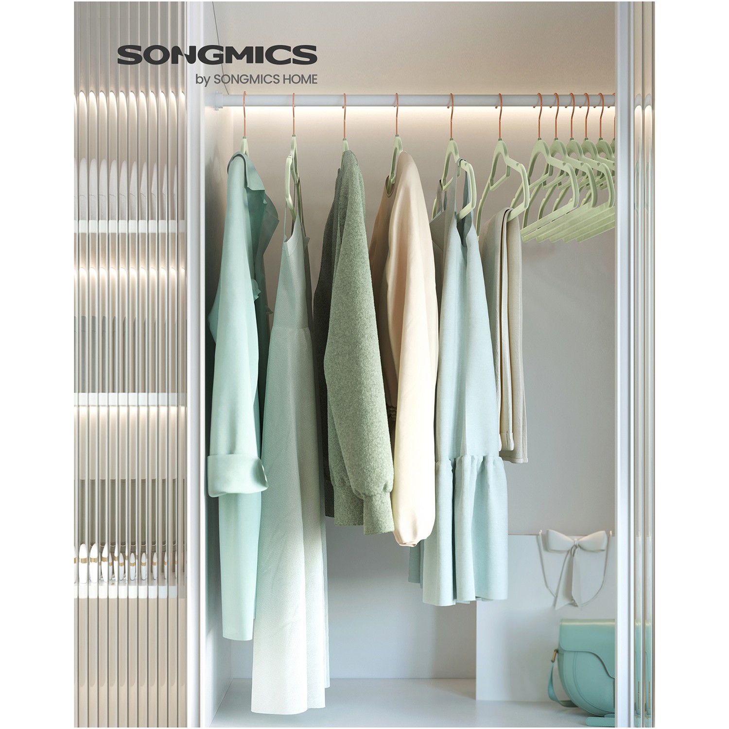 Produktdetaljer:Farve: Lysegr?n Materiale: Fl?jl, ABS-plast, metalhage St?rrelse pr. b?jle: 43,5 x 0,6 x 22,5 cm (L x B x H) V?gt af 50 b?jler: 3,9 kg Maks. statisk belastning pr. b?jle: 5 kg Leveringsomfang: 50 x b?jler SONGMICS Bem?rkninger:H?ng ikke v?dt t?j p? b?jlerne. H?ng ikke for tunge bekl?dningsgenstande p? b?jlerne. Brug ikke disse b?jler i en t?rretumbler.