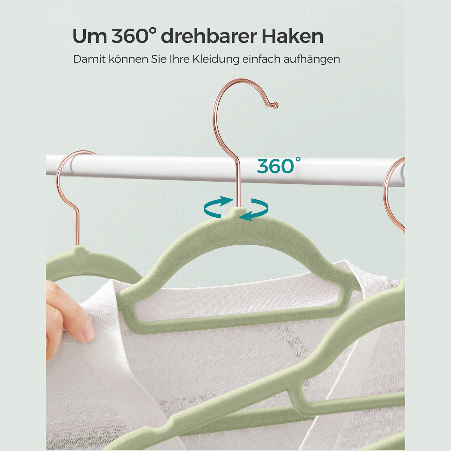 Produktdetaljer:Farve: Lysegr?n Materiale: Fl?jl, ABS-plast, metalhage St?rrelse pr. b?jle: 43,5 x 0,6 x 22,5 cm (L x B x H) V?gt af 50 b?jler: 3,9 kg Maks. statisk belastning pr. b?jle: 5 kg Leveringsomfang: 50 x b?jler SONGMICS Bem?rkninger:H?ng ikke v?dt t?j p? b?jlerne. H?ng ikke for tunge bekl?dningsgenstande p? b?jlerne. Brug ikke disse b?jler i en t?rretumbler.