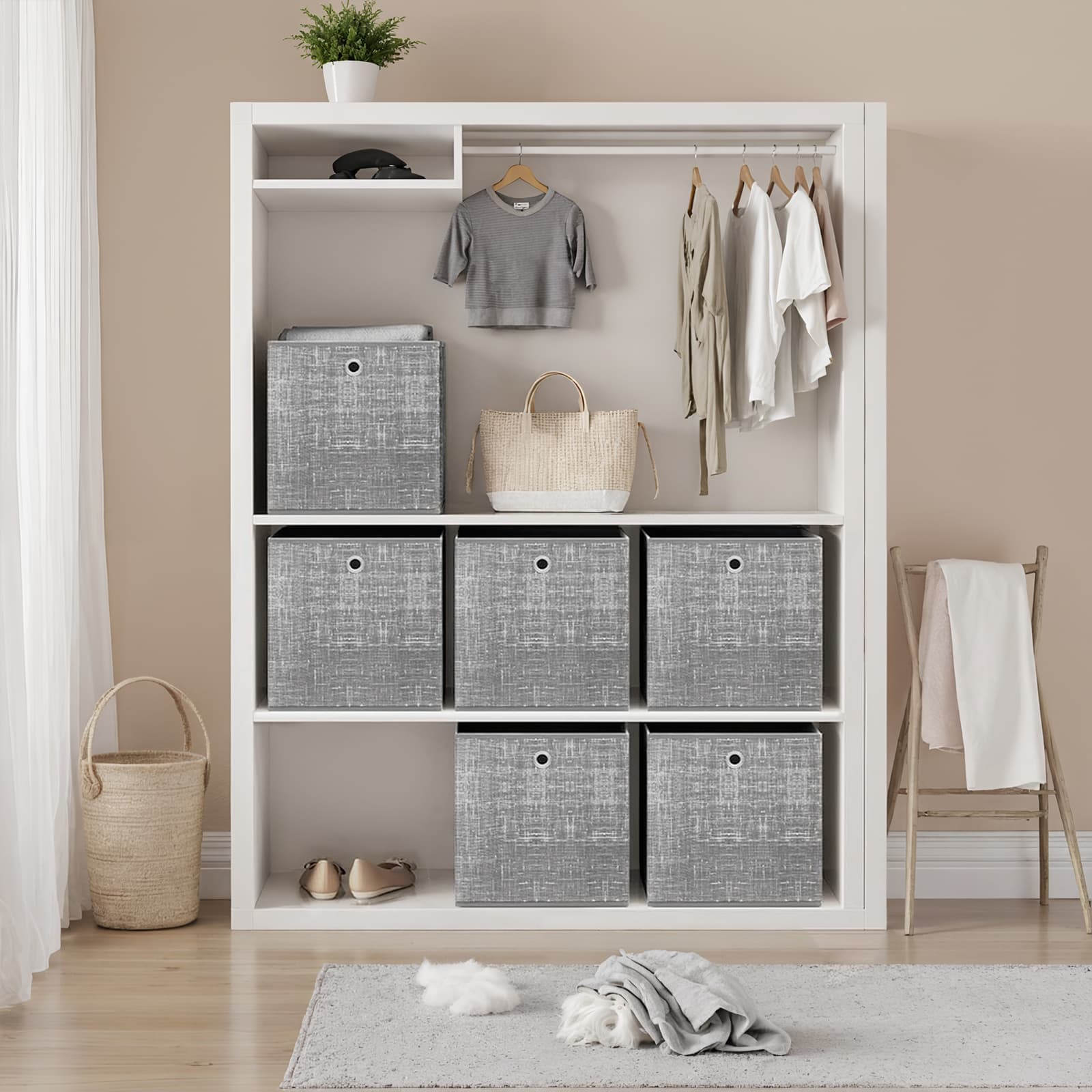 SONGMICS opbevaringskasse, 6-pak, opbevaringskasser af ikke-v?vet stof med h?ndtag, 30 x 30 x 30 cm, til kubereol, foldbar kasse, t?jopbevaring, sandbeige