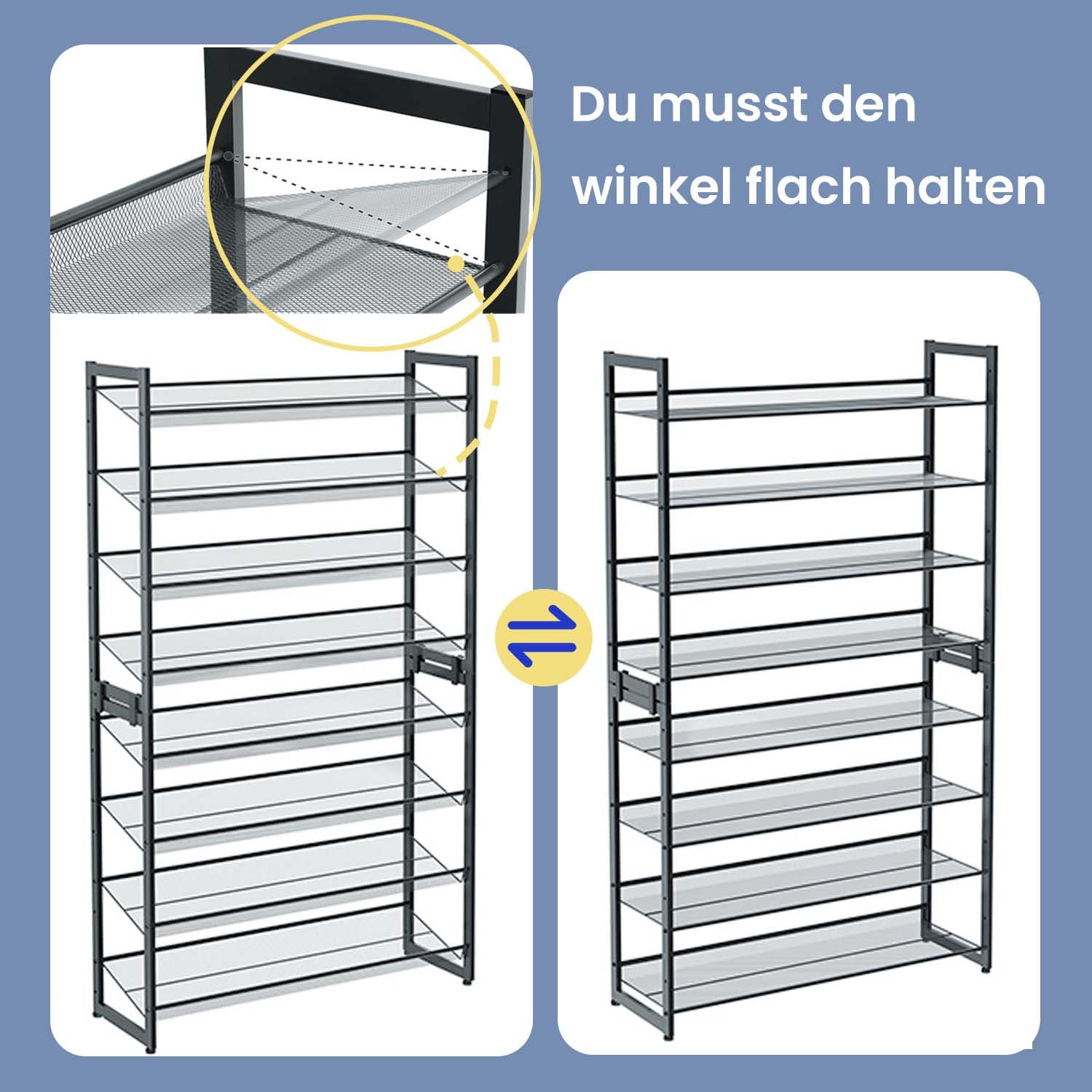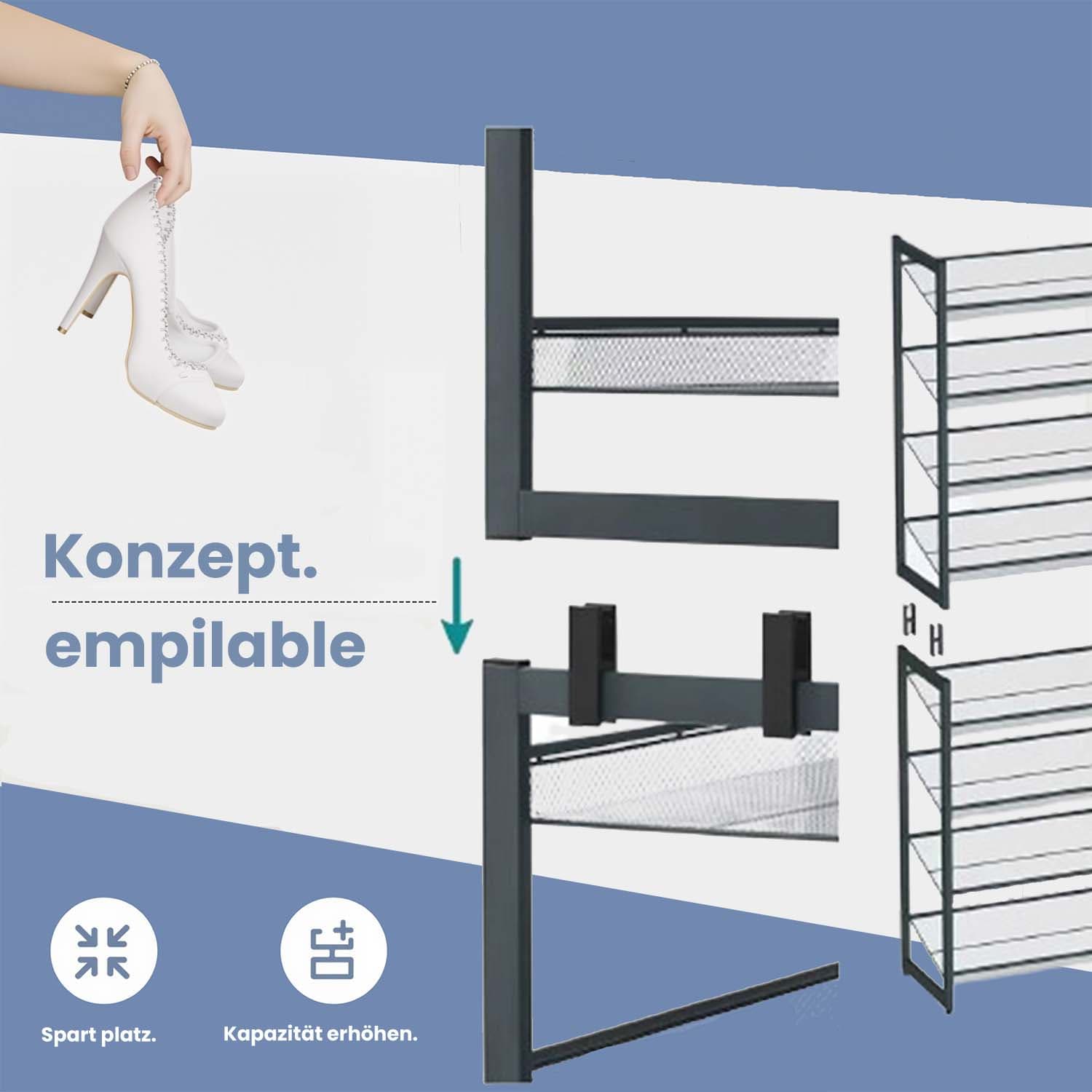 Produktdetaljer: Farve: Gr? Materiale: JernM?l: 92,5 x 30,7 x 163,5 cm (L x B x H)V?gt: 10,7 kgMaks. statisk belastning pr. hylde: 10 kgLeveringsomfang:2 x 4-trins skoholder4 x plastikkoblinger1 x tilbeh?rspose1 x v?ltesikring1 x brugsanvisning (DE, EN, FR, ES, IT)SONGMICS Bem?rkninger:Fastg?r produktet til v?ggen med den medf?lgende v?ltesikring for at sikre sikkerheden under brug.Hvis du ikke ?nsker at stable reolerne oven p? hinanden, skal du opbevare plastikkoblingerne, s? de senere kan findes og genbruges.Den maksimale belastning i teksten refererer til den maksimale statiske v?gt.