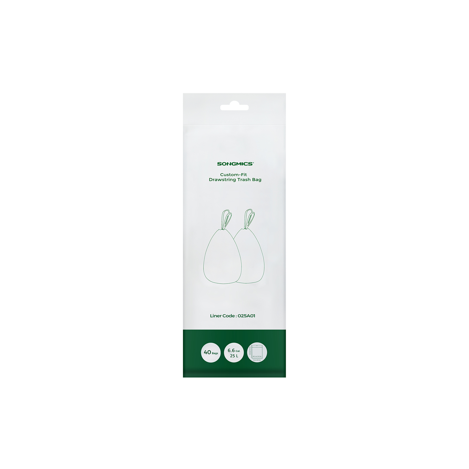 SONGMICS affaldsposer med snor, affaldsposer til 25 liters affaldsspand, affaldsposer til k?kkenaffaldsspand, kode 025A01, 1 rulle, 40 stk., hvid KRB025A01