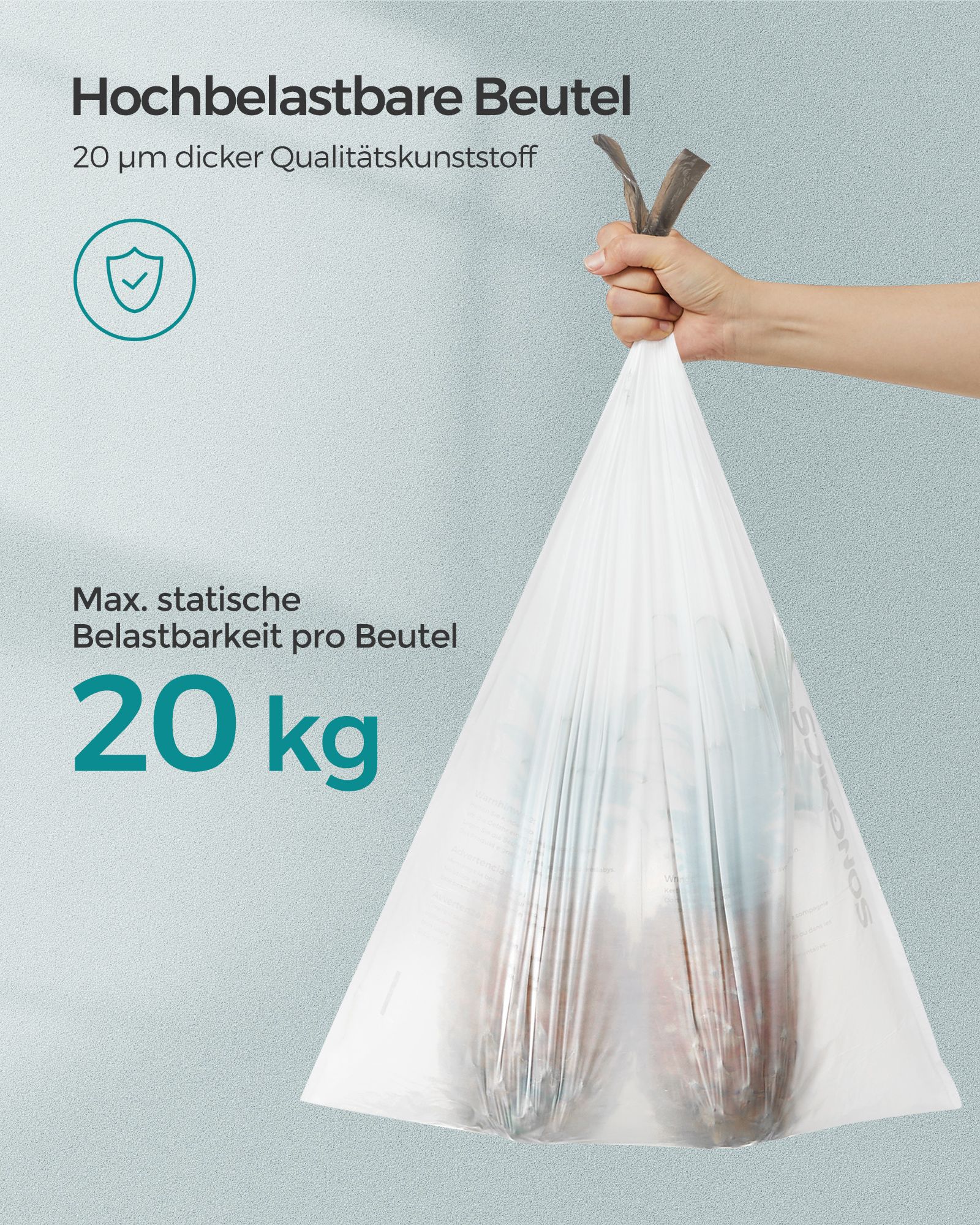 Maks. statisk belastning pr. pose: 20 kg