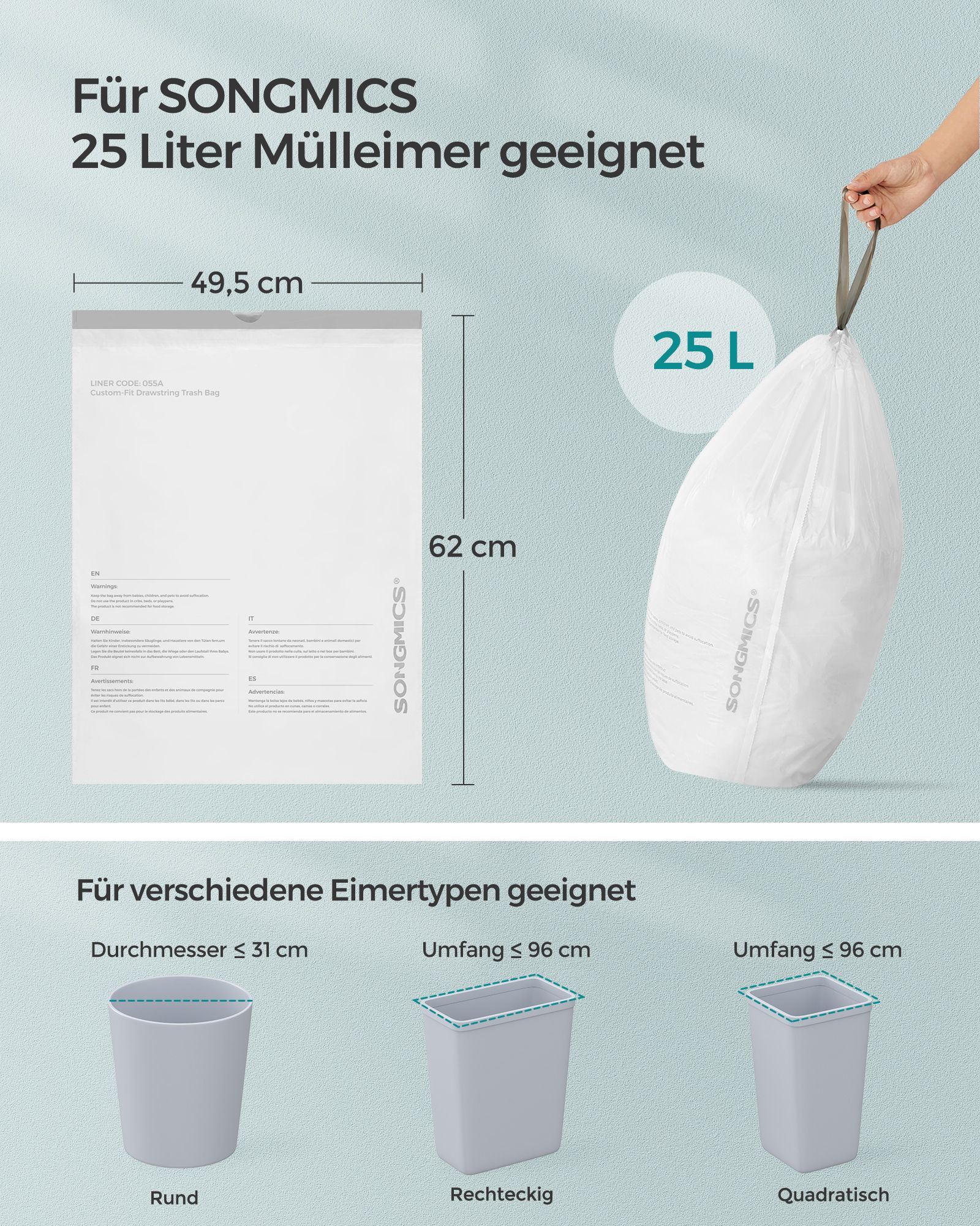 Kapacitet pr. pose: 25 liter