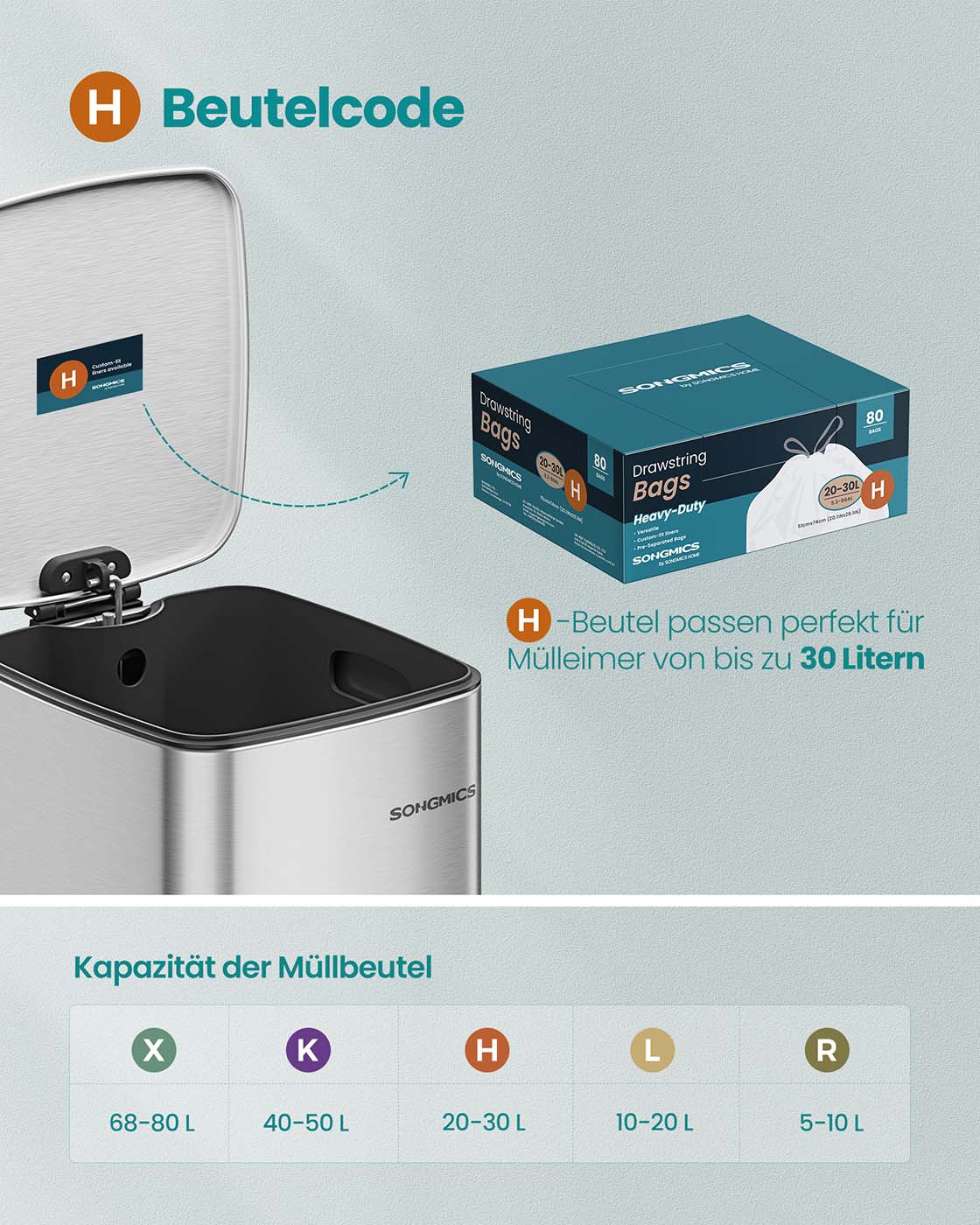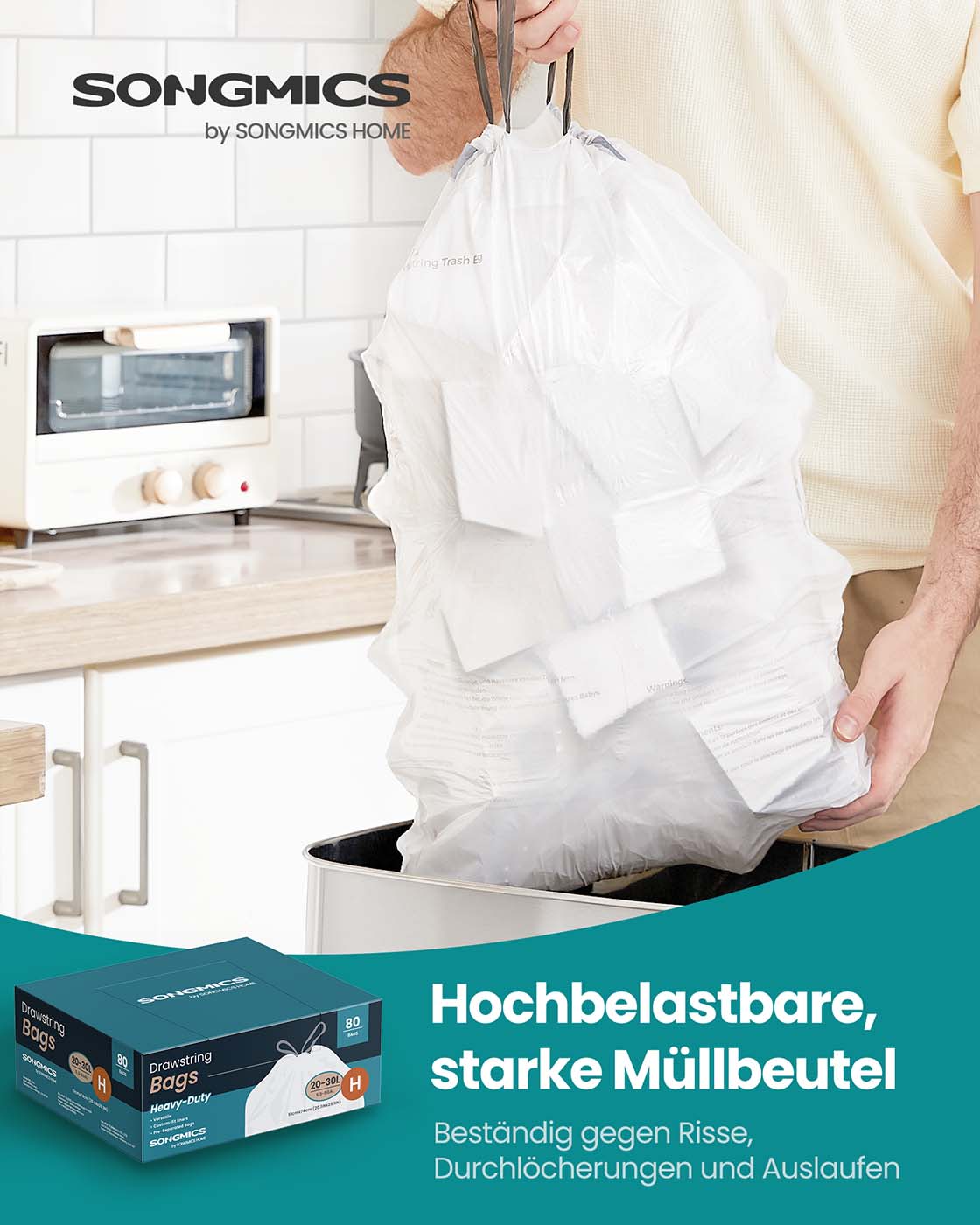 Vær den første til at anmelde “SONGMICS affaldsposer 30 L med snor og i alt 80 stk. cremehvide”