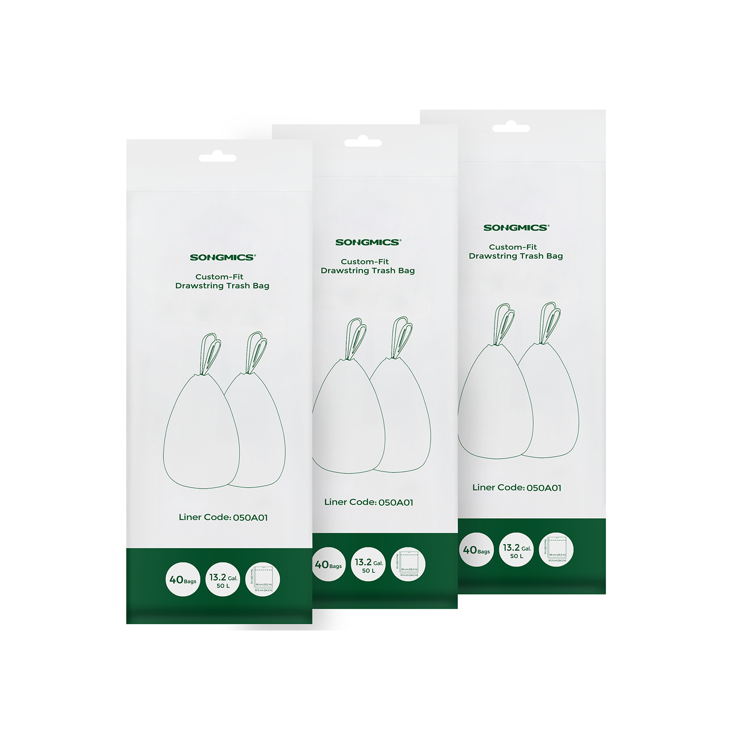 Pr?cis tilpasset: Disse affaldss?kke er designet til SONGMICS 50 liters skraldespande, s? de passer perfekt. Hver pose er 59 x 74 cm, n?r den er fladtrykt.