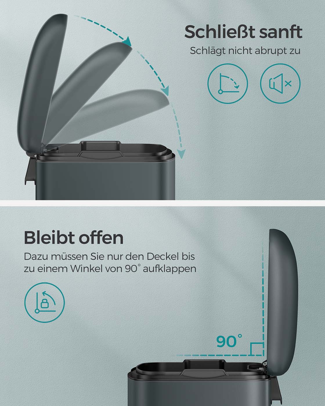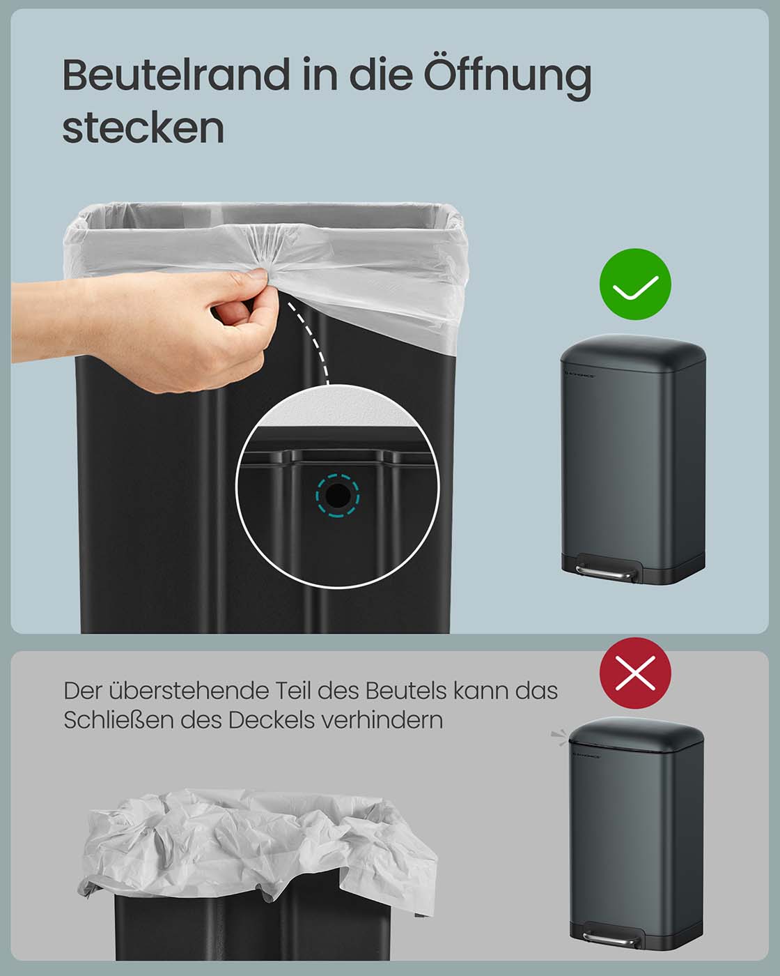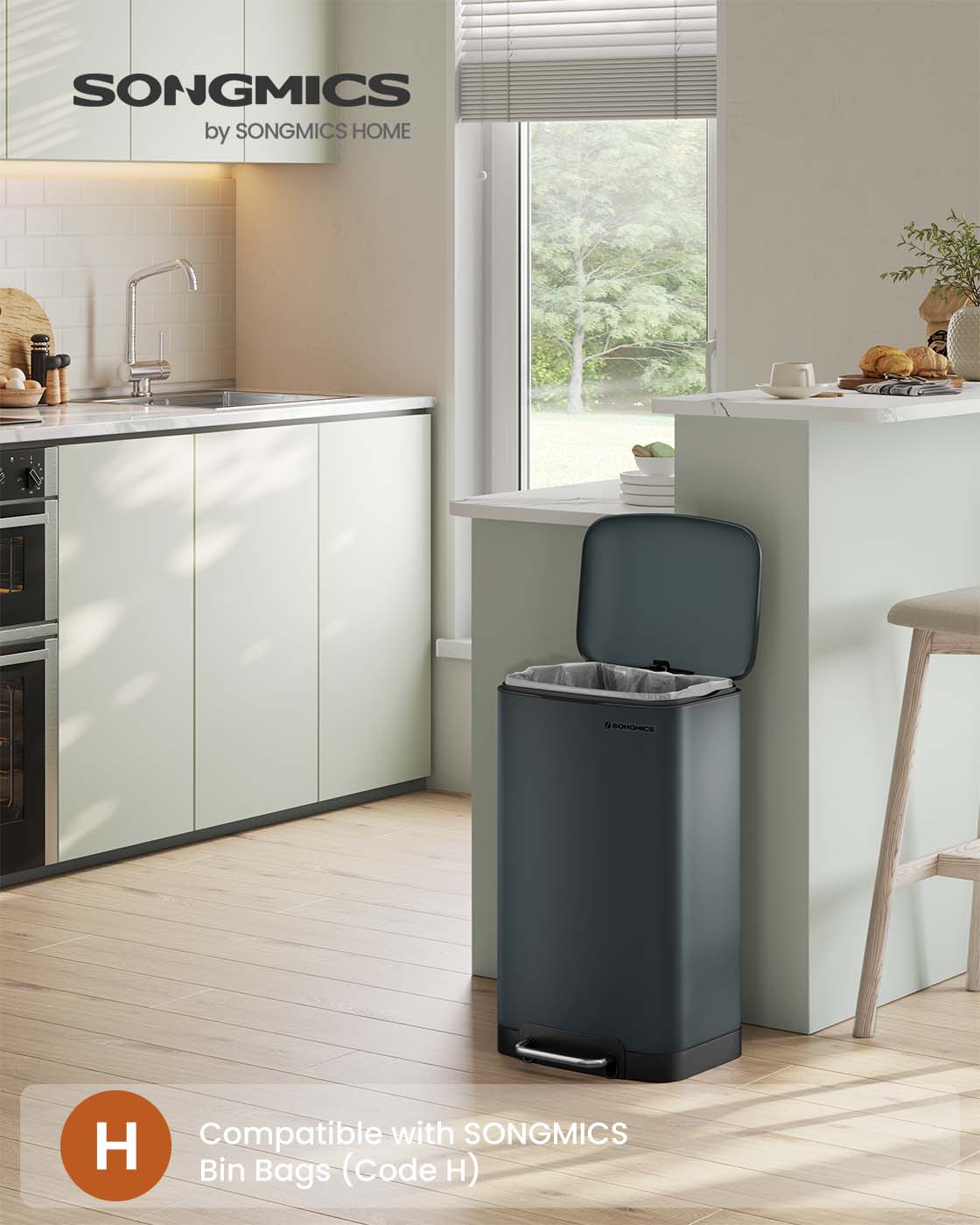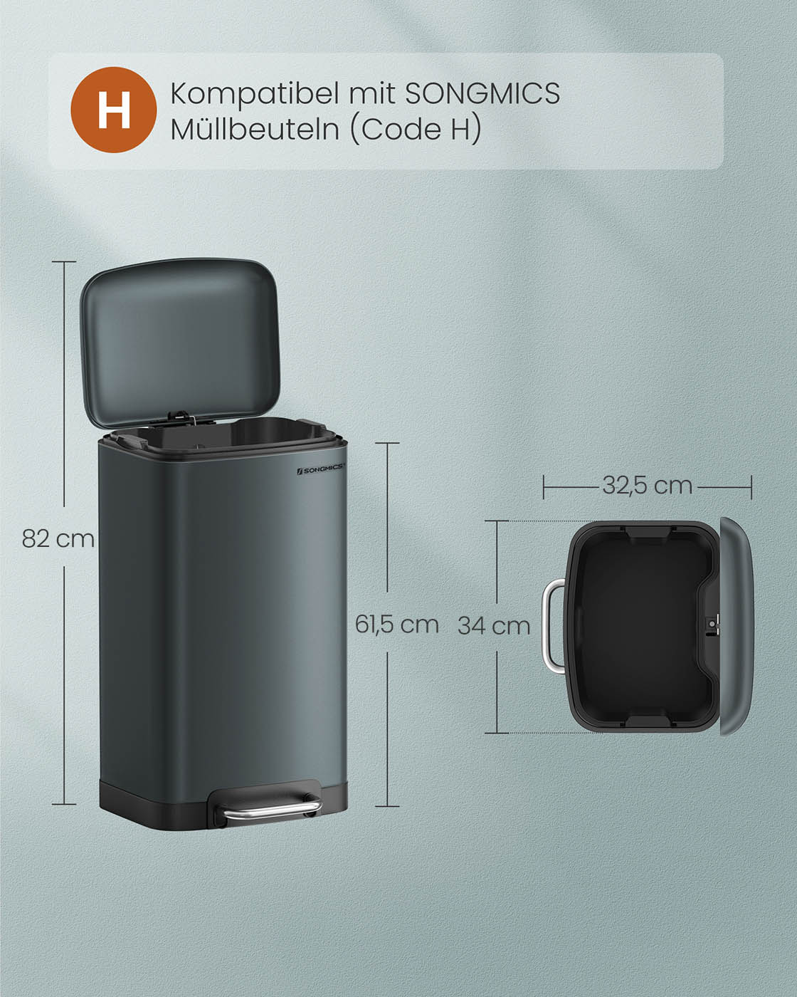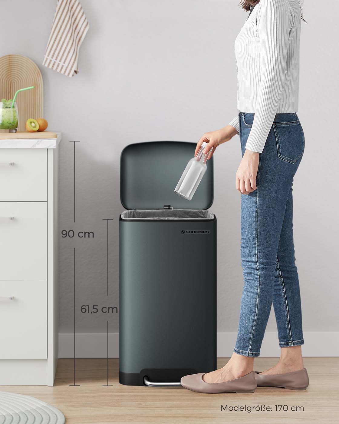 SONGMICS affaldsspand i rustfrit st?l, 30 l pedalspand med l?g, 34,5 x 27,5 x 61,5 cm, s?lv, LTB01L