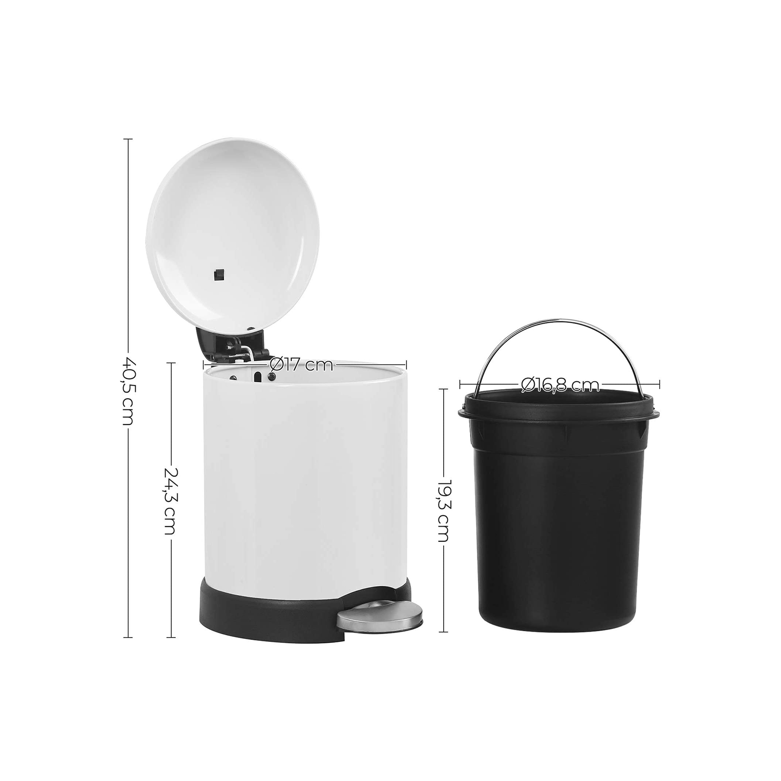 H?ros de la propret? : Simple d’une forme ronde, cette poubelle SONGMICS blanc vous aide ? cacher le d?sordre et ? mettre de l’ordre chez vous, tout en apportant de la fra?cheur et de la modernit? ? la pi?ce. L’acier trait? par poudrage assure une beaut? durable pour les ann?es ? venir. Praktisk som alt andet: ?bn l?get med foden og smid affaldet i. L?get lukker bl?dt og lydl?st uden st?j. L?ft l?get helt op med h?nden, n?r du vil have det til at st? ?bent. Fjern den indvendige spand med st?lh?ndtaget for at t?mme den. Egenskaber:- Farve: Hvid – Materialer: Spand i st?l, indvendig spand i plast – M?l: 16,8 x 24,2 x 24,3 cm (L x B x H) – Total h?jde med ?bent l?g: 40,5 cm – V?gt: 0,7 kg Levering: -1 x Spand Forholdsregler fra SONGMICS:- Lad l?get lukke automatisk for at forl?nge produktets levetid. – Reng?r med en bl?d, fugtig klud og brug et neutralt reng?ringsmiddel, hvis det er n?dvendigt. – Hold overfladen t?r for at sikre lang levetid. – Brug produktet p? et plant underlag.