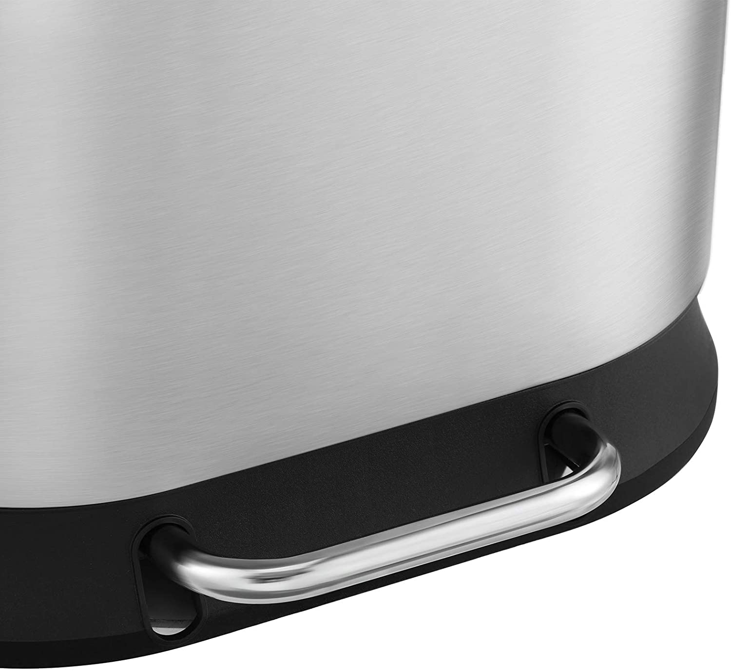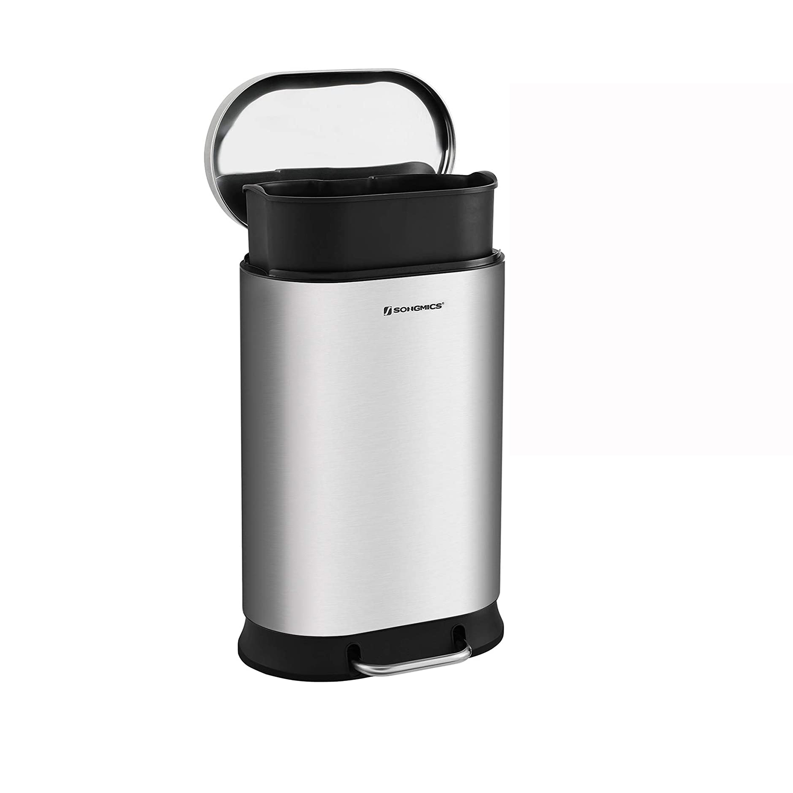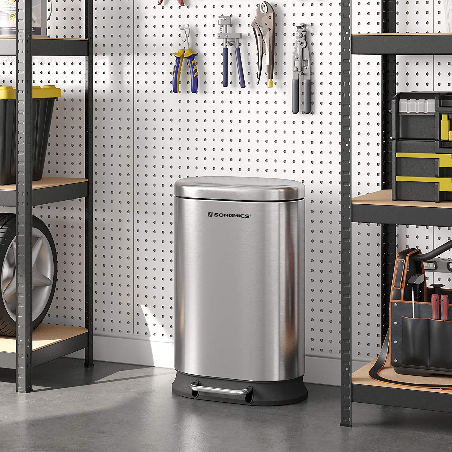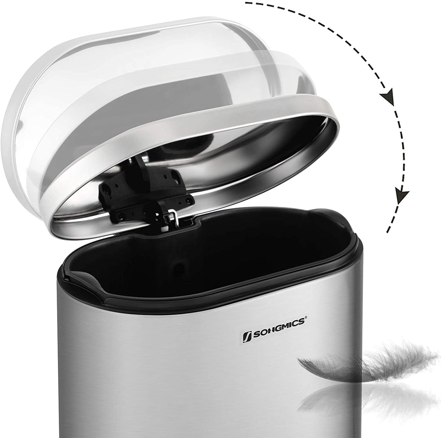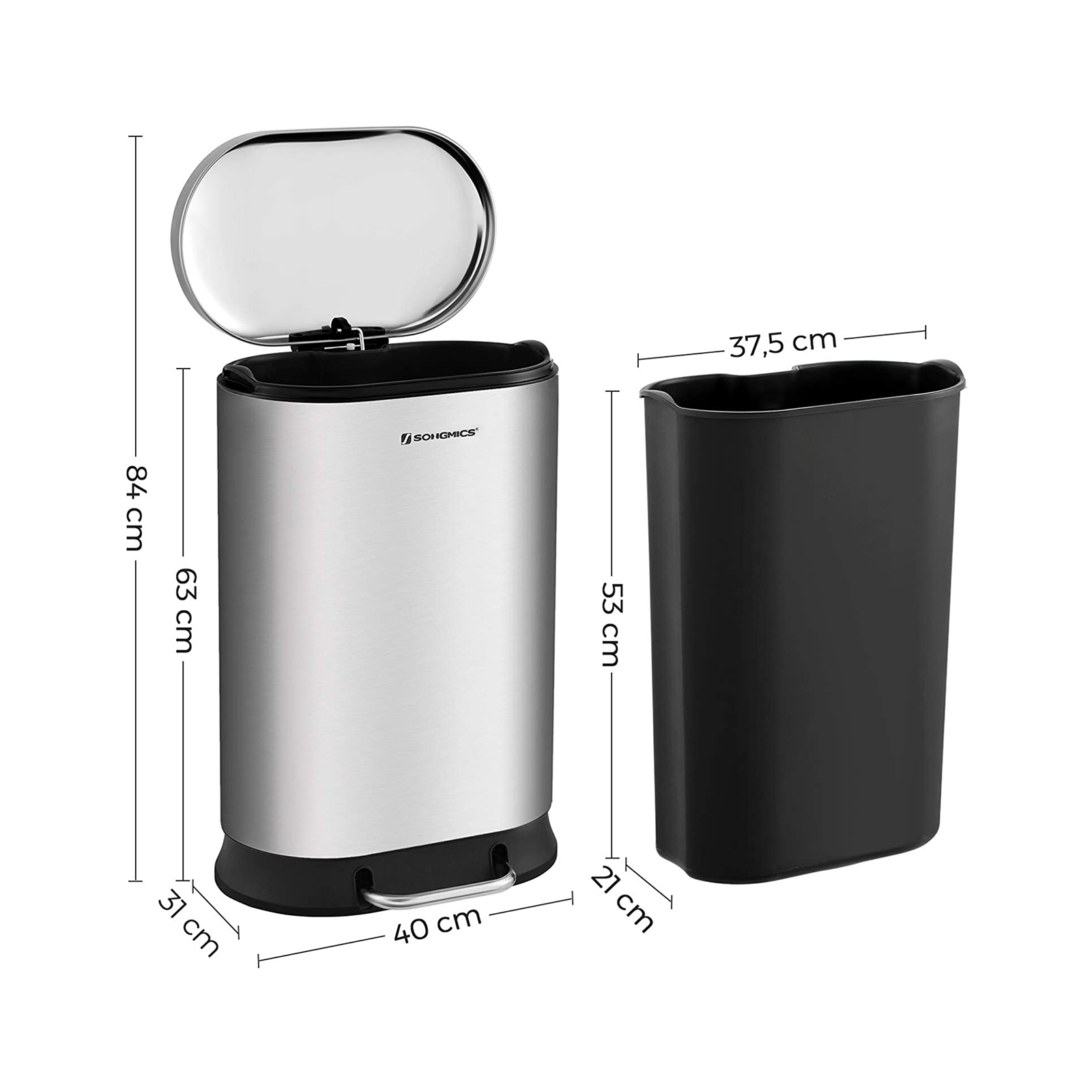 Praktisk: Det er sv?rt at ?bne l?get p? en skraldespand, n?r du ikke har h?nderne fri. Tr?d blot p? pedalen p? skraldespanden for at smide affald ud. Du kan ogs? ?bne den helt med h?nderne for at holde den ?ben. Stilfuld: Denne 30 liters skraldespand kan ikke kun rumme dit daglige affald, men ogs? forsk?nne dit hjem. Rustfrit st?l, en fingeraftryksresistent overflade i s?lv, et praktisk h?ndtag p? bagsiden og en sort inderspand ? denne skraldespand har et elegant og smart look, der giver dit hjem et stilfuldt pr?g.Produktdetaljer: Farve: S?lvfarvet Materiale: Rustfrit st?l St?rrelse: 40 x 31 x 63 cm (L x B x H?Samlet h?jde (med ?bent l?g): 84 cm V?gt: 4,3 kg Leveringsomfang: 1 x skraldespand SONGICs bem?rkninger:T?r produktet af med en bl?d, fugtet klud og brug om n?dvendigt et mildt reng?ringsmiddel. Luk ikke skraldespandens l?g helt med h?nden, da det kan lukke automatisk. Placer produktet p? et plant underlag.