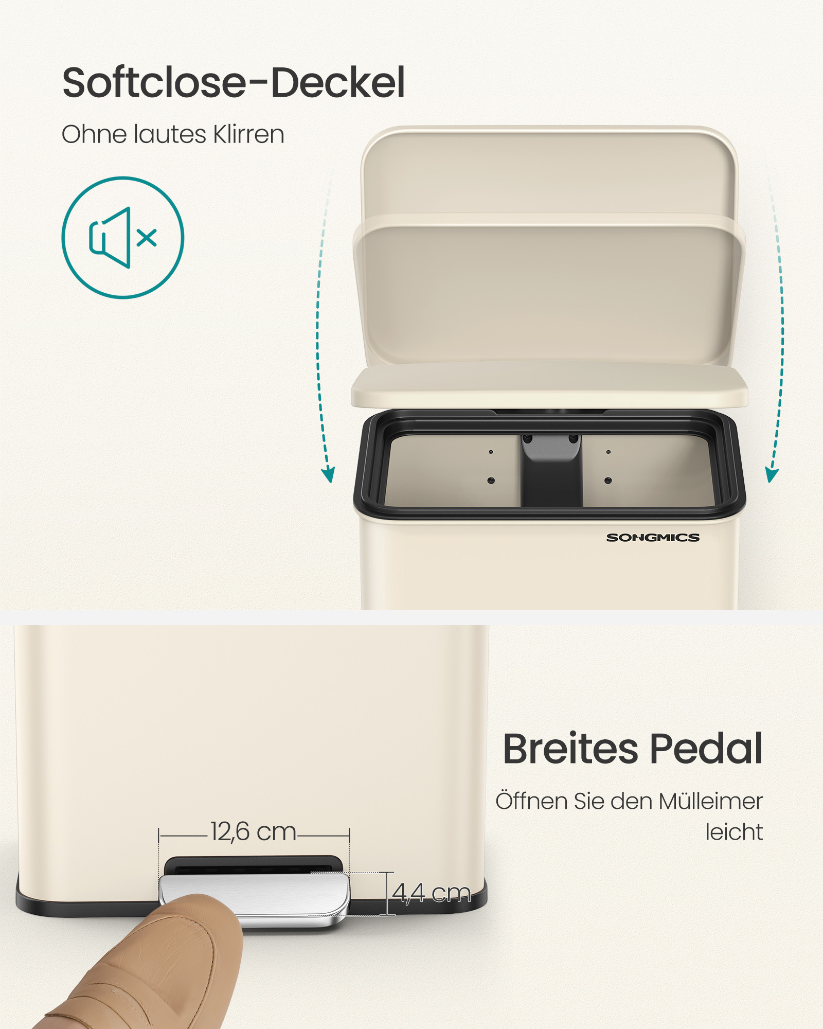SONGMICS skraldespand til k?kkenet, 40 liters affaldsspand, stor skraldespand med fodpedal, med l?g, af st?l, soft-close, inklusive 15 affaldsposer
