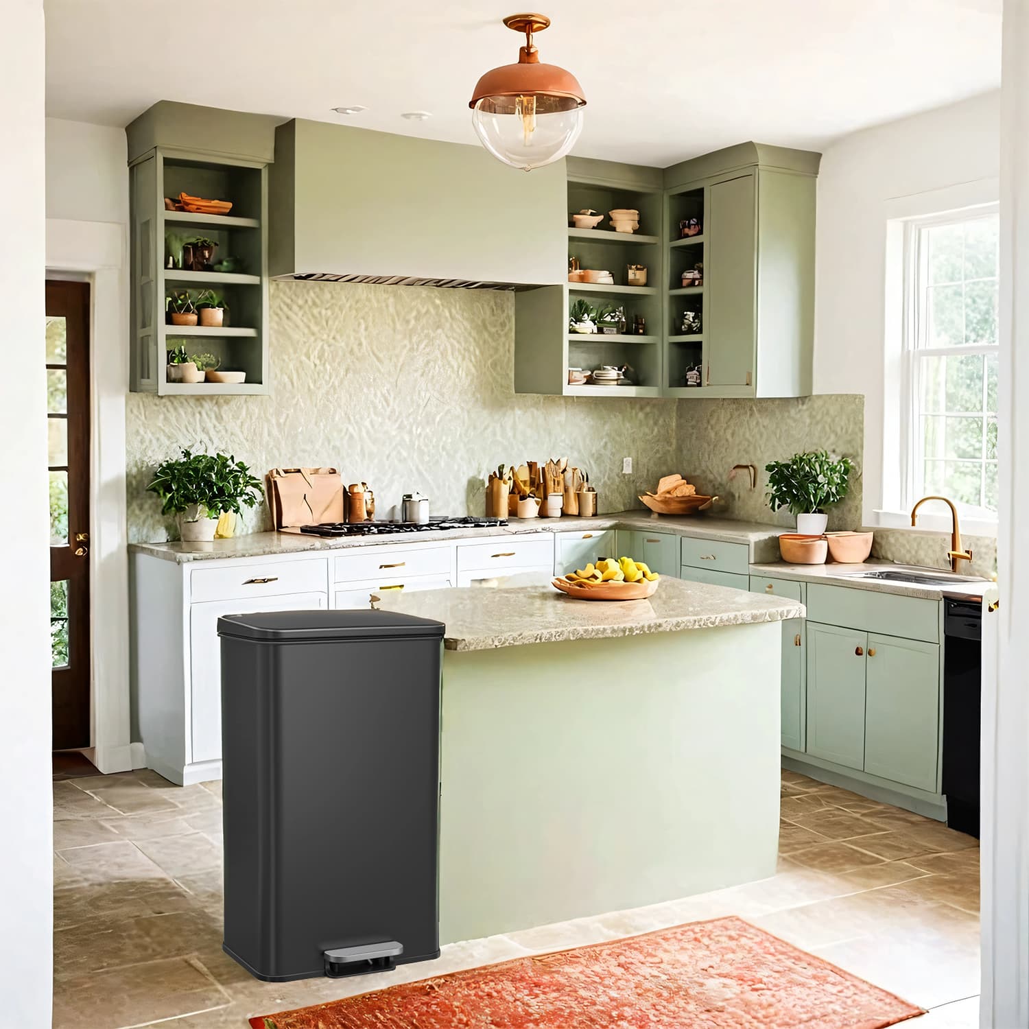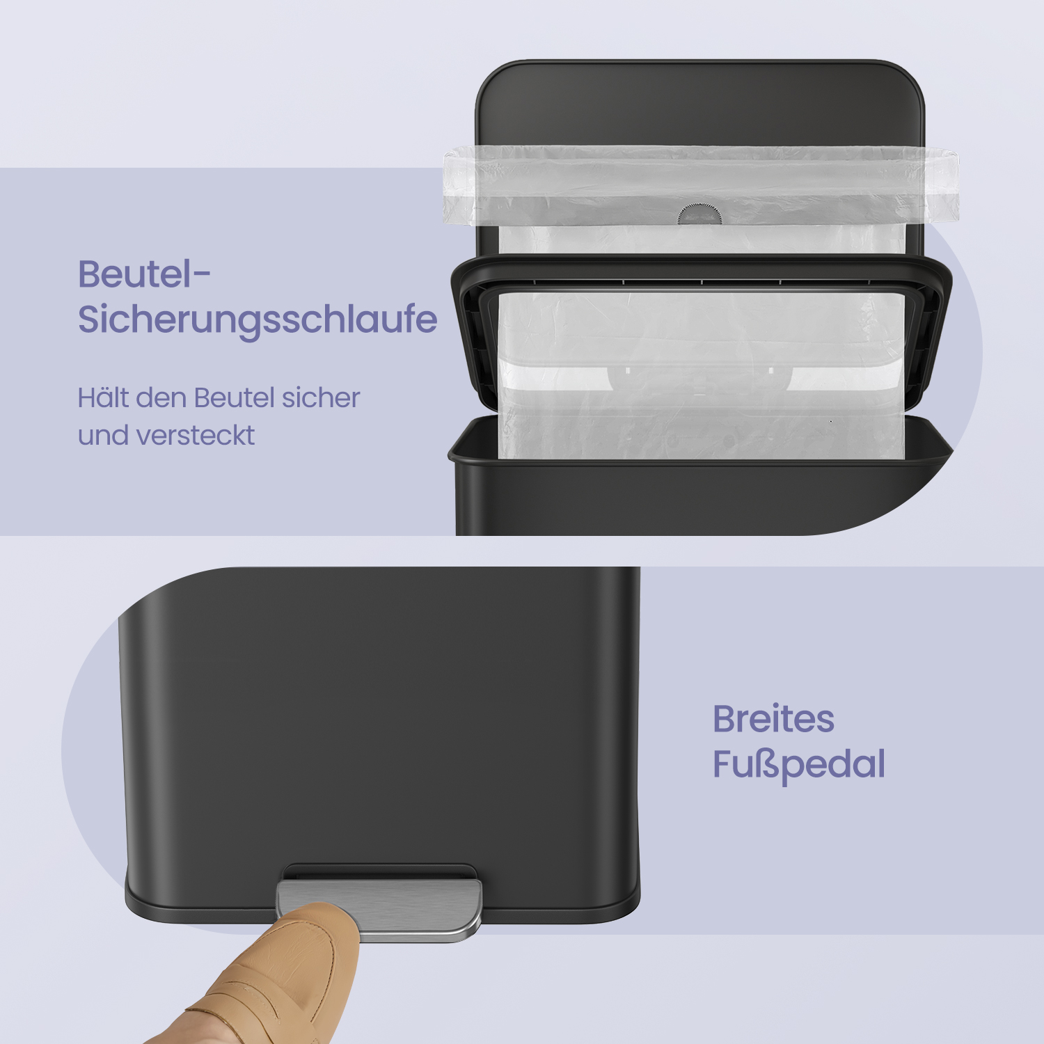 SONGMICS skraldespand til k?kkenet, 40 liter affaldsspand, stor skraldespand med fodpedal, med l?g, af st?l, soft-close, inklusive 15 affaldsposer