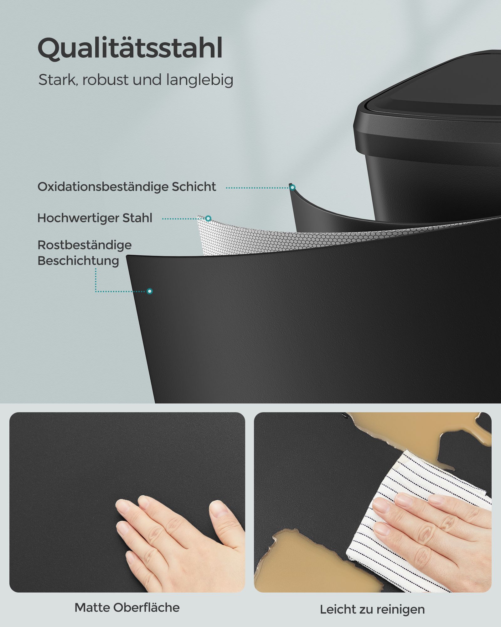 SONGMICS skraldespand til k?kkenet, 50 liters affaldsspand, metalskraldespand med fodpedal, med l?g, h?j, smal og rummelig, sort LTB530B5002