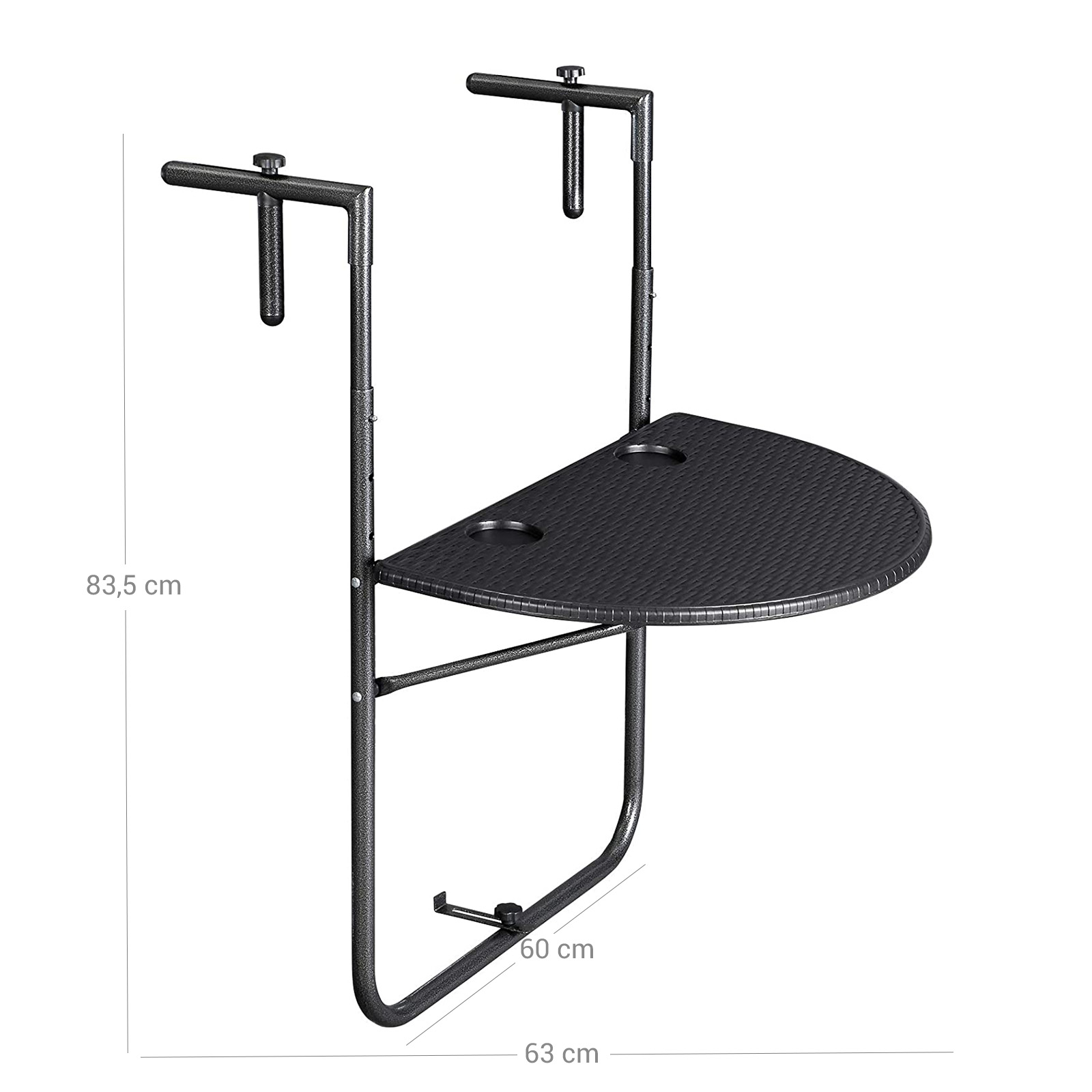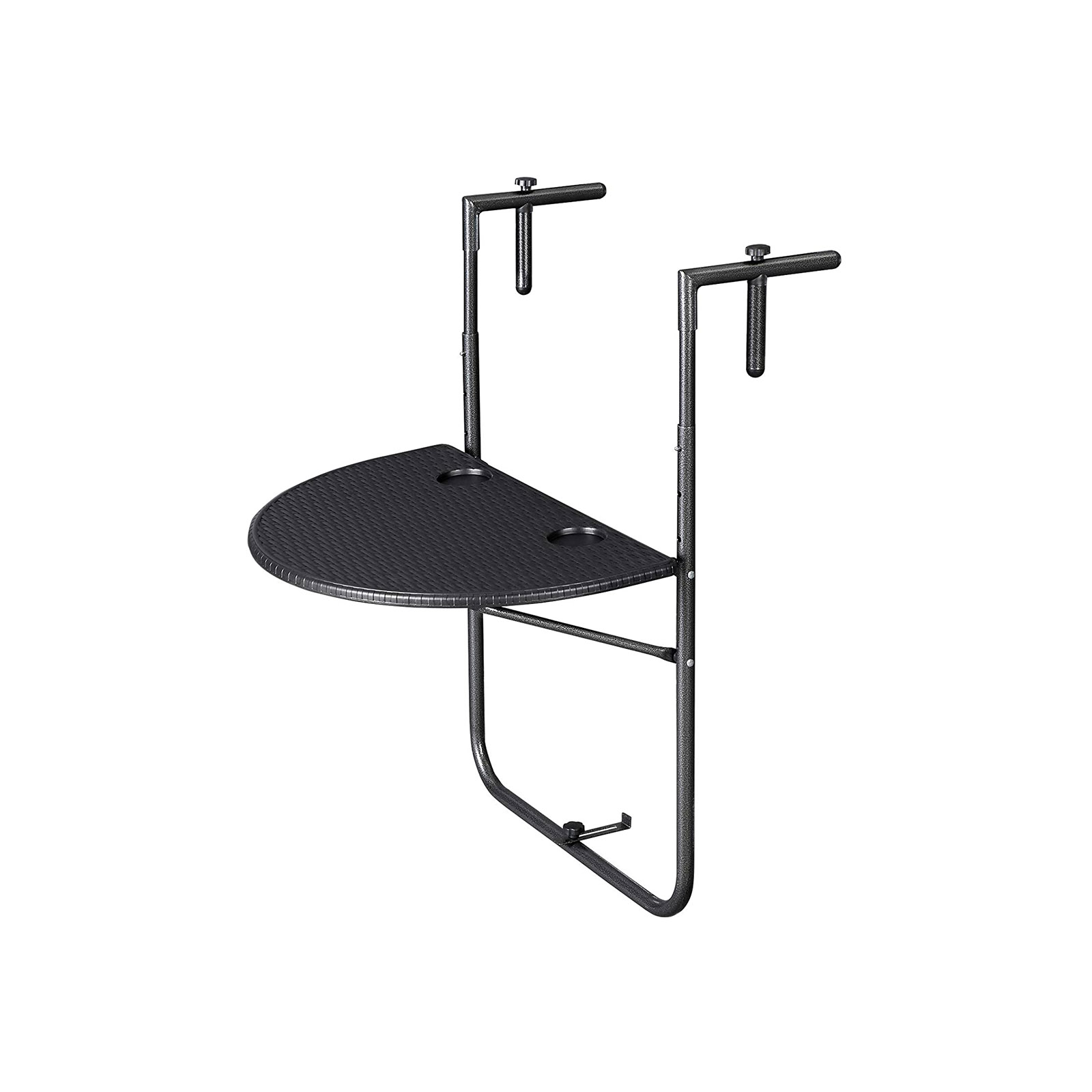 SONGMICS altanbord, altanbord til oph?ngning, klapbord, 3-trins h?jdejusterbart, sammenklappeligt, udend?rs, altan, terrasse, polyrattan, sort GPT07BK