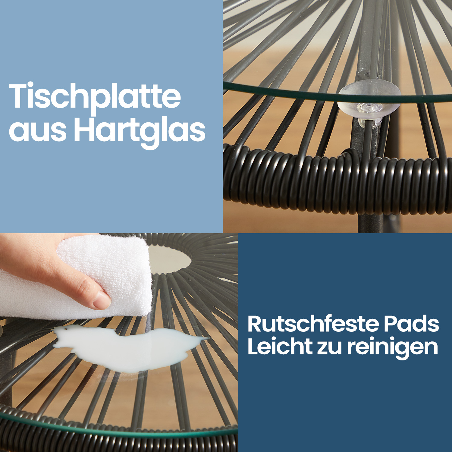 Et roligt tilflugtssted: Slap af ved poolen om sommeren og slut dagen af p? vores ultrakomfortable Acapulco-stole. Det ergonomiske design giver en behagelig siddekomfort, s? du kan l?ne dig tilbage og nyde et k?ligt glas vin i afslappede omgivelser. Du kan stille glasset p? sidebordet. Skaber ferieatmosf?re i ethvert rum: Den moderne ?stetik skaber en mexicansk ferieatmosf?re p? altaner, terrasser og i g?rdhave. Slap af p? dette Acapulco-stoles?t udend?rs og nyd den friske brise, eller brug det indend?rs? Det er selvf?lgelig ogs? fint! Denne siddegruppe forvandler et lille rum til et behageligt opholdssted p? et ?jeblik. Produktdetaljer:Farve: Sort Materiale: Pulverlakeret st?l, PE (polyethylen), h?rdet glas Bordst?rrelse: 50,5 x 52 cm (? x H) St?rrelse pr. stol: 64 x 65 x 77 cm (L x B x H) Bordv?gt: 4,2 kg V?gt pr. stol: 4,4 kg Maks. statisk belastning pr. stol: 130 kg Maks. statisk belastning af bordpladen: 60 kg Leveringsomfang: 2 x stol 1 x bord 1 x tilbeh?rspakke 1 x vejledning SONGICs bem?rkninger: Vi anbefaler, at du d?kker dette m?bels?t til i d?rligt vejr eller om vinteren. Det ?ger levetiden. For at sikre sikker brug m? den maksimale belastning ikke overskrides.