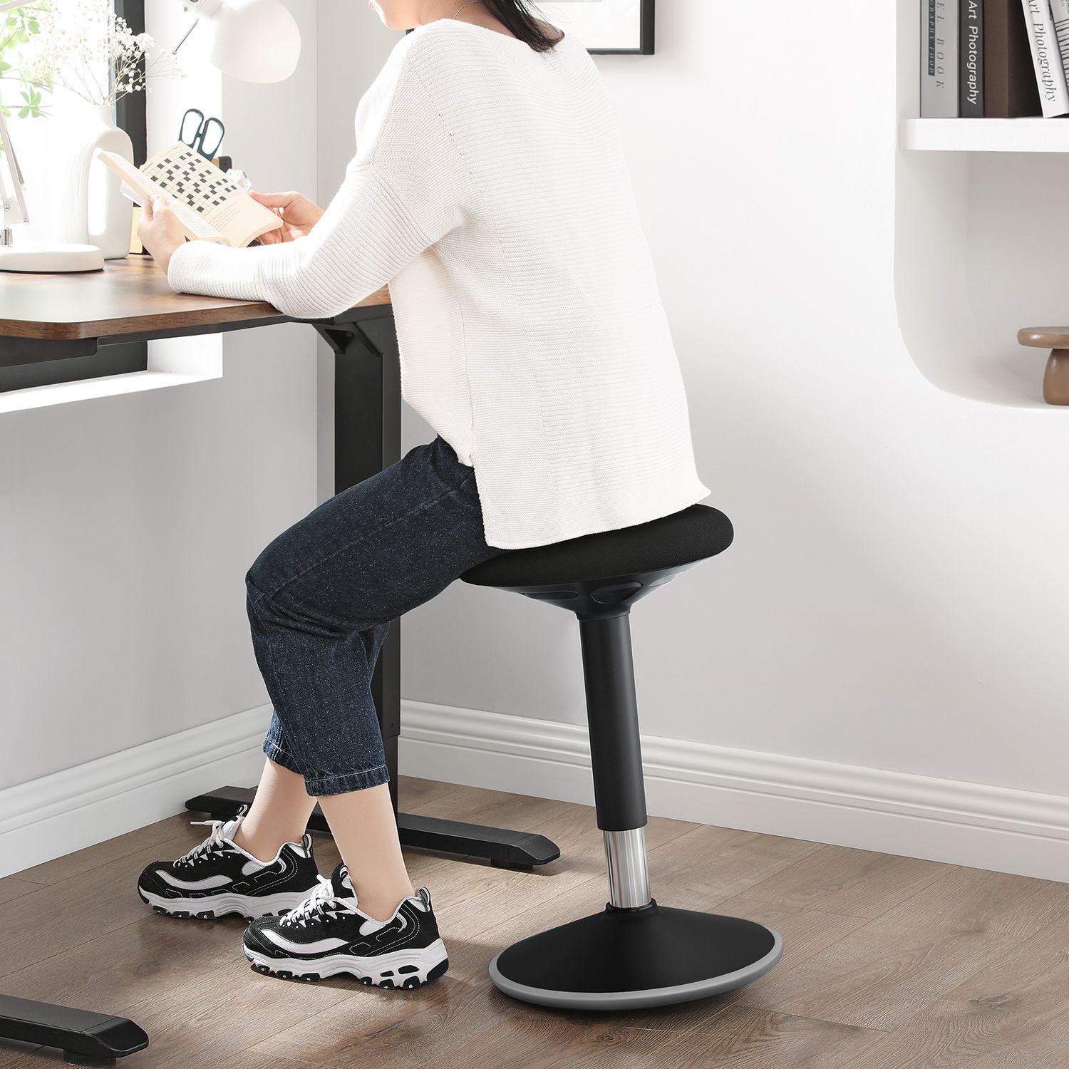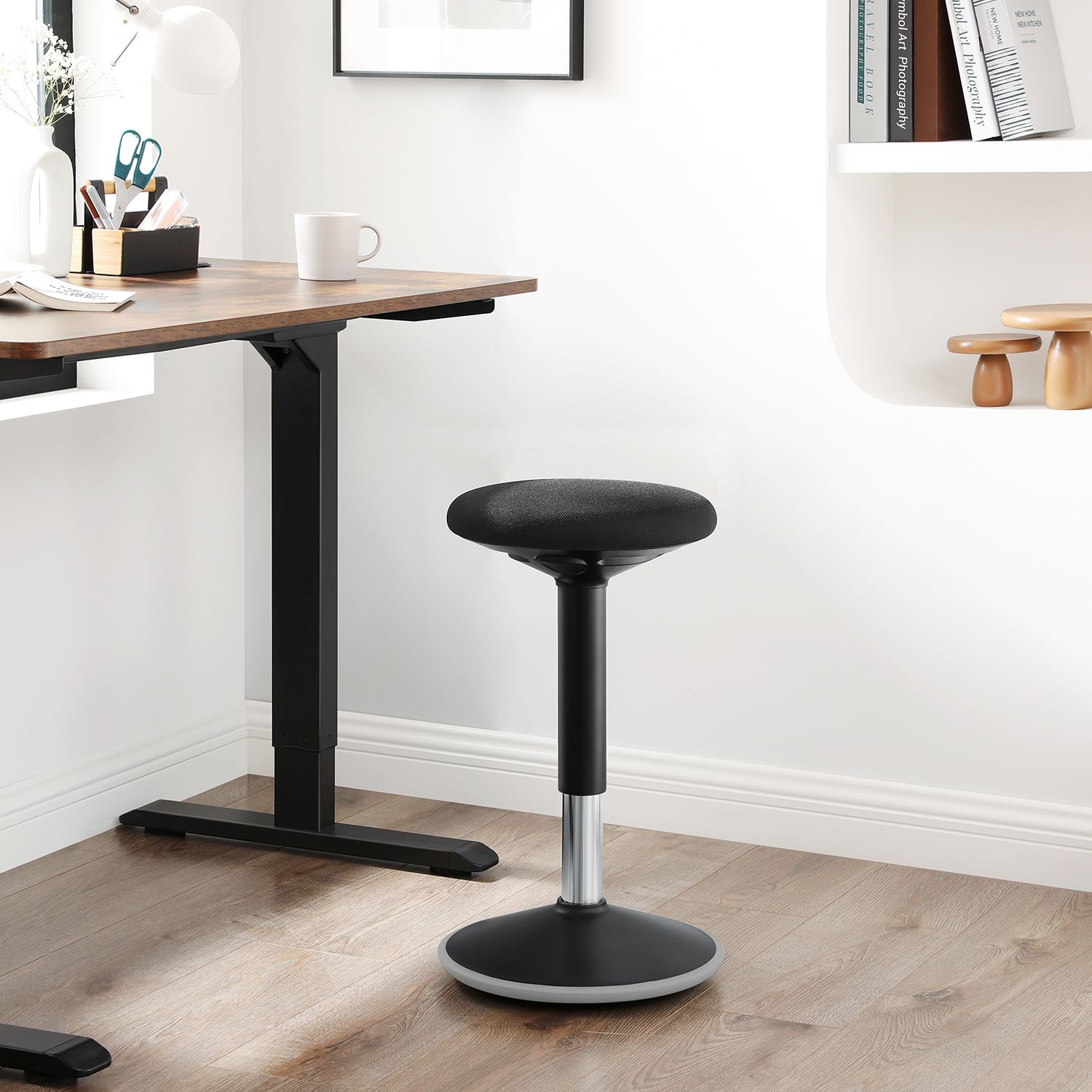 Omhyggelig forarbejdning: Denne kontorhocker er fremstillet af slidst?rkt stof, har en h?jbelastbar auto-return-cylinder og en robust fod og har derfor en lang levetid, der vil holde i mange ?r. Den kan desuden b?re op til 110 kg. Sidde, balancere og bev?ge sig: Sikkerhed kommer altid i f?rste r?kke. Derfor tilbyder vi denne skammel med skridsikker pude. Dette sikrer en sikker brug. Dit gulv beskyttes desuden mod ridser. F? denne skammel hjem: Takket v?re sit ergonomiske design er denne arbejdsskammel et praktisk supplement til dit kontor eller arbejdsv?relse. S?det er polstret med 7 cm tykt skum og betrukket med ?ndbart stof ? udstyr dit arbejdsv?relse med en komfortabel skammel! Produktdetaljer: Farve: Sort Materiale: Polyester, skum, st?l, plast, TPR (termoplastisk gummi) S?deh?jde: 50-65 cm St?rrelse p? s?de: ? 33 cm St?rrelse p? fod: ? 36 cmV?gt: 5,9 kgMaks. statisk belastning: 110 kgLeveringsomfang:1 x s?de1 x bekl?dning til gasd?mpningscylinder1 x fod1 x gasd?mpningscylinderSONGMICS Bem?rkninger:Brug ikke produktet p? uj?vnt eller glat underlag! L?ft ikke begge f?dder fra gulvet, n?r du sidder p? skamlen! Vip ikke skamlen for meget. S?t dig ikke p? kanten af skamlen. B?rn m? kun bruge produktet under opsyn af en voksen. Gravide b?r v?re meget forsigtige, hvis de ?nsker at bruge produktet.