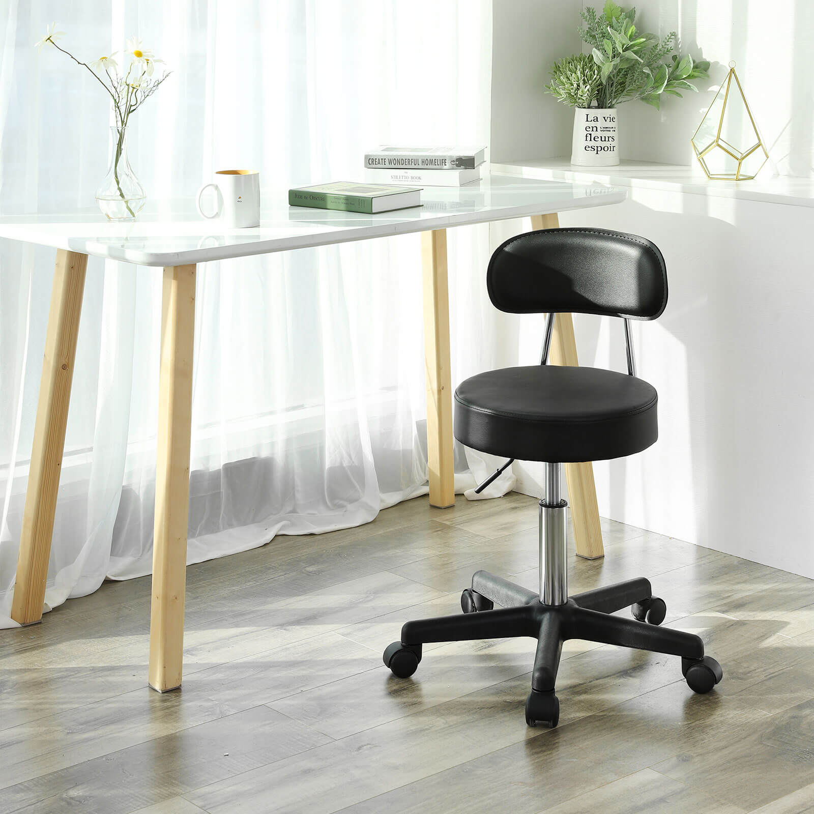 SONGMICS arbejdsskammel til effektivt arbejde. Denne arbejdsskammel letter arbejdsprocesserne og giver mulighed for at skifte mellem forskellige siddestillinger, der kan tilpasses individuelle behov. Takket v?re trinl?s justerbar s?deh?jde, d?mpning med gasfjeder og behageligt rygl?n er komfortabel og afslappet siddestilling garanteret. Disse rulleh?je er perfekte, is?r i servicebrancher som fris?rer eller i produktionen p? samleb?nd, hvor hver eneste h?ndtering skal sidde rigtigt. Produktdetaljer: – Farve: sort – Materiale: PU, nylon – H?jde p? s?de: 46-62 cm – S?detykkelse: 8 cm – ? s?de: 35 cm – ? fodkryds: 50 cm – Belastbarhed: 100 kg – Nettov?gt: 4,8 kg – Bruttov?gt: 6 kg Leveringsomfang: – 1 x arbejdsskammel – 1 x vejledning (DE, EN, FR, ES, IT) – 1 x beslagspose SONGMICS Bem?rkninger: – S?t dig ikke p? s?det. – L?n dig ikke for langt tilbage. – Bev?g eller drej ikke for hurtigt p? rullerne. – Du kan bruge en fugtig klud til vedligeholdelse. PU-overfladen skal beskyttes mod kemikalier.