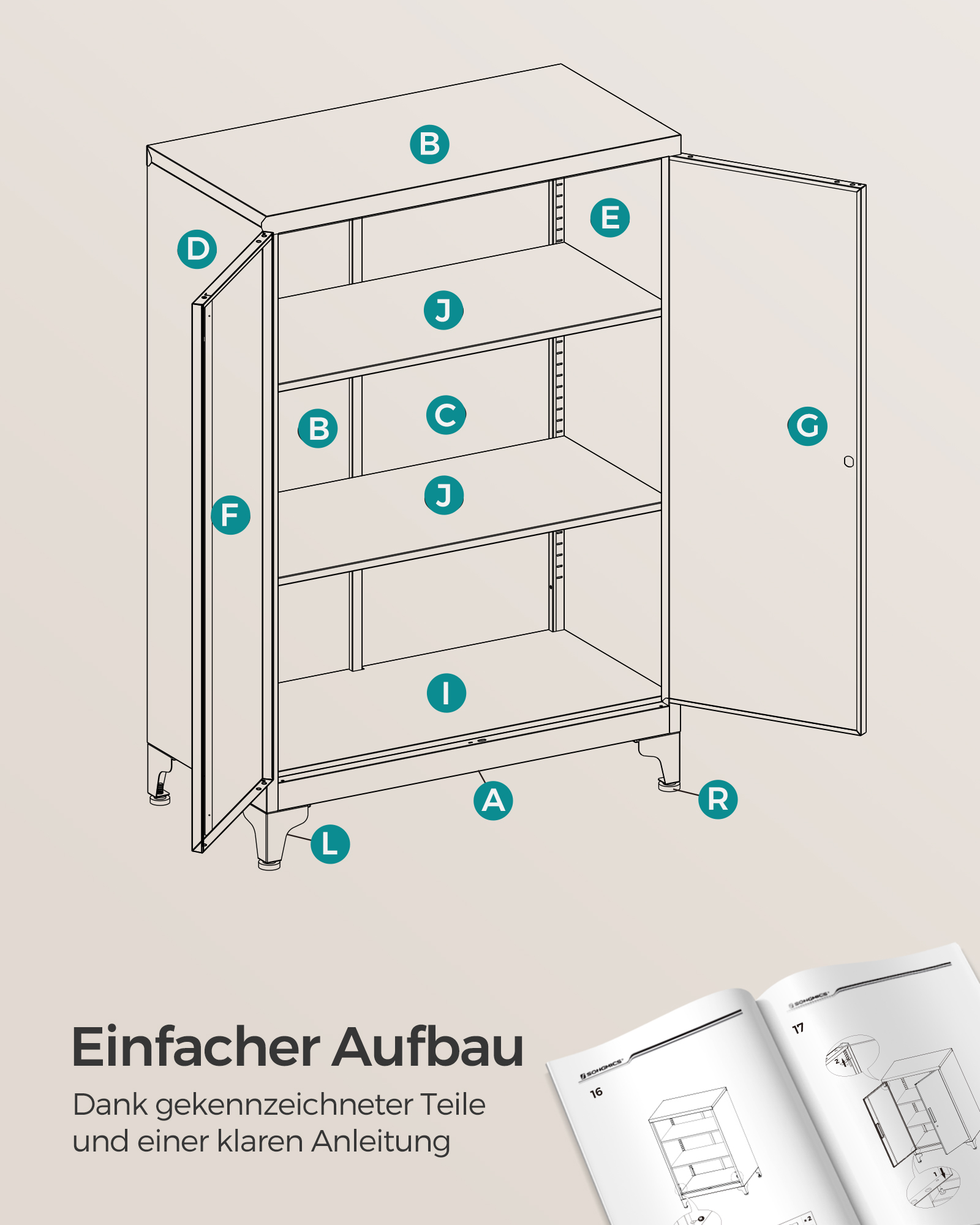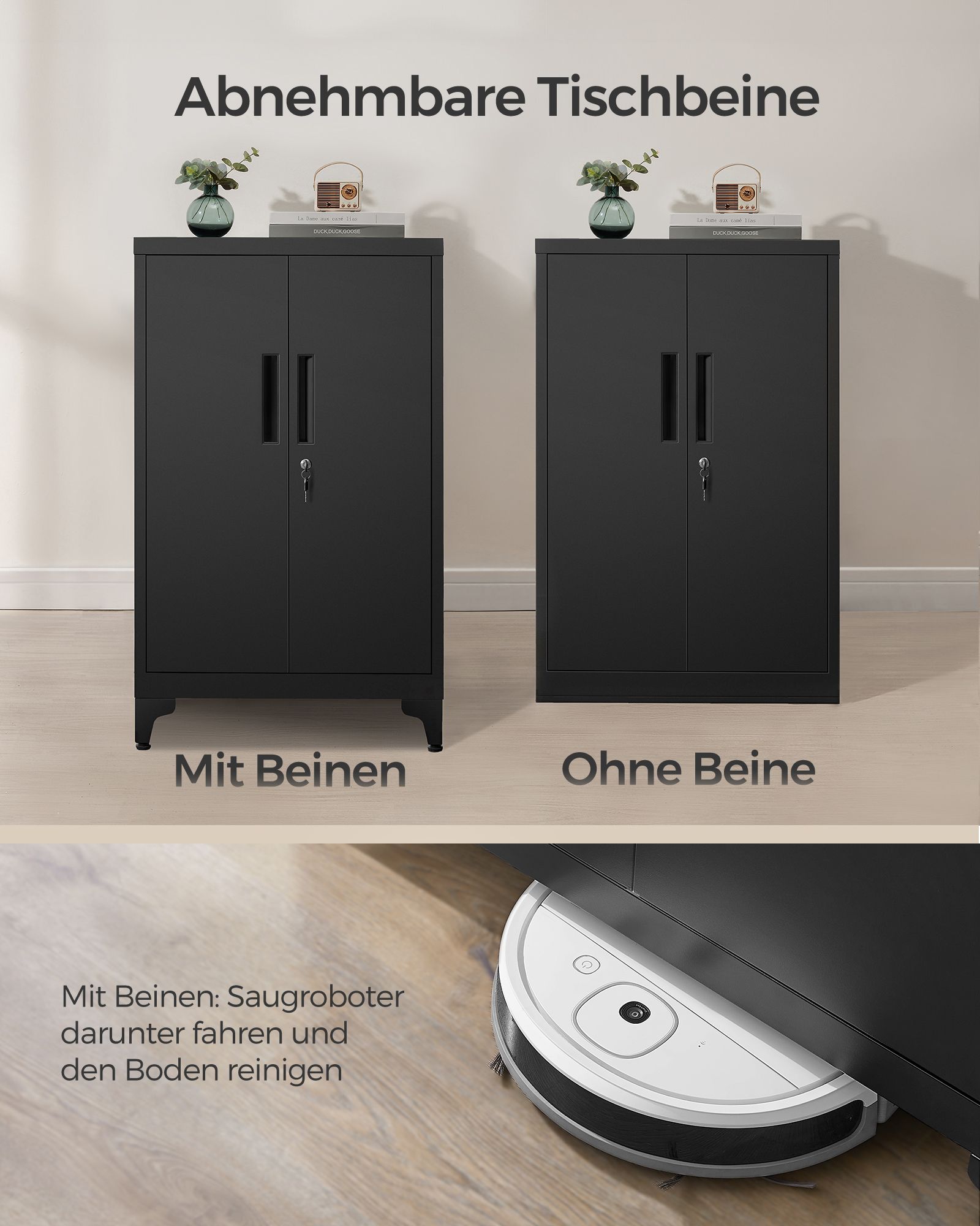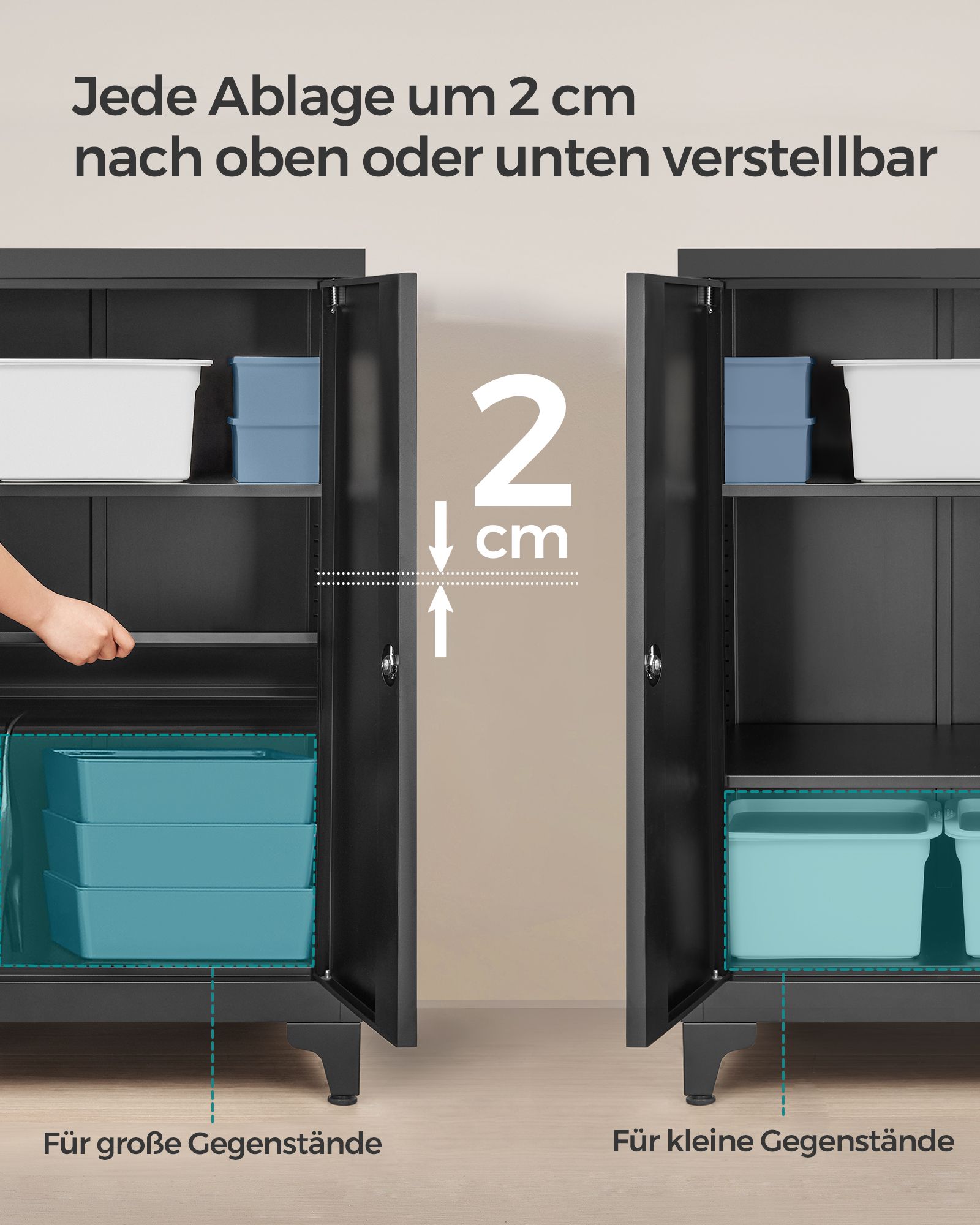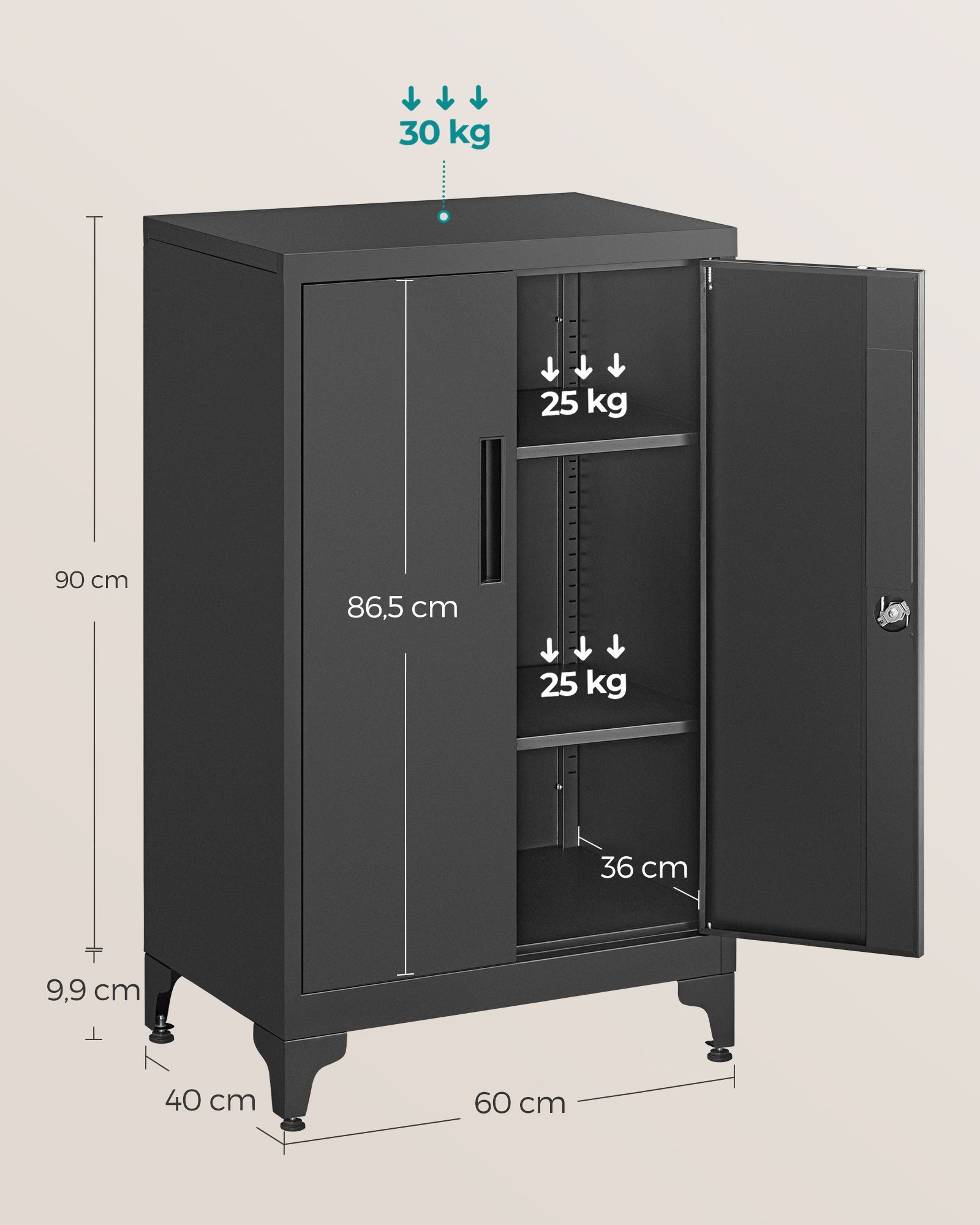 SONGMICS arkivskab, multifunktionsskab, kontorskab med 2 d?re, afl?seligt skab, opbevaringsskab i st?l, til arbejdsv?relse, stue, sort OMC013B01