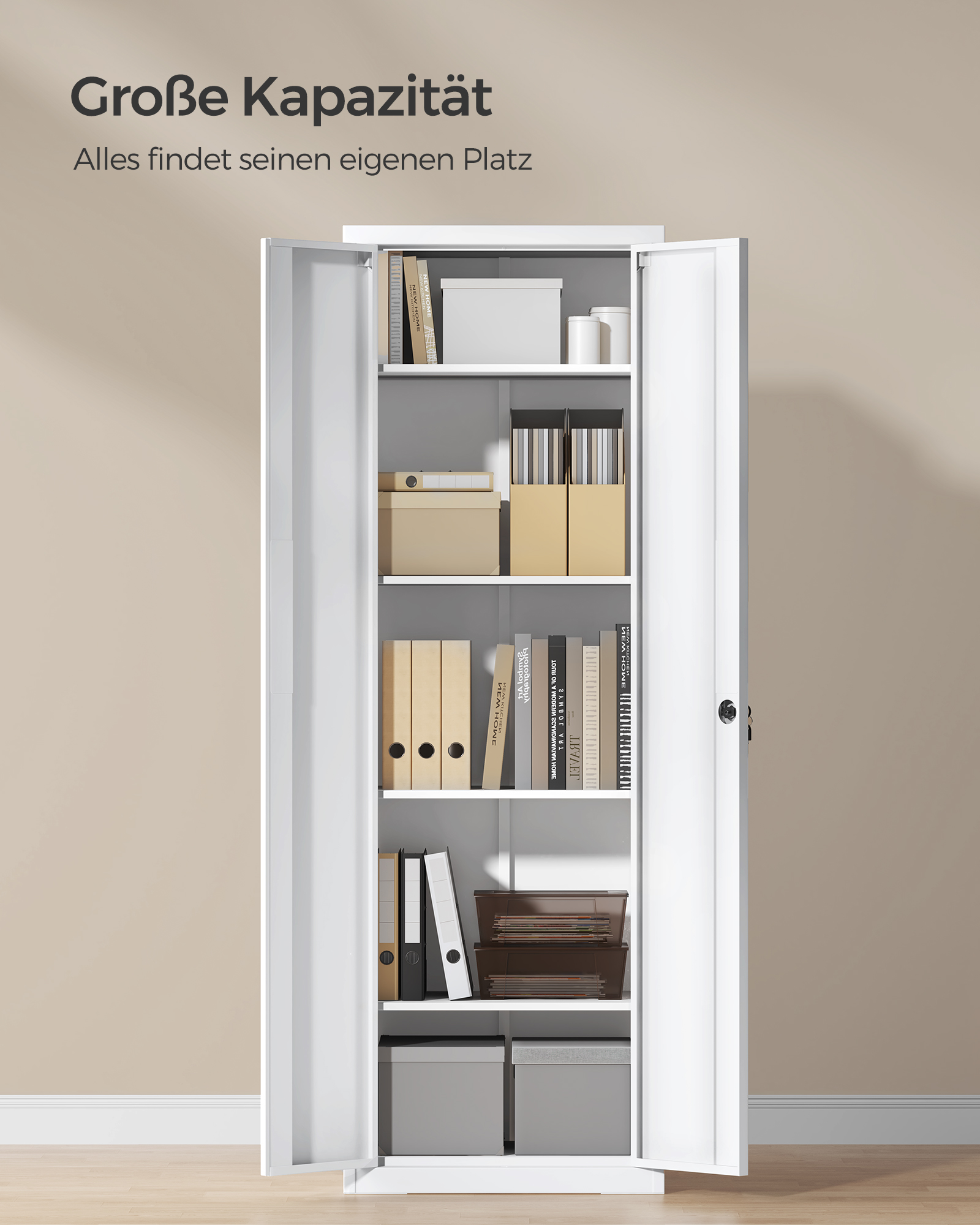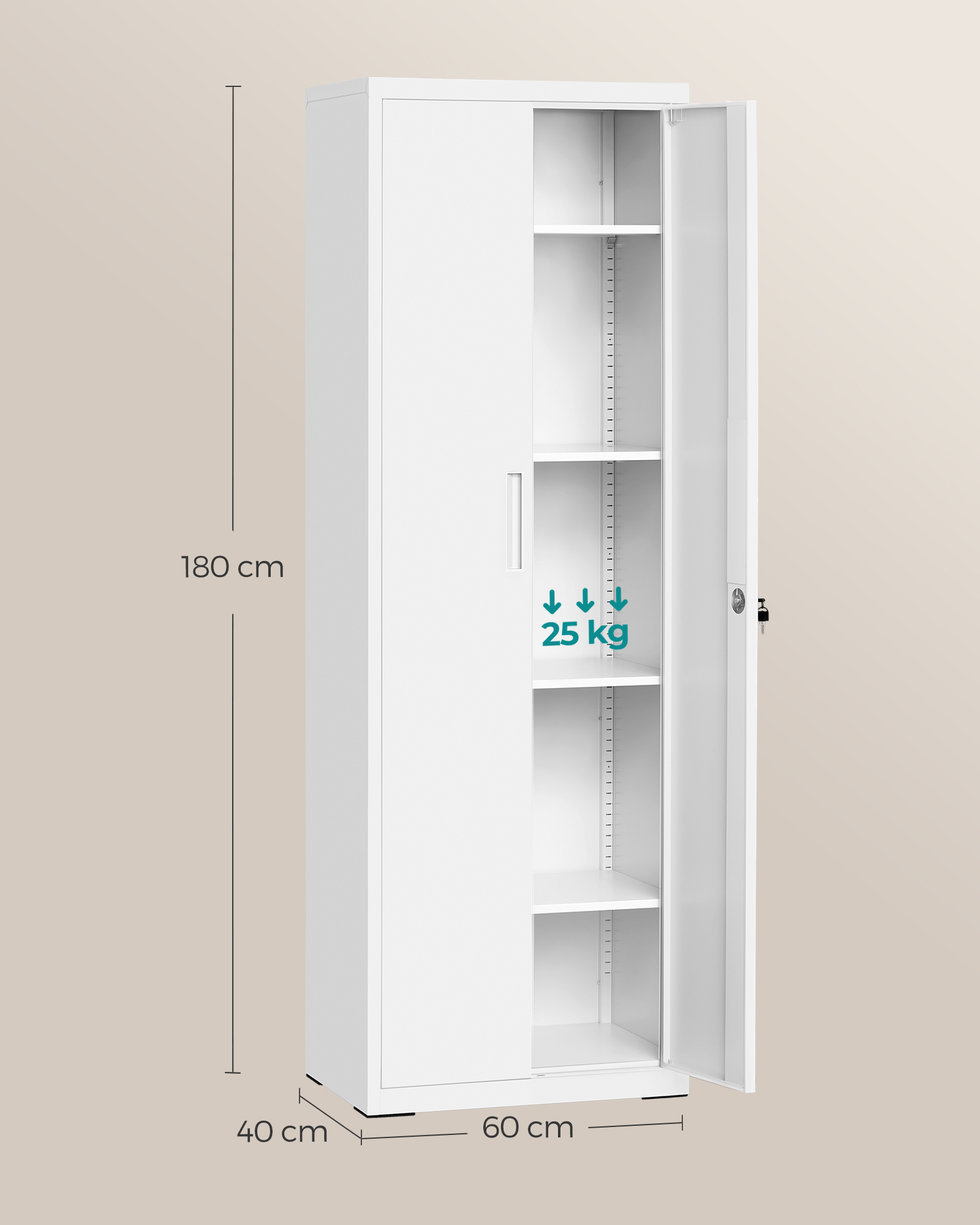 SONGMICS arkivskab, kontorskab med 2 d?re, opbevaringsskab i st?l, 5 hylder, til garage, arbejdsv?relse, gr? OMC015G01