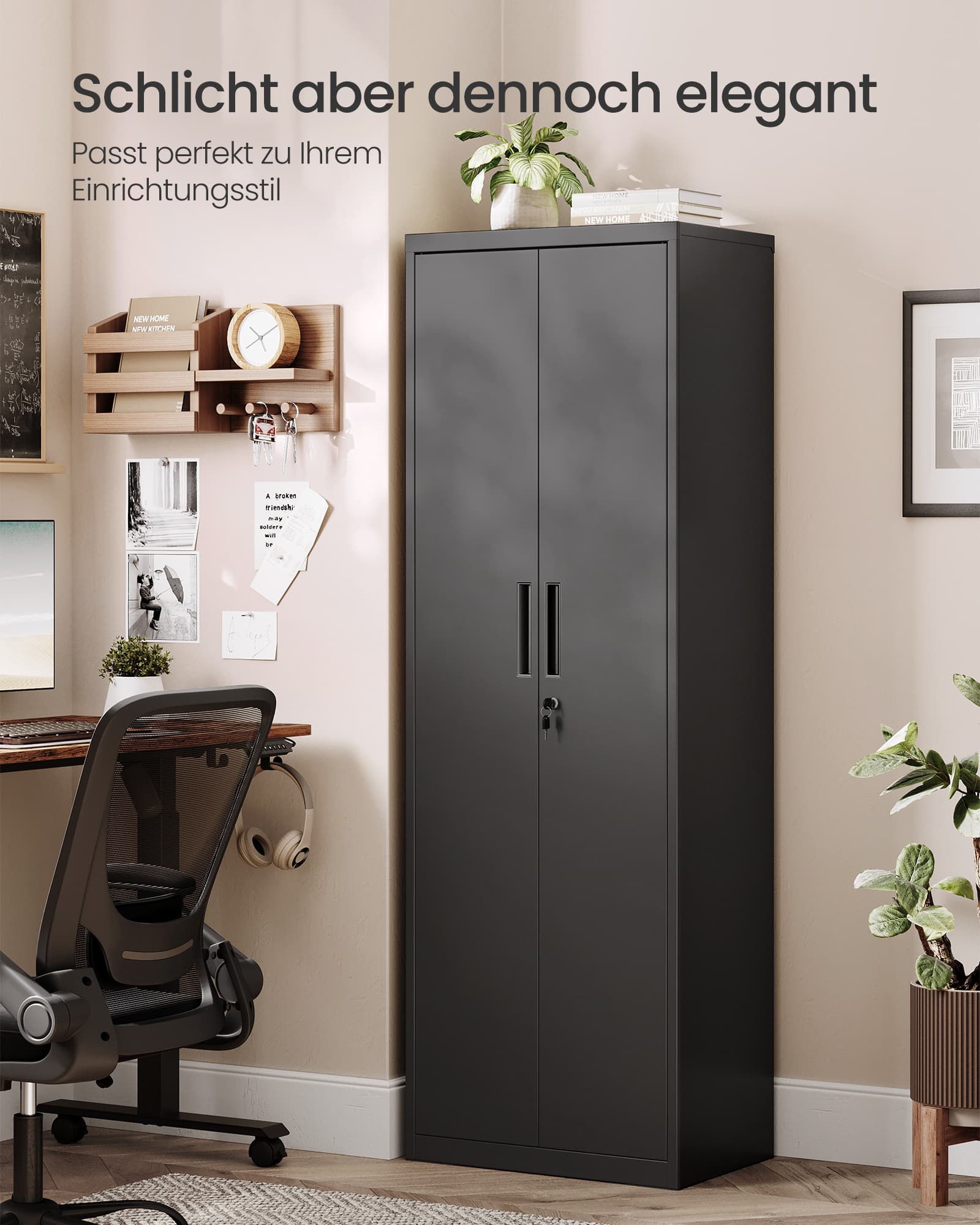 SONGMICS arkivskab, kontorskab med 2 d?re, opbevaringsskab i st?l, 5 hylder, til garage, arbejdsv?relse, gr? OMC015G01