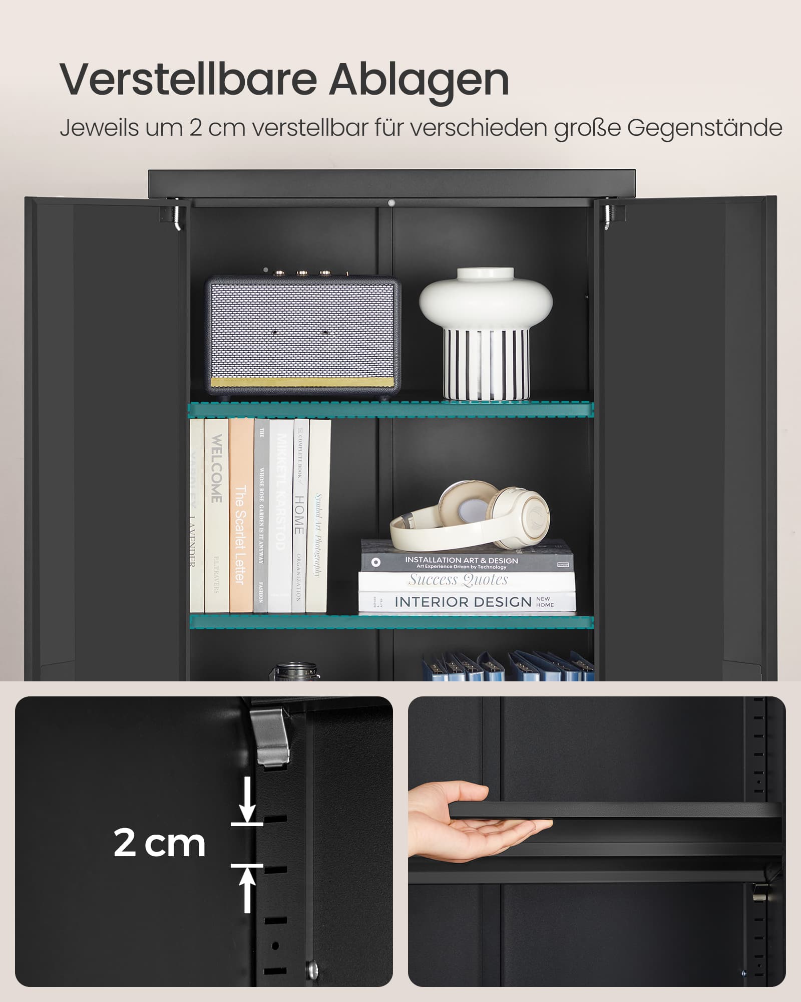 Yderligere specifikationer ?[INF] Justerbare hylder, dobbeltd?re, metalramme, h?j v?gtkapacitet
