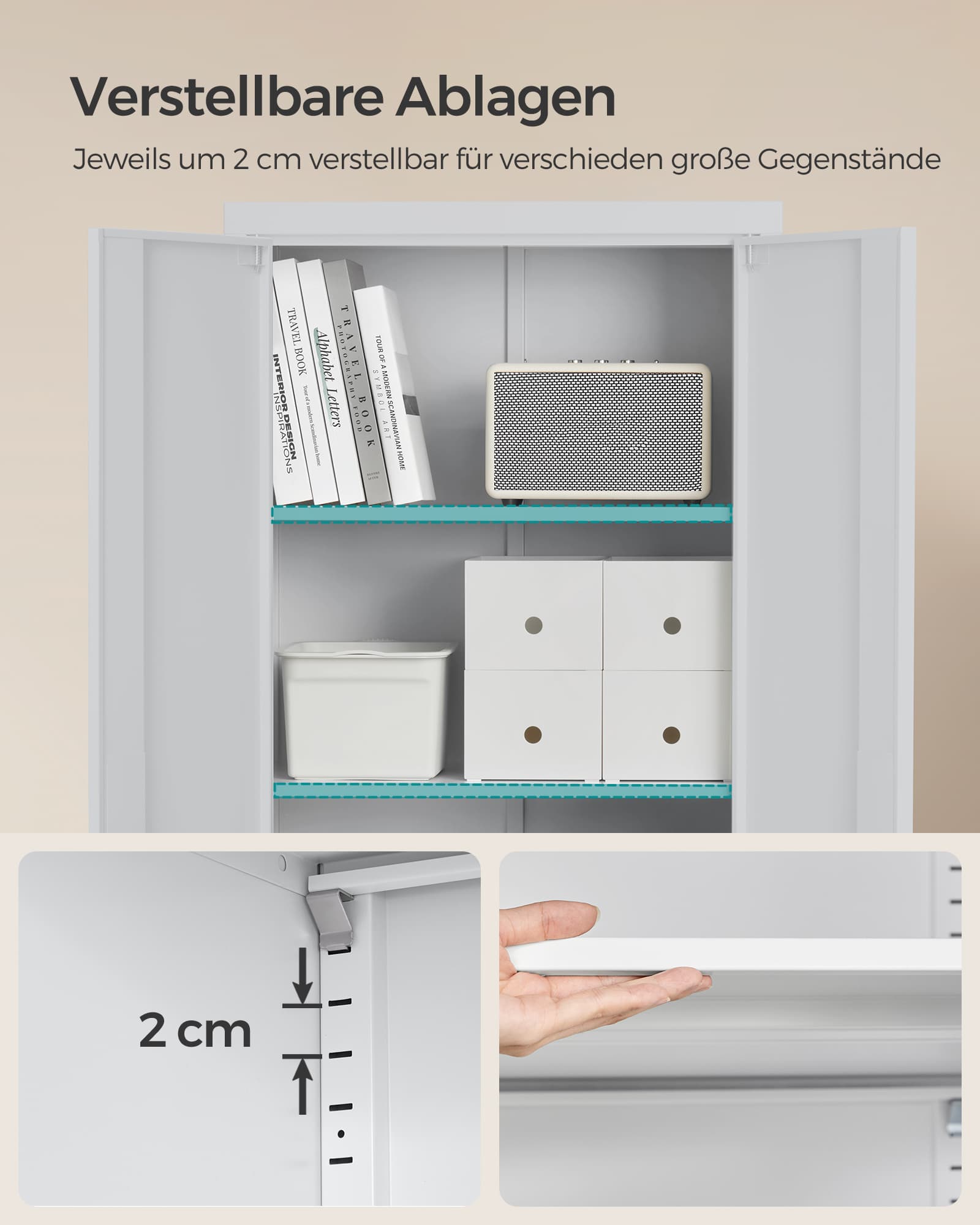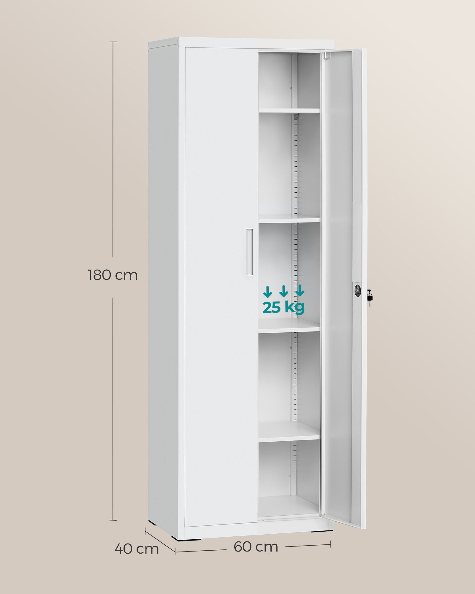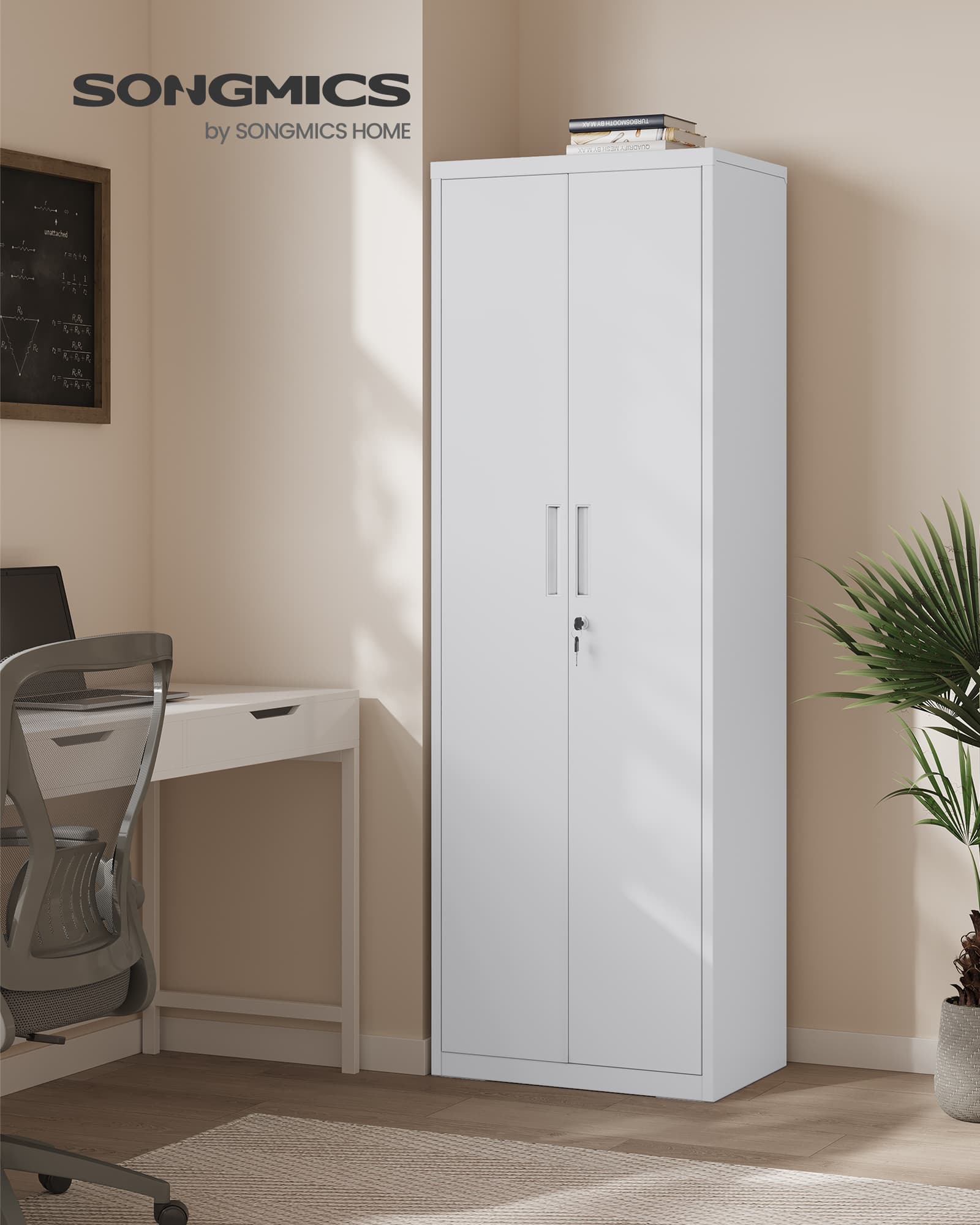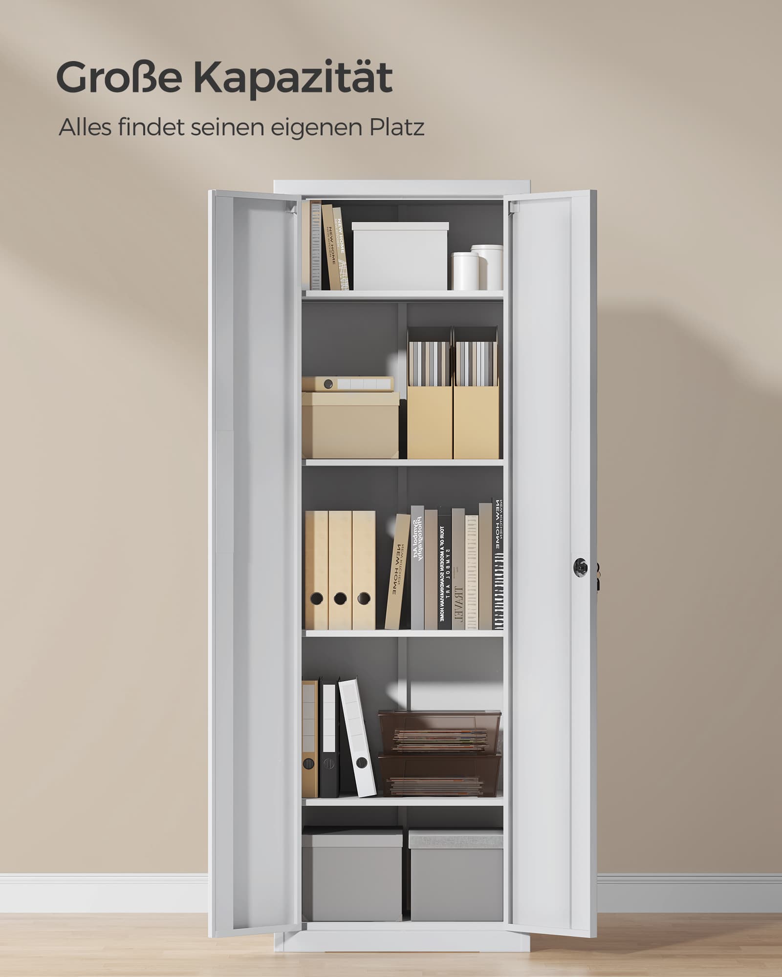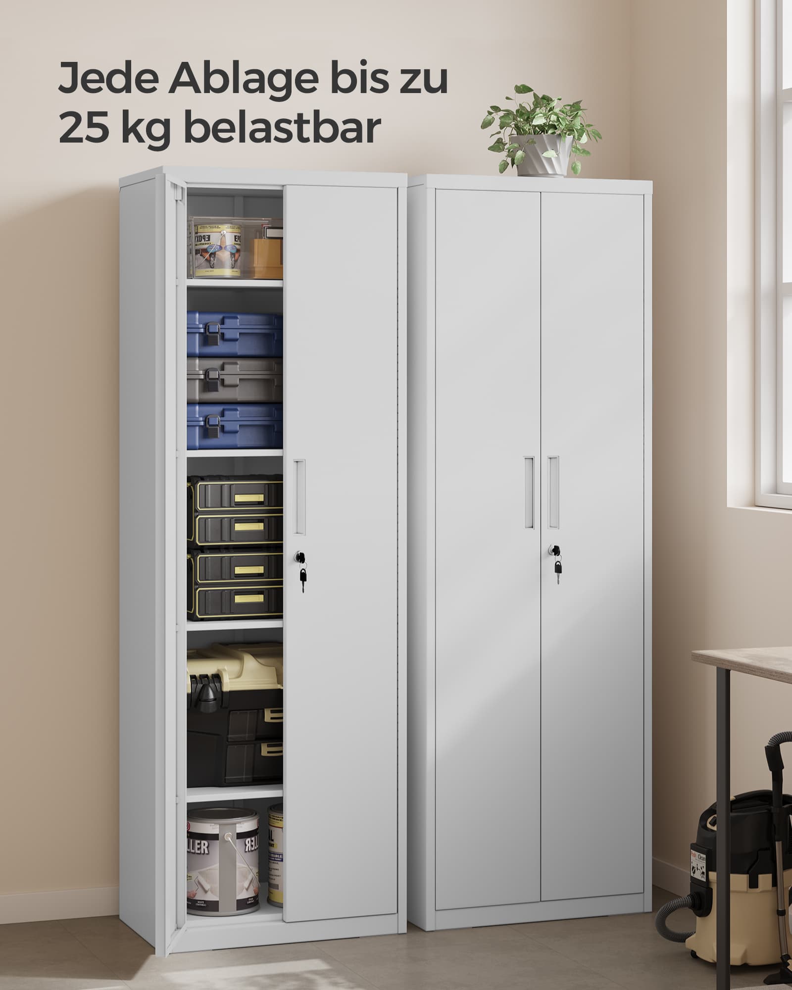 SONGMICS arkivskab, kontorskab med 2 d?re, opbevaringsskab i st?l, 5 hylder, til garage, arbejdsv?relse, gr? OMC015G01