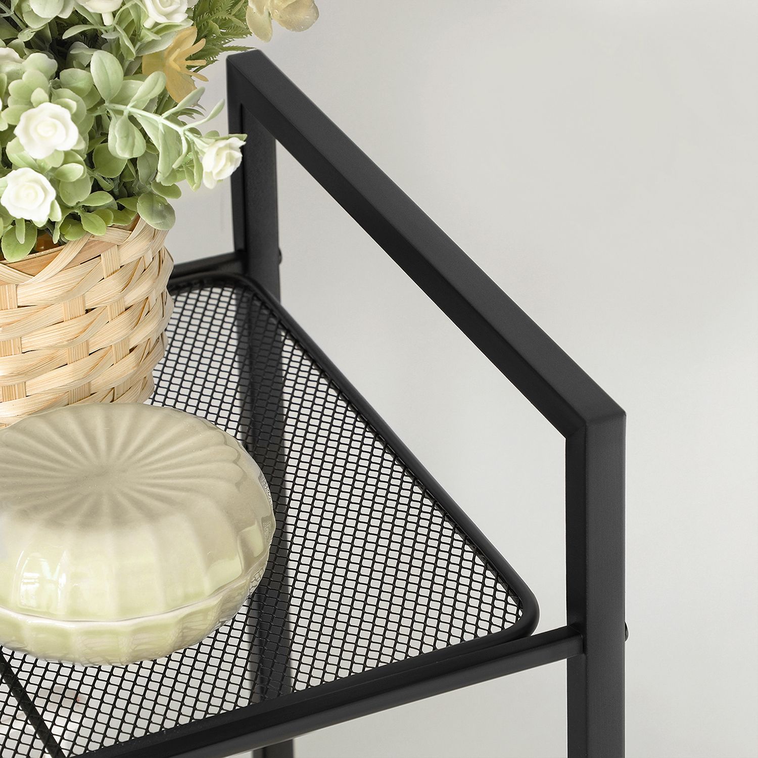 Oversigt over h?jdepunkterne ved dette badev?relsesreol: – Takket v?re de h?jdejusterbare hylder kan du opbevare genstande i forskellige st?rrelser p? dette reol. – Du kan kombinere flere af disse reoler for at skabe mere opbevaringsplads. – Dette kompakte k?kkenreol optager kun lidt gulvplads. – Hver hylde p? dette plantehylde kan b?re en v?gt p? op til 10 kg.- De t?tmaskede gitterhylder giver badev?relsesreolen god stabilitet og b?reevne. – De justerbare f?dder udligner sm? uj?vnheder i gulvet. – Den enkle, forst?elige vejledning og de tydeligt m?rkede dele g?r det nemt at samle denne stativreol. – Denne reol er b?de stilfuld og praktisk og passer ind i forskellige rum. Produktdetaljer:- Farve: Sort – Materiale: St?l – St?rrelse: 38 x 30 x 96 cm (L x B x H) – V?gt: 2,7 kg – Maks. statisk belastning pr. hylde: 10 kg Leveringsomfang: – 1 x badev?relsesreol – 1 x tilbeh?rspakke – 1 x v?ltesikring – 1 x vejledning SONGMICS Bem?rkninger:- Ved montering af hver hylde skal de fire huller p? siderammen v?re i samme h?jde.