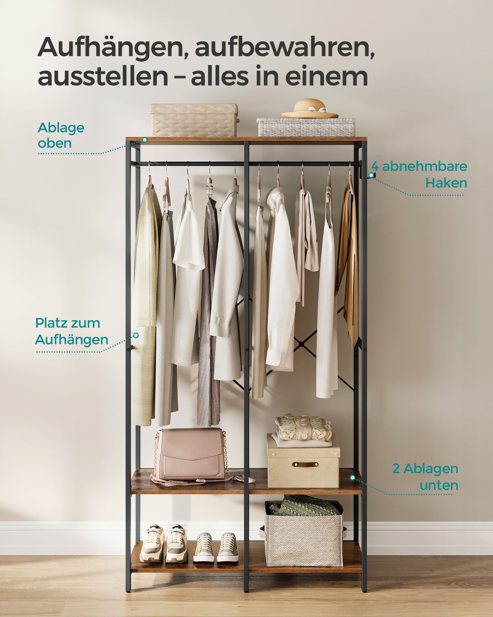 SONGMICS ?ben garderobe, t?jstativ, garderobestativ, garderobe med t?jstang, hylder, aftagelige kroge