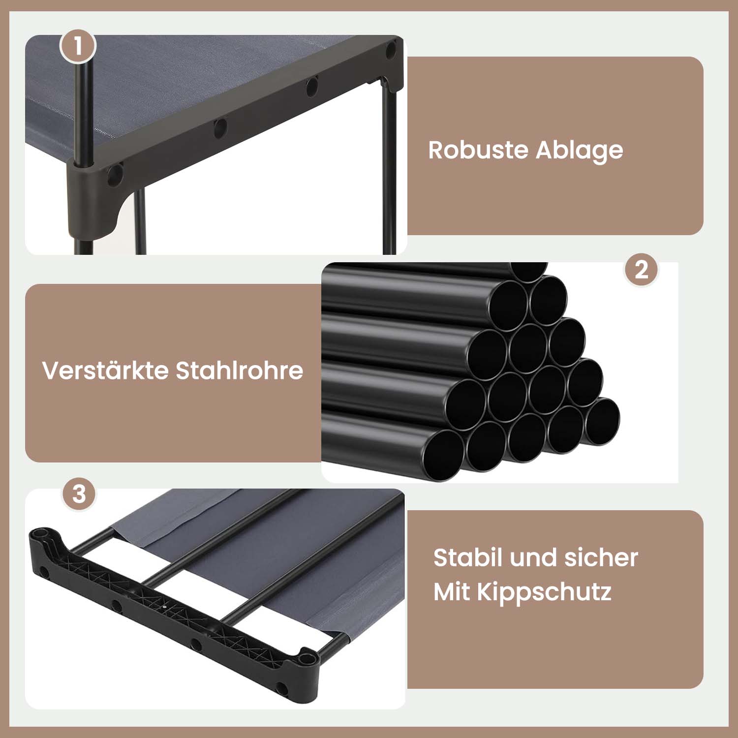 – Materiale: Vliesstof, metalr?r, plastforbindelsesstykker