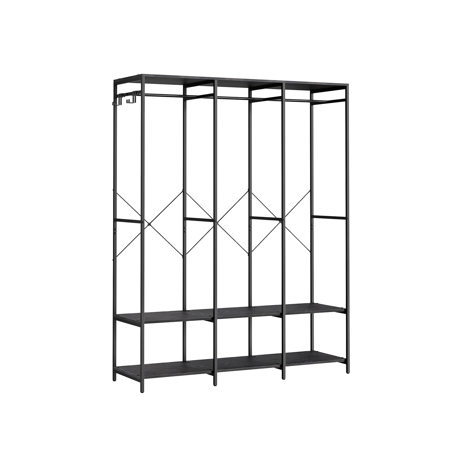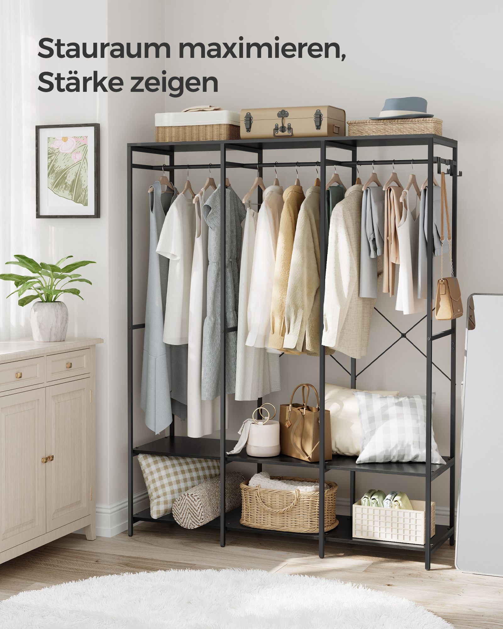 SONGMICS ?ben garderobe, t?jstativ, garderobestativ, garderobe med t?jstang, hylder, aftagelige kroge