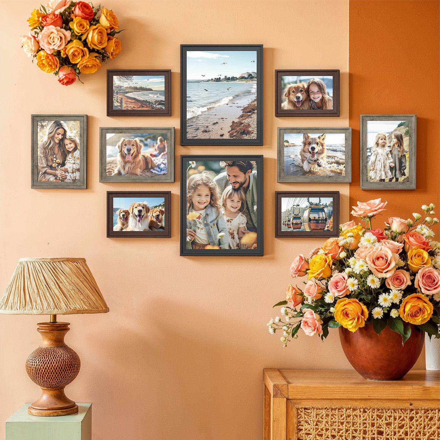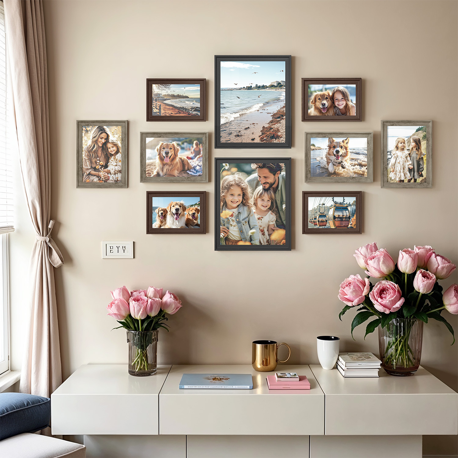 SONGMICS billedramme 16 passepartouts, s?t med 10 fotorammer, to 20 x 25 cm, fire 13 x 18 cm, fire 10 x 15 cm, til oph?ngning, til opstilling, MDF, glas, 12 sporl?se v?gkroge