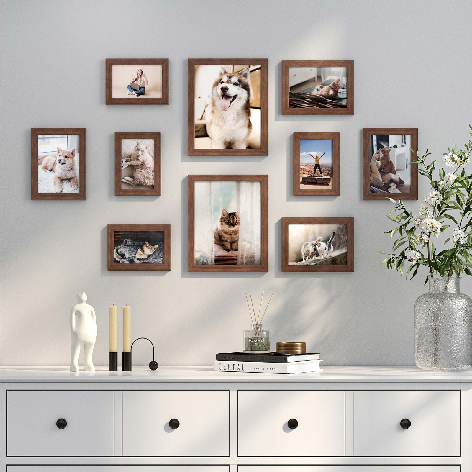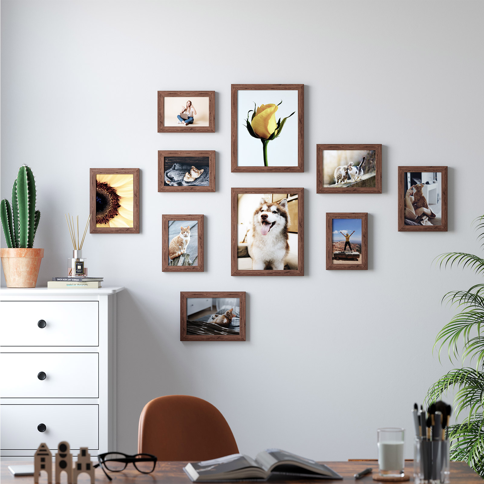 Vil du altid se dine b?rns s?de smil, dele dine lykkeligste ?jeblikke med andre eller udstille et kunstv?rk? Disse billedrammer fra SONGMICS beskytter dine selfies, kunstv?rker eller fotografier og fremh?ver dem p? en unik m?de. Individualitet og raffinement H?ng betagende landskaber eller udtryksfulde portr?tter p? dine v?gge og giv din bolig et individuelt pr?g. Den brune farve p? disse rammer tiltr?kker blikket som ved magi og leder det hen p? dine smukkeste fotos. H?jdepunkterne ved disse billedrammer: – Rammerne leveres f?rdigsamlede ingen montering n?dvendig – Egnet til to 20 x 25 cm, fire 13 x 18 cm og fire 10 x 15 cm store fotos – Kan h?nges op vandret eller lodret – Egnet til fotos i st?ende eller liggende format – Moderne rammer, der giver din bolig karakter – Glasplader uden skarpe kanter – En fantastisk gave til dine k?re Produktdetaljer: – Farve: Brun – Materiale: MDF (medium densitetsfiberplade), glas – St?rrelse:- 23,1 x 1,2 x 28,7 cm (L x B x H) – 16 x 1,2 x 21 cm (L x B x H) – 13,5 x 1,2 x 18,5 cm (L x B x H) – Passende fotost?rrelser: 20 x 25 cm, 13 x 18 cm, 10 x 15 cm- Faktisk synligt: 19,5 x 24,5 cm, 12 x 17 cm, 9,5 x 14,5 cm- Samlet v?gt: 2,9 kgLeveringsomfang:- 10 x billedrammerSONGMICS Bem?rkninger:- Alle kanter p? glasset er slebet for at sikre din sikkerhed, n?r du udskifter billederne. Alligevel b?r du holde b?rn v?k fra dette produkt. – S?rg for, at rammerne er fastgjort til v?ggen.
