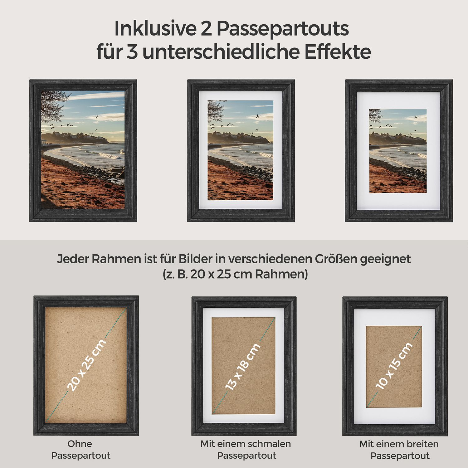SONGMICS billedramme 16 passepartouts, s?t med 10 fotorammer, to 20 x 25 cm, fire 13 x 18 cm, fire 10 x 15 cm, til oph?ngning, til opstilling, MDF, glas, 12 sporl?se v?gkroge