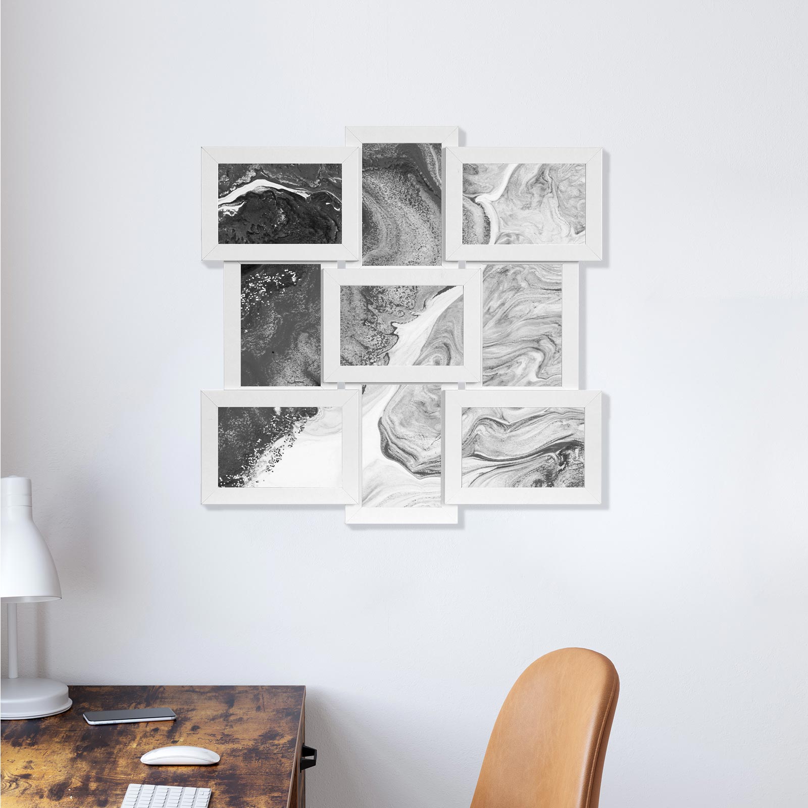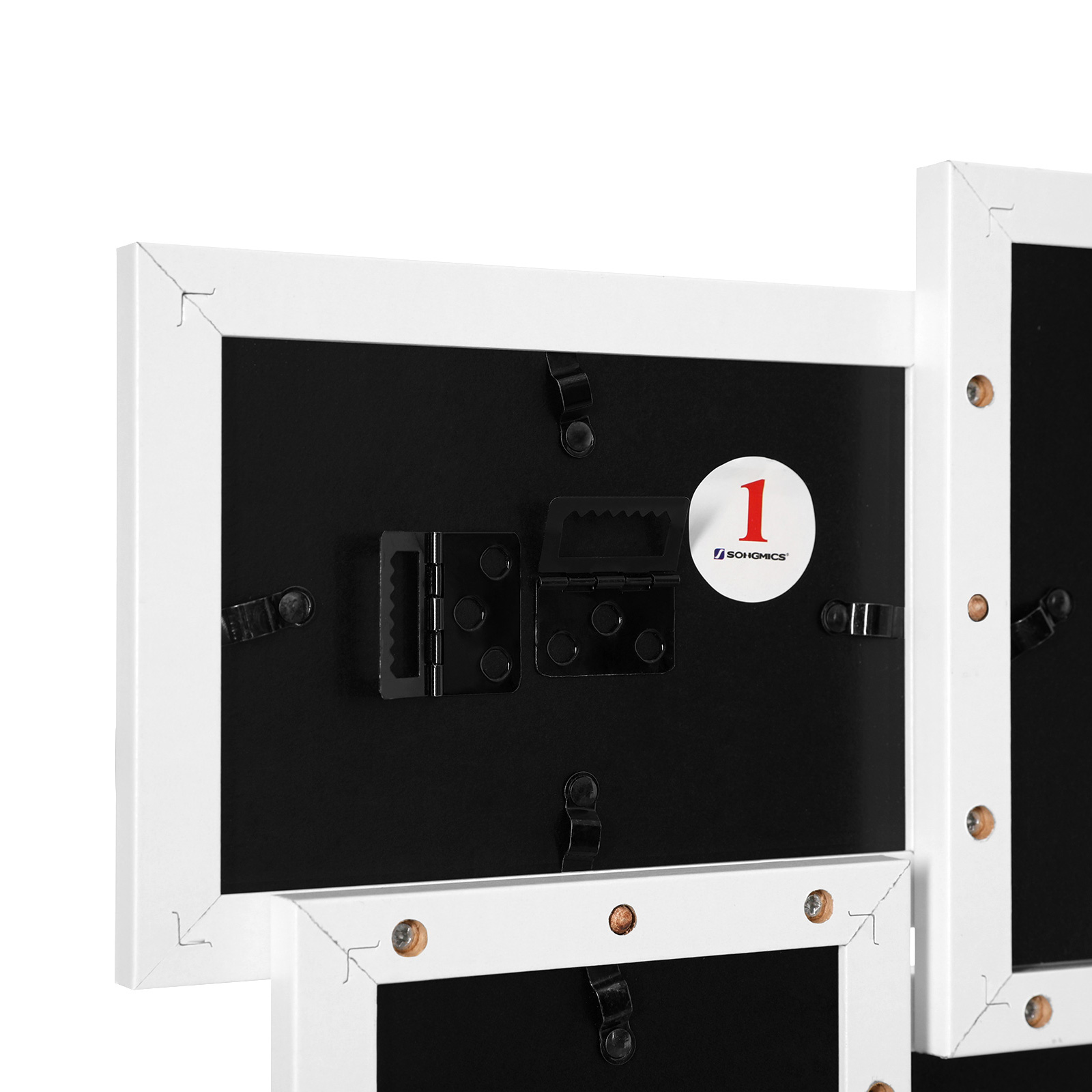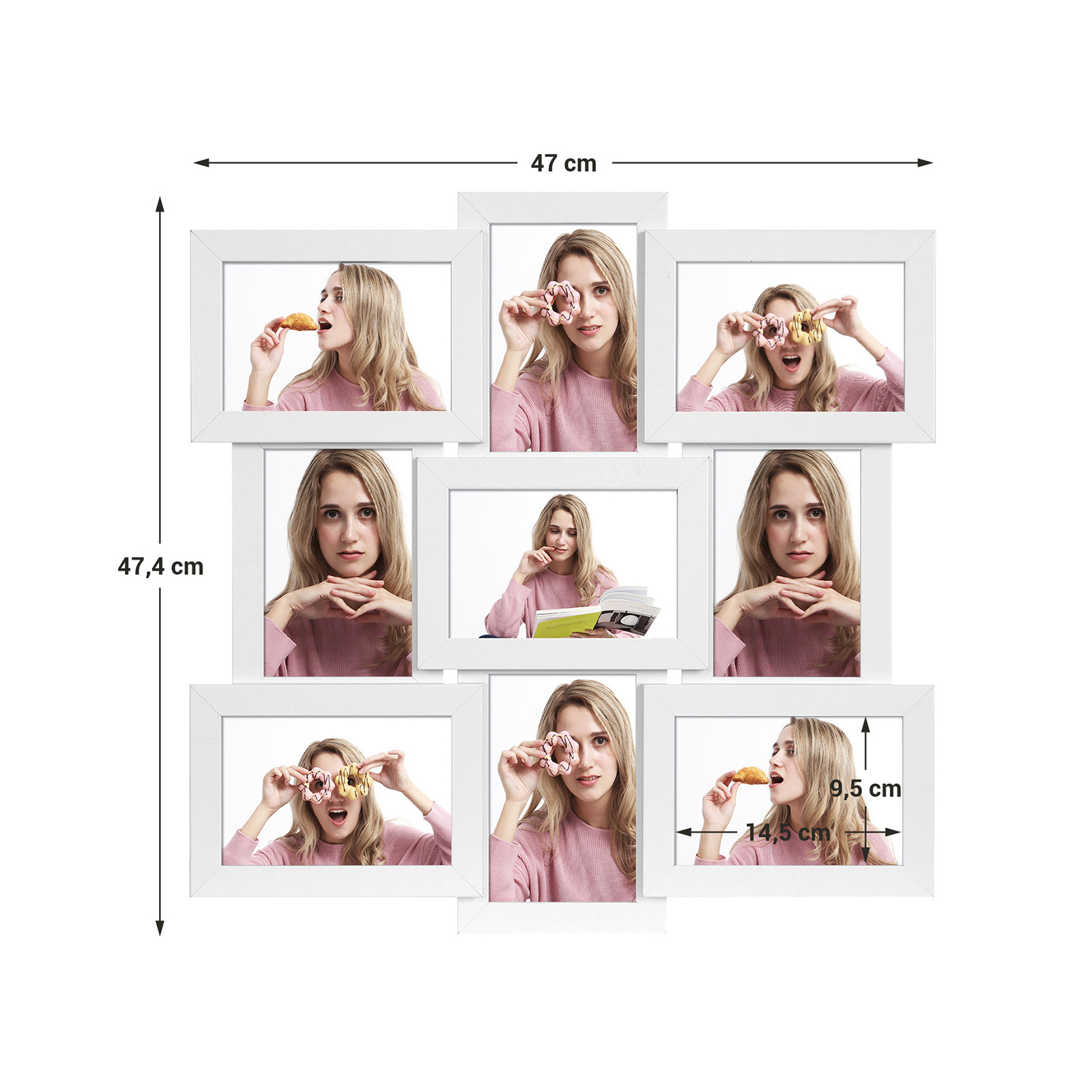 Vil du altid se dine b?rns s?de smil, dele dine lykkeligste ?jeblikke med andre eller udstille et kunstv?rk? Denne fotoramme-collage fra SONGMICS beskytter dine selfies, kunstv?rker eller fotografier og fremh?ver dem p? en unik m?de. Individualitet og raffinement H?ng betagende landskaber eller udtryksfulde portr?tter p? dine v?gge og giv din bolig et individuelt pr?g. De overlappende rammer tiltr?kker blikket som ved magi og leder det mod dine smukkeste fotos. H?jdepunkterne i denne collage: – Egnet til ni fotos i st?rrelsen 10 x 15 cm – Kan h?nges op vandret eller lodret – Glasskiver uden skarpe kanter – En fantastisk gave til dine k?re – Taksh?ngere til hurtig v?gmontering – Drejelige klemmer for nem udskiftning af billeder – Tydelige monteringsvejledninger og nummererede dele for nem samling Produktdetaljer:- Farve: Hvid – Materiale: MDF (medium densitetsfiberplade), glas – St?rrelse: 47,4 x 2,4 x 47 cm (L x B x H) – Passende fotost?rrelse: 10 x 15 cm – Faktisk synlig: 9,5 x 14,5 cm – V?gt: 1,65 kg Leveringsomfang:- 1 x billedrammecollage SONGMICS Bem?rkninger: – Alle glaskanter er slebet med sand, s? du sikkert kan skifte dine fotos. Collagen b?r dog opbevares uden for b?rns r?kkevidde. – S?rg for, at collagen er fastgjort til v?ggen.