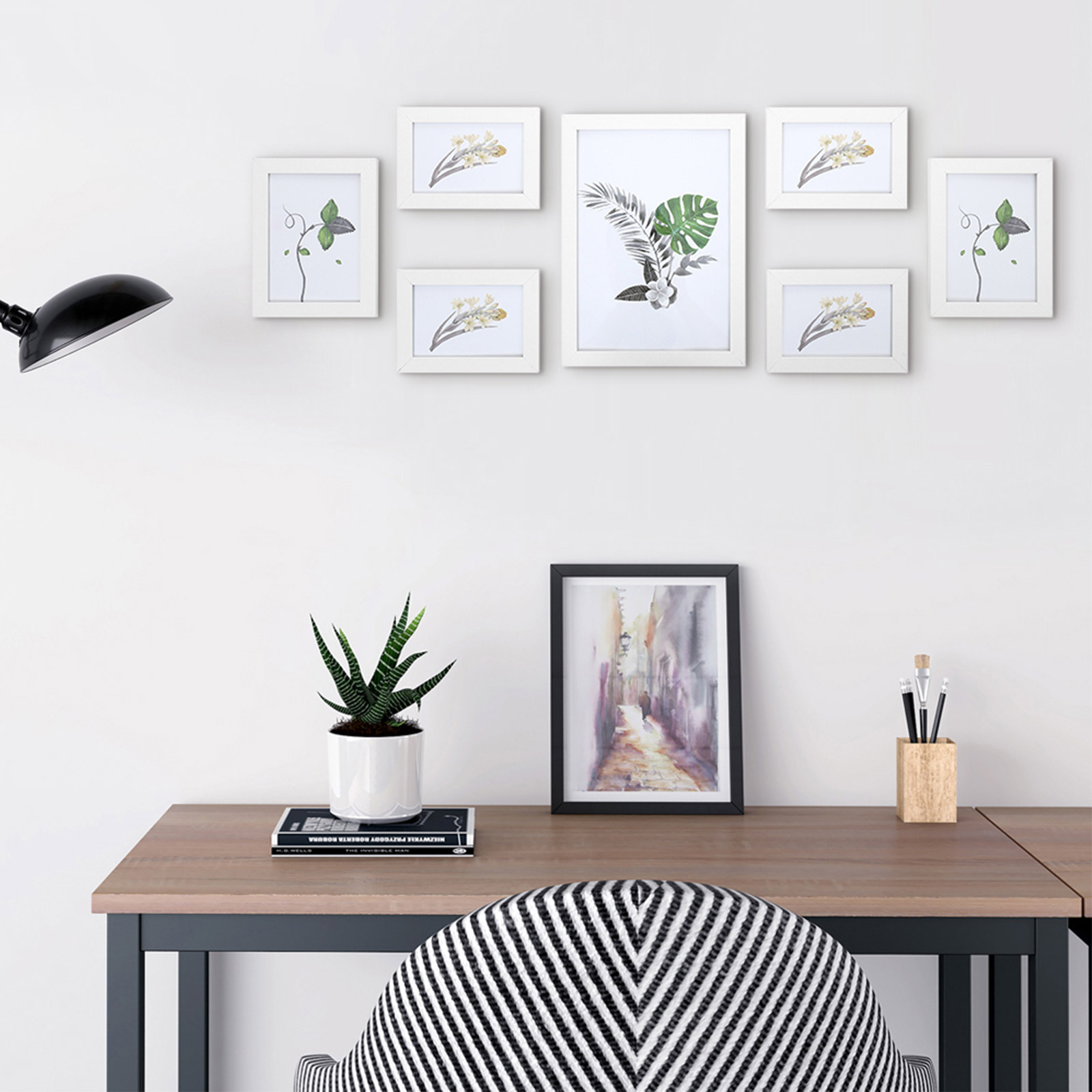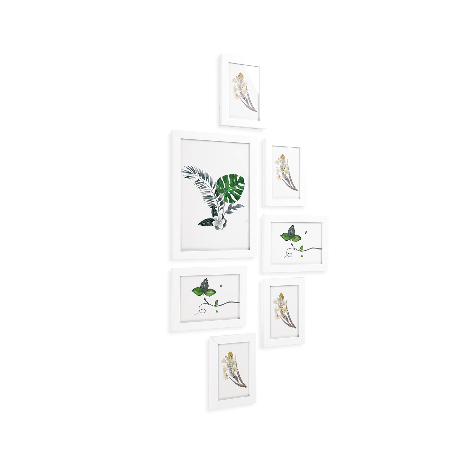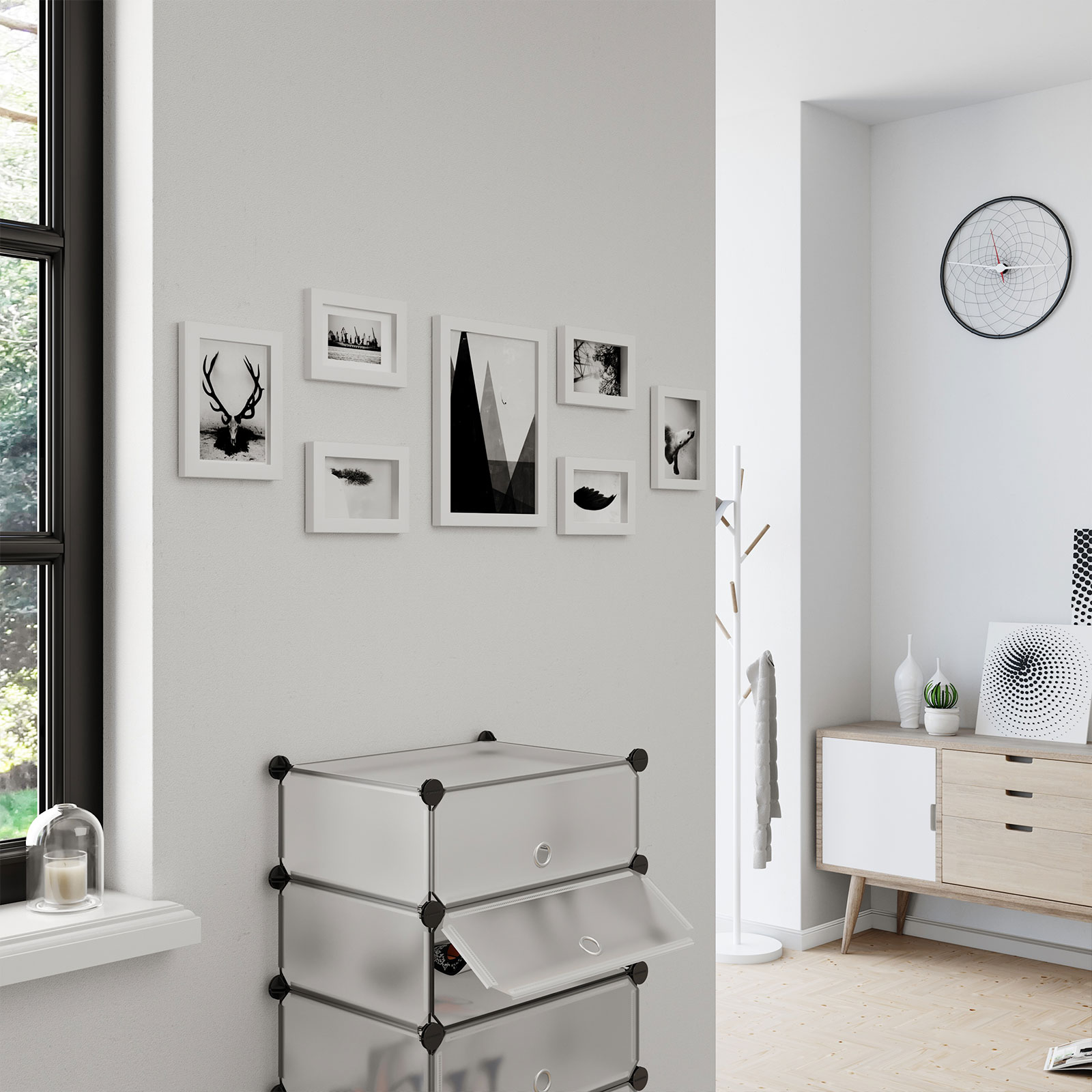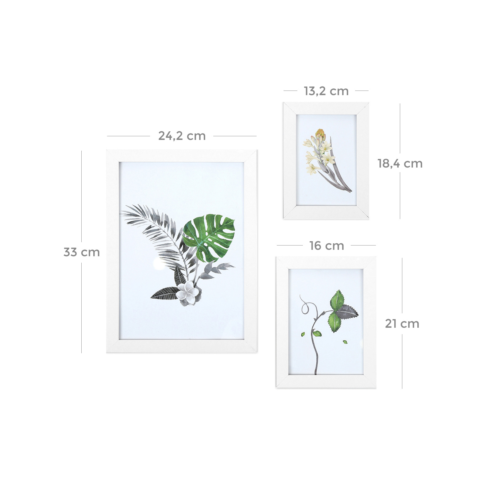 Bevar dine smukke minder Med dette 7-delte fotoramme-s?t kan du pr?sentere dine personlige fotos, kunstv?rker, samlerobjekter eller b?rnetegninger for at bevare de smukke minder. Enkelt og alligevel elegant design Fremstillet af tr?fiberplader med en klar silhuet og en glat overflade, passer disse fotorammer b?de til klassiske og moderne billeder. De er diskrete, s? de komplementerer dine fotos eller kunstv?rker uden at overd?ve selve fotoet eller kunsten. Ideelt gavevalg Indrammede minder er noget, der ligger mennesker meget p? sinde, og derfor er denne fotoramme et godt valg til gaver. Med den kan du bevare disse lykkelige og smukke ?jeblikke for evigt. Produktdetaljer: – Farve: hvid – Materiale: MDF, glas – Fotost?rrelse: 21 x 29,7 cm (stor), 13 x 18 cm (mellem), 10 x 15 cm (lille) – Kantbredde: 2 cm – Kanttykkelse: 1,5 cm – V?gt: 2,5 kg Leveringsomfang: – 1 x stor fotoramme – 2 x mellemstor fotoramme – 4 x lille fotoramme SONGMICS Bem?rkninger: – Undg? at l?gge v?rdigenstande under en fotoramme. – V?gskruer er ikke inkluderet i leveringen, da forskellige v?gmaterialer kr?ver forskellige fastg?relsesmetoder. Kontakt en lokal isenkr?mmer, hvis n?dvendigt.
