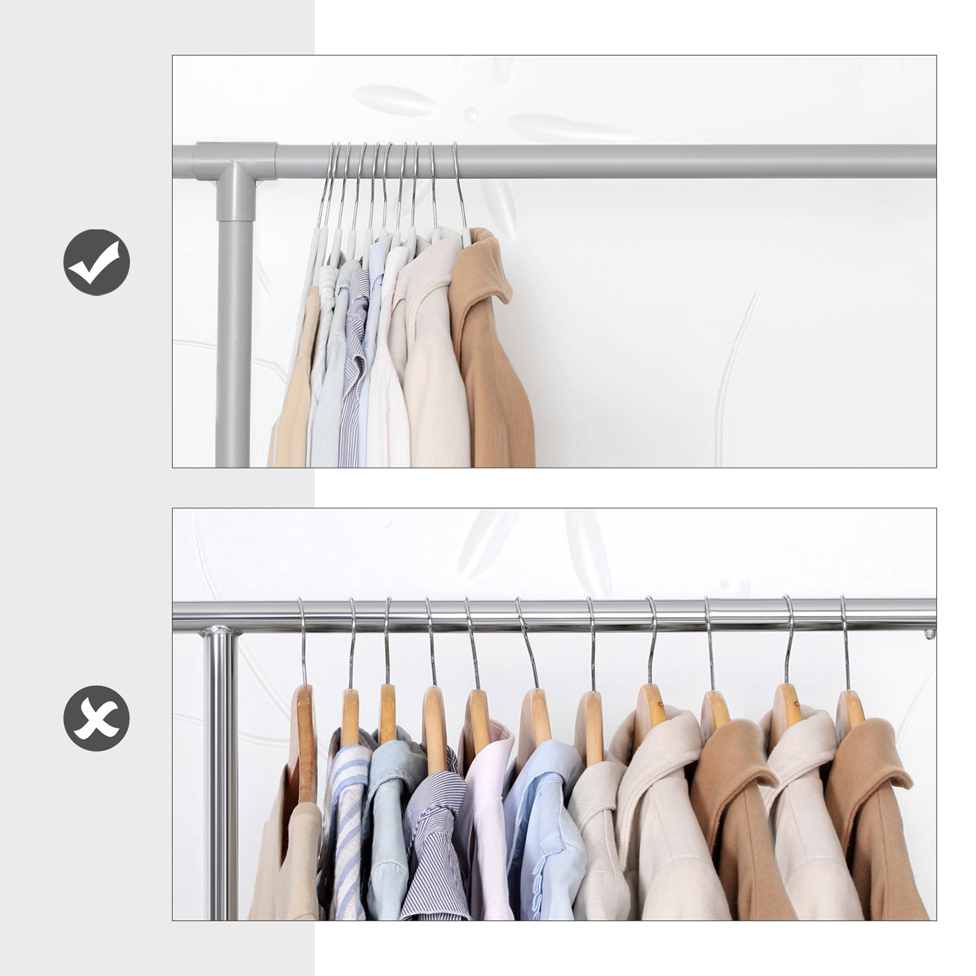 Produktdetaljer: Farve: Hvid Materiale: ABS-plast, fl?jl, metalhage St?rrelse: 42 x 0,5 x 21,5 cm (L x B x H) V?gt pr. b?jle: 68 g Maks. statisk belastning pr. b?jle: 5 kg Leveringsomfang: 30 x b?jler SONGMICS Bem?rkninger:Brug ikke disse b?jler i t?rretumbleren eller vaskemaskinen. Den maksimale belastning pr. b?jle er 5 kg. Overskrid ikke denne maksimale v?gt.