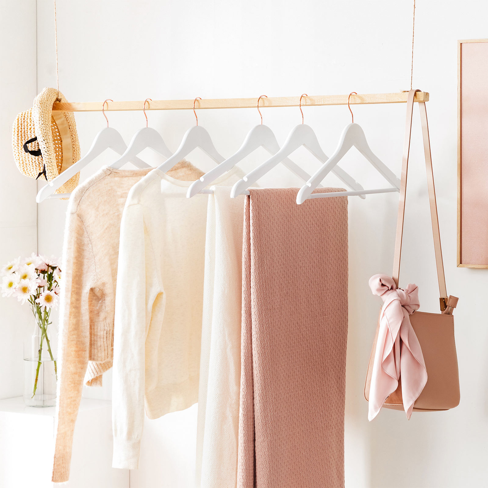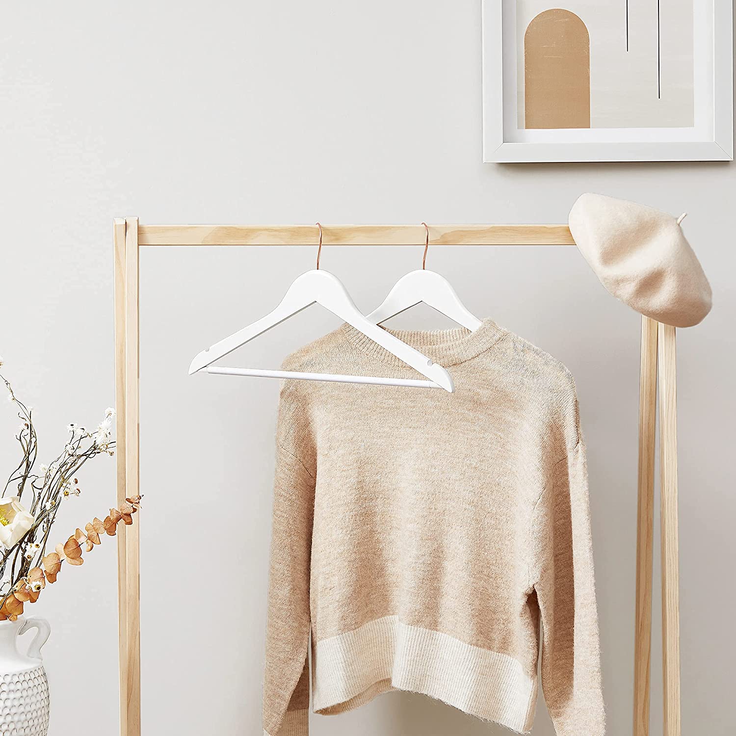 Har du sv?rt ved at v?lge den rigtige model blandt det store udvalg af forskellige b?jler? Hvorfor v?lger du s? ikke bare en klassisk variant i massivt tr?? I sidste ende er enkle designs nogle gange alt, hvad vi har brug for. Disse b?jler fra SONGMICS er fremstillet af massivt ahorntr?, poleret og lakeret med en glat overflade, hvilket ikke kun g?r dem s?rligt stabile og holdbare, men ogs? giver dem det perfekte udseende til dine frakker, jakkes?t, skjorter, bukser, vinterjakker og jeans. Produktdetaljer: – Farve: Hvid – Materiale: Ahorn, metalhage – St?rrelse pr. b?jle: 44,5 x 1,2 x 23 cm (L x B x H) – Samlet v?gt: 5,9 kg – Maks. statisk belastning pr. b?jle: 5 kg Leveringsomfang: – 50 x b?jler SONGMICS Bem?rkninger:- Brug ikke b?jlerne i l?ngere tid i omgivelser med h?j temperatur eller h?j luftfugtighed for at undg? skader s?som lakafskalning. – Brug ikke disse b?jler i en t?rretumbler. – T?r b?jlerne af med en fugtig klud for at reng?re dem.