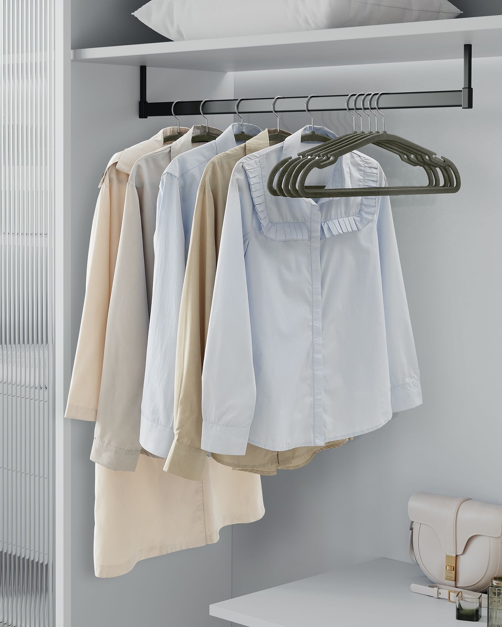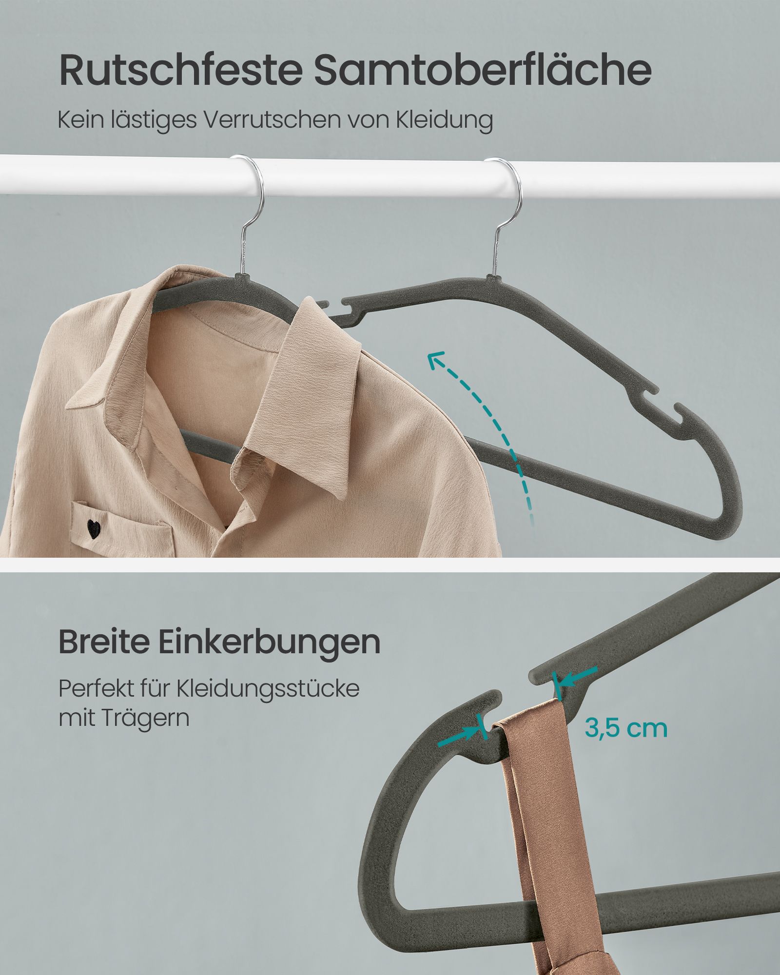 SONGMICS b?jler i fl?jl, s?t med 50 b?jler, 43 x 21 cm, skridsikre fl?jlsb?jler, brede skulderhakker, stang til bukser, 360? drejelig krog, pladsbesparende, til garderobe, bl?ksort CRF039B03