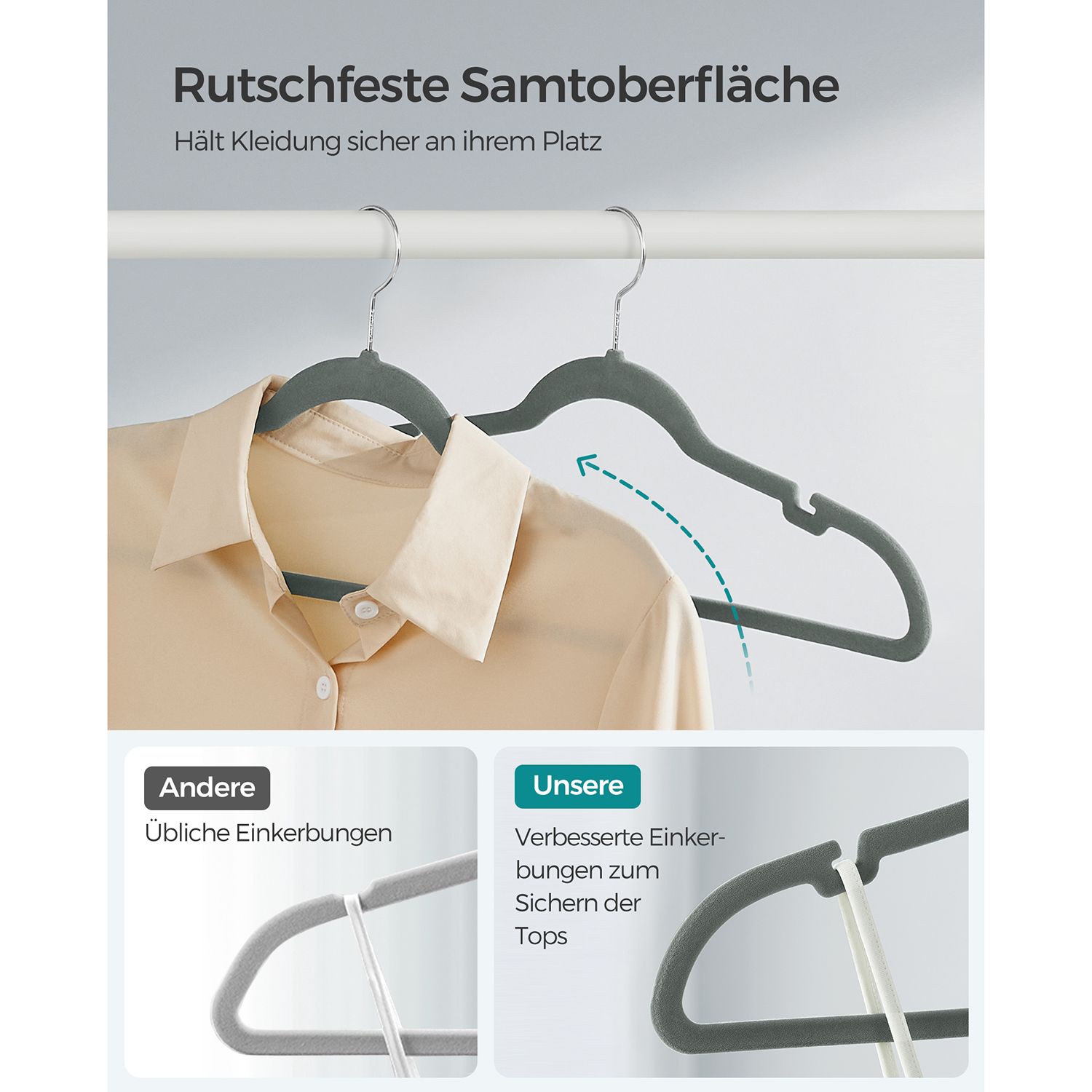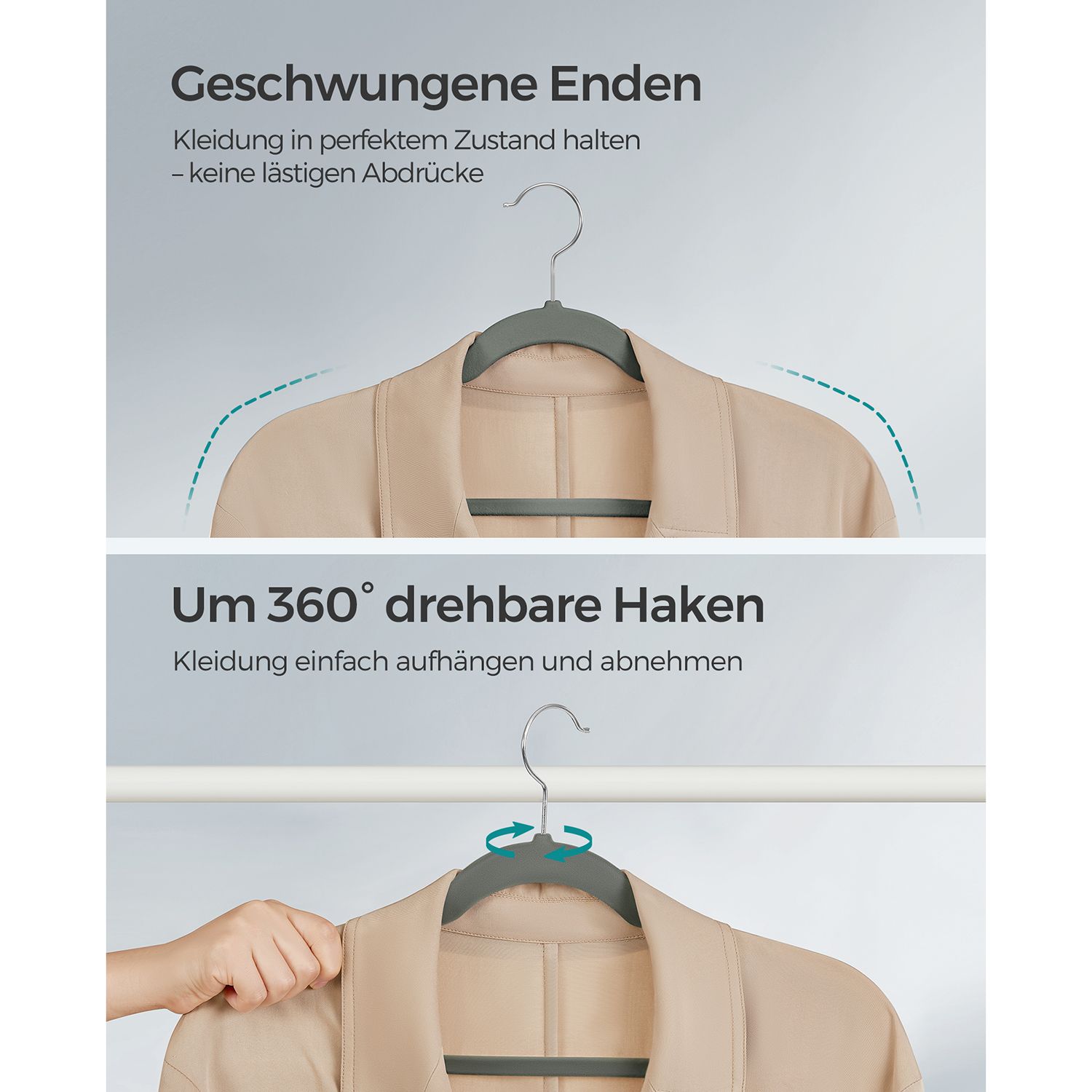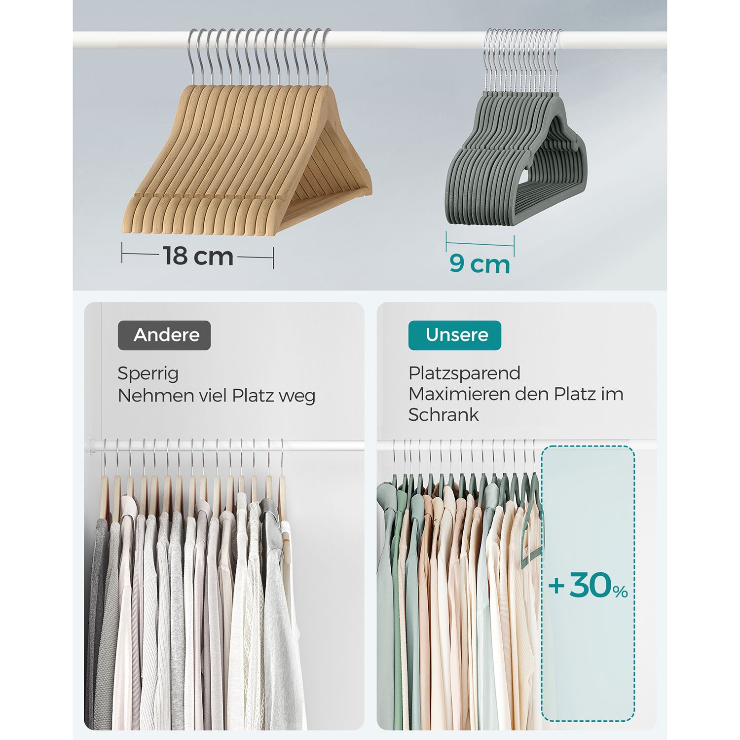 SONGMICS b?jle i fl?jl, s?t med 30 stk., b?jle, skridsikker, med fordybninger i skulderomr?det, b?jle til bukser, 360? drejelig krog, pladsbesparende, 0,6 cm tyk, 43 cm lang, sort CRF029B03
