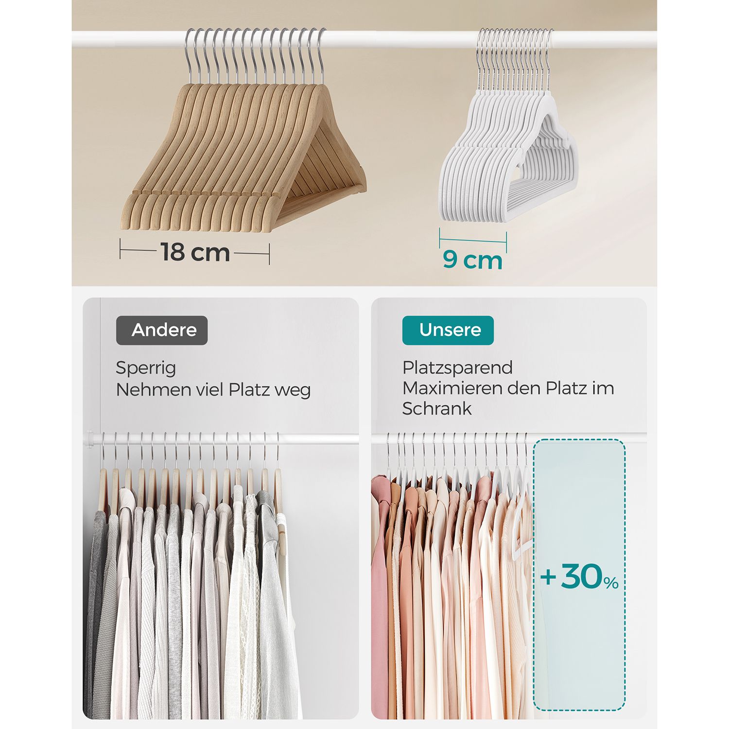 SONGMICS b?jle i fl?jl, s?t med 30 stk., b?jle, skridsikker, med fordybninger i skulderomr?det, b?jle til bukser, 360? drejelig krog, pladsbesparende, 0,6 cm tyk, 43 cm lang, sort CRF029B03