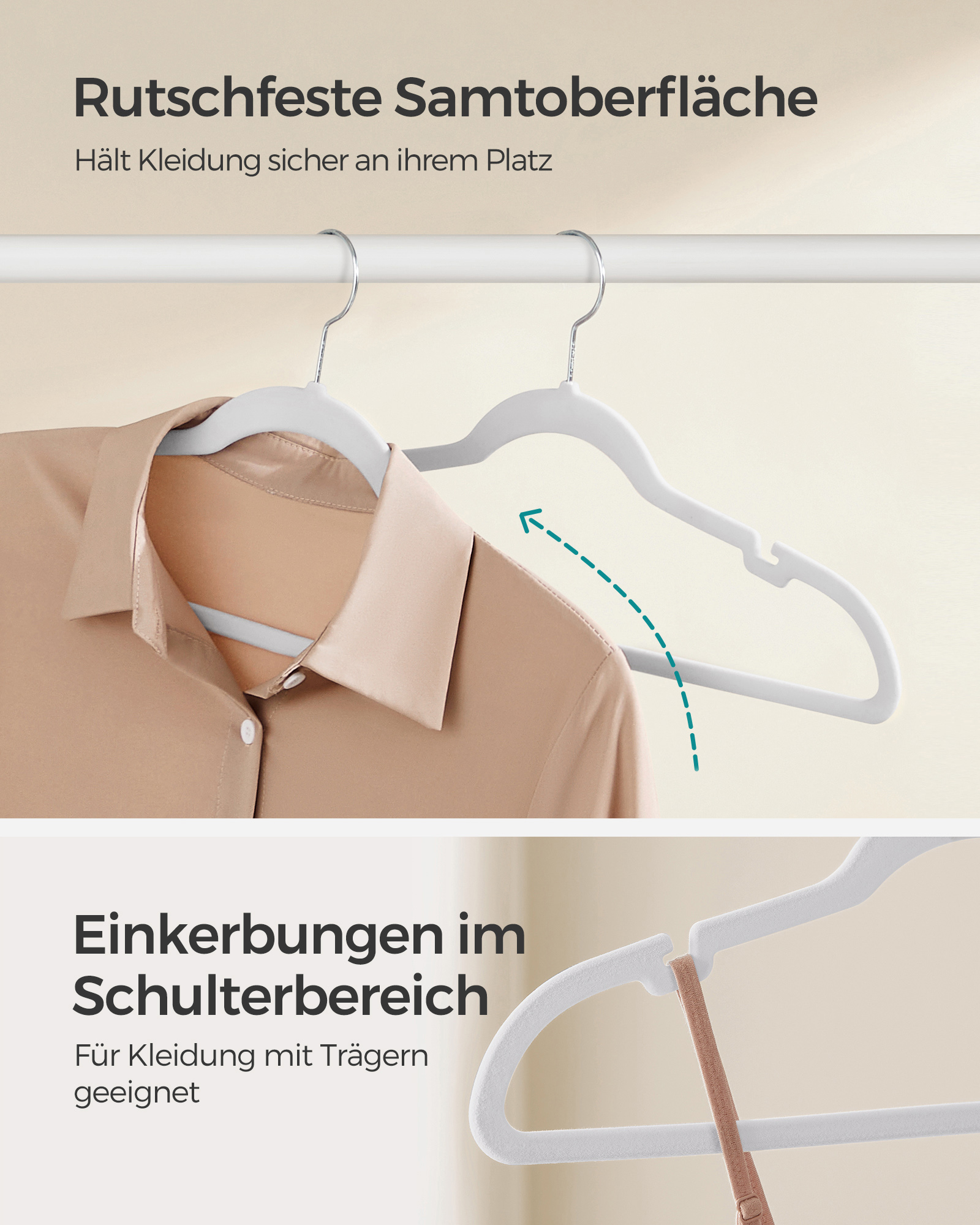 SONGMICS b?jle i fl?jl, s?t med 30 stk., b?jle, skridsikker, med fordybninger i skulderomr?det, b?jle til bukser, 360? drejelig krog, pladsbesparende, 0,6 cm tyk, 43 cm lang, sort CRF029B03