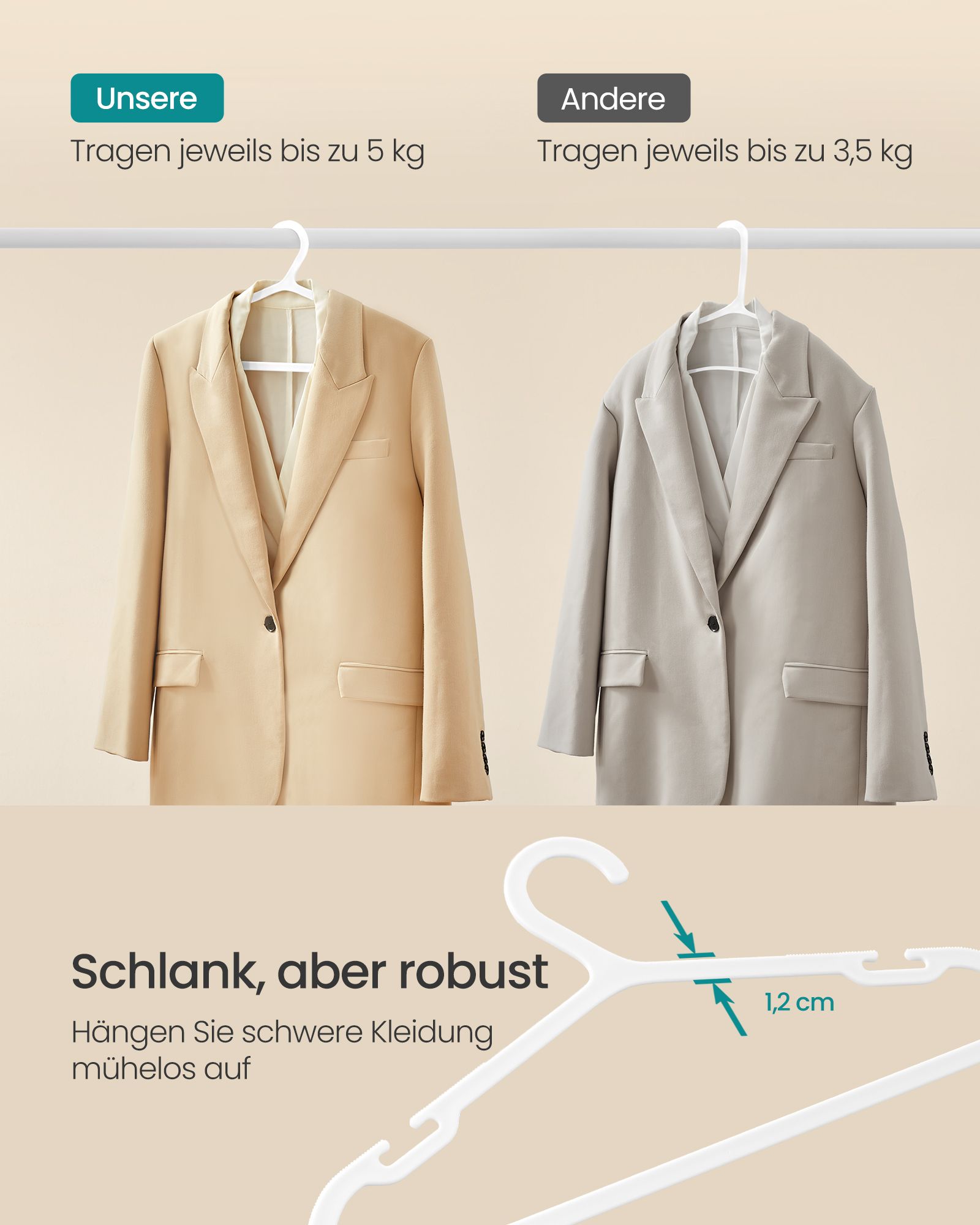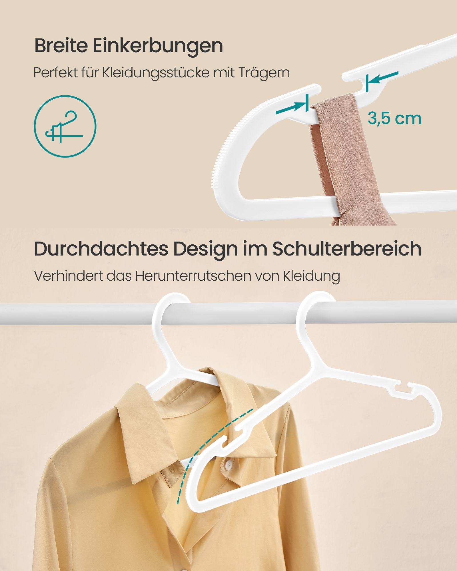 SONGMICS b?jle i plast, s?t med 50 stk., b?jle, med brede skulderhak, pladsbesparende, 41,7 cm bred, bl?ksort CRP010B01
