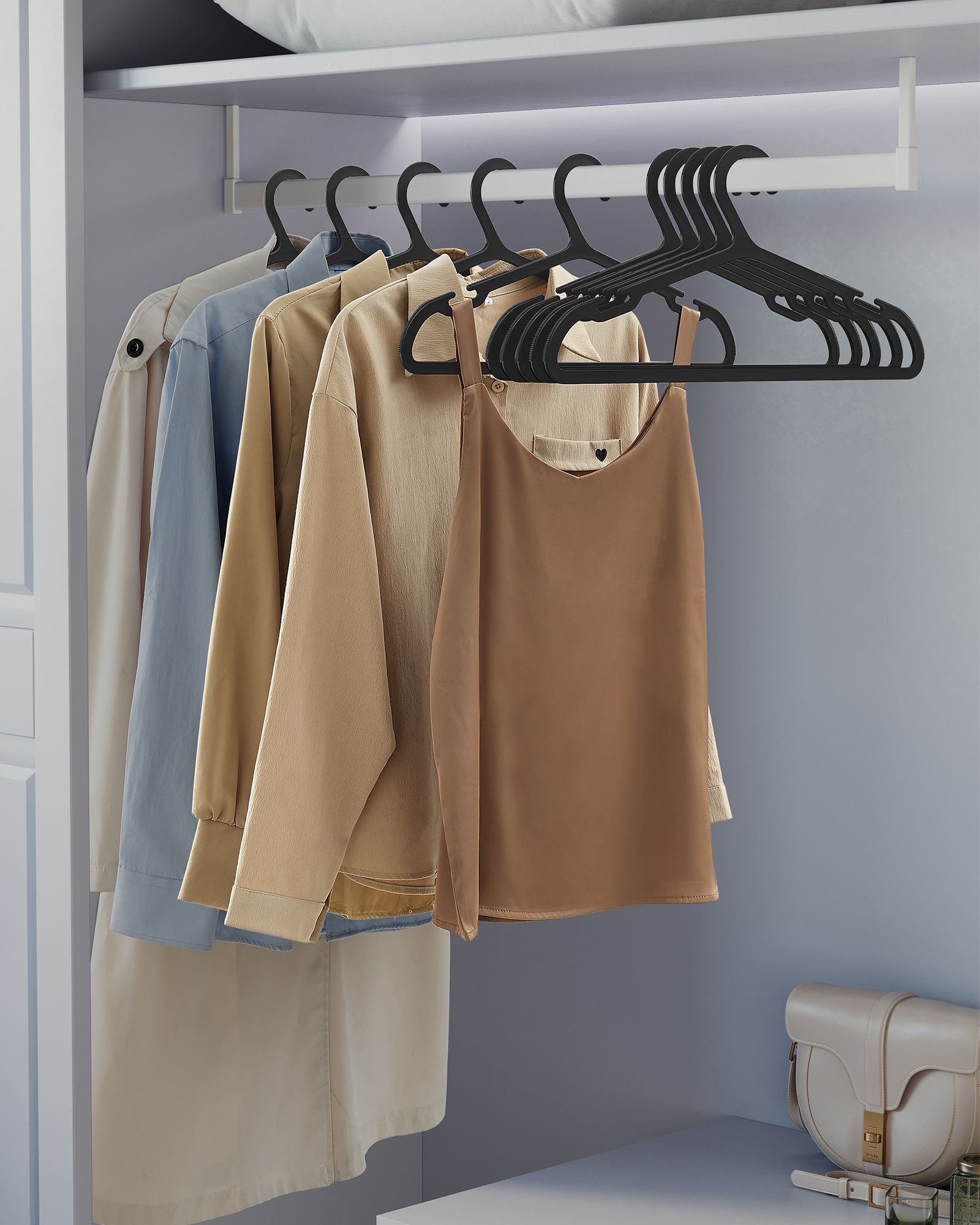 SONGMICS b?jle i plast, s?t med 50 stk., b?jle, med brede skulderhak, pladsbesparende, 41,7 cm bred, bl?ksort CRP010B01