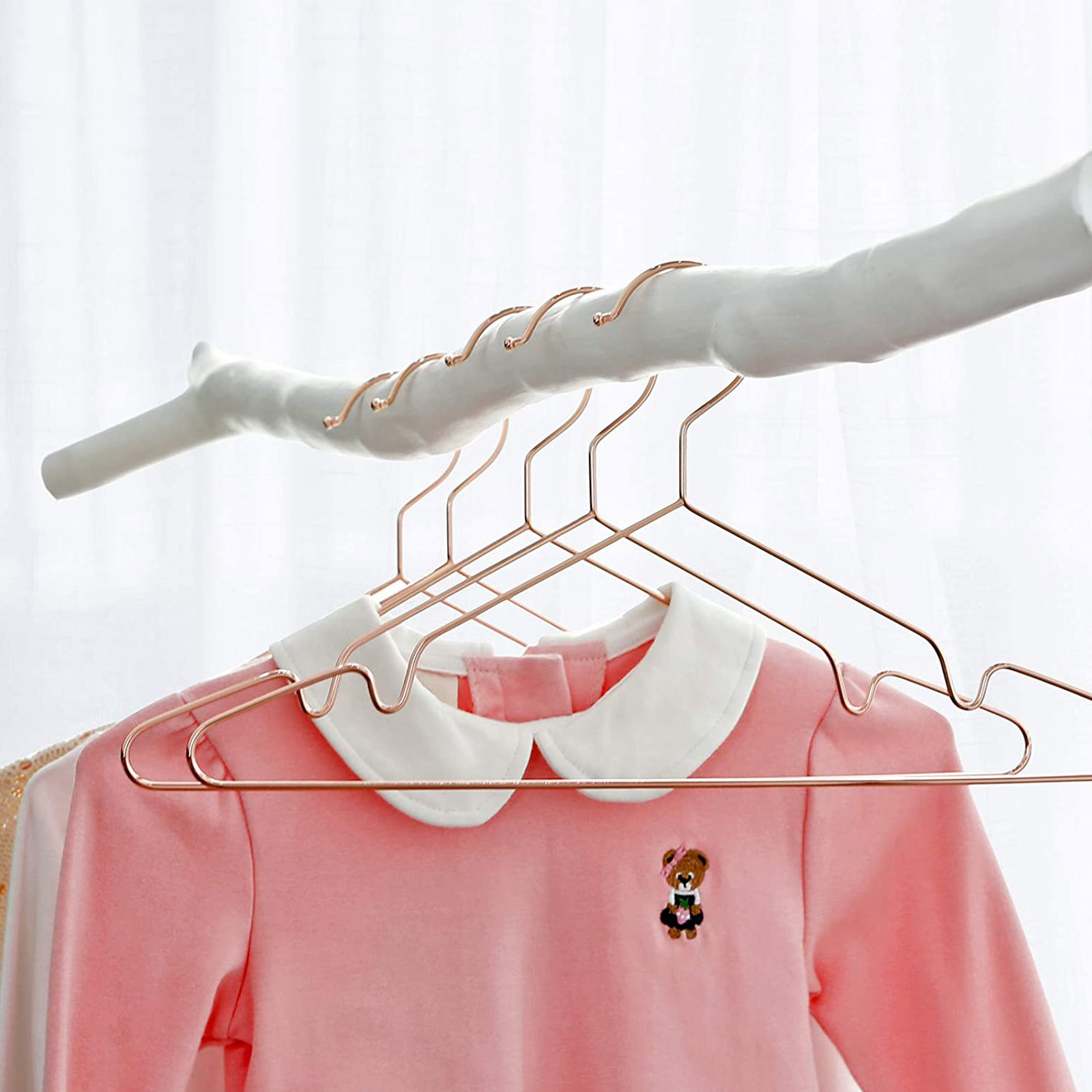 SONGMICS b?jle til b?rn/babyer, rosaguld metal, 35 cm, stabil b?jle af metaltr?d, til babyt?j, kl?deskab, pladsbesparende, med indhak mod, 20 stk. CRI45R-20