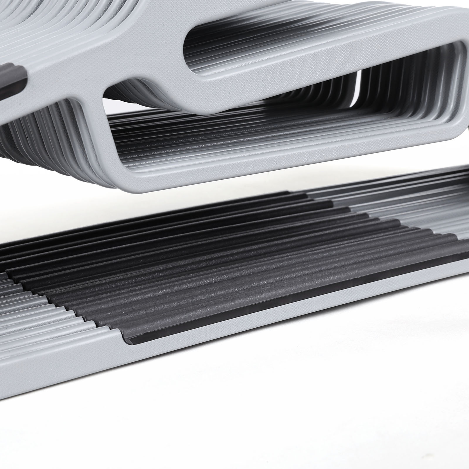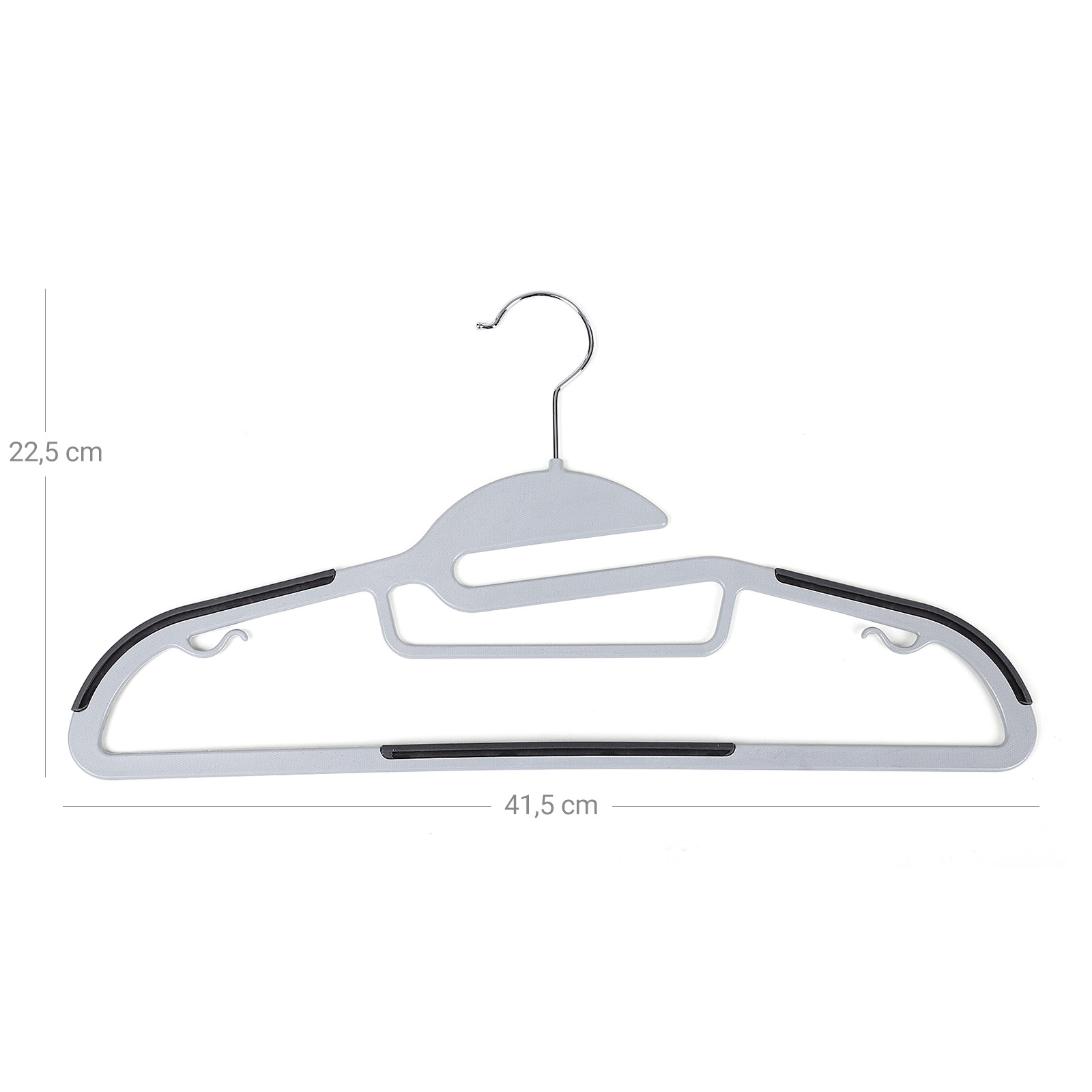 Produktdetaljer: Farve: m?rkegr? Materiale: ABS-plast M?l for hver b?jle: 41,5 x 22,5 x 0,5 cm (B x H x D) V?gt for hver b?jle: 86 g Maks. belastning for hver b?jle: 5 kg Leveringsomfang: 20 x b?jler SONGMICS Bem?rkninger:Hold b?jlerne v?k fra ant?ndelseskilder. Brug ikke b?jlerne i rum med h?j temperatur. H?ng ikke for tunge genstande og t?j p? b?jlerne. Brug ikke disse b?jler i en b?rbar t?rretumbler.